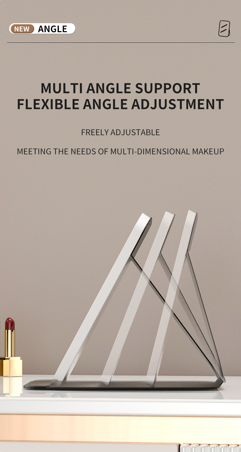 This large foldable LED makeup mirror is designed to provide optimal lighting and convenience for makeup application at home or on the go. Its spacious mirror offers a clear, full-face view, and the foldable design allows for easy storage and portability. The mirror features adjustable lighting and a multi-angle stand to enhance your makeup routine with ease.