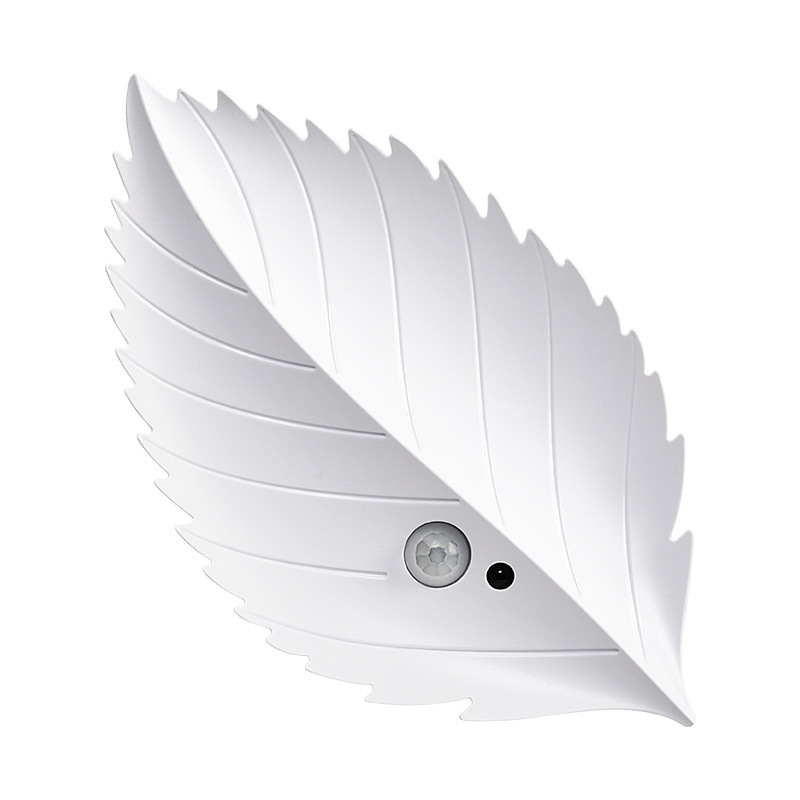 White Leaf-Shaped LED Motion Sensor Night Light – USB Rechargeable Wireless Wall Lamp with Remote Control