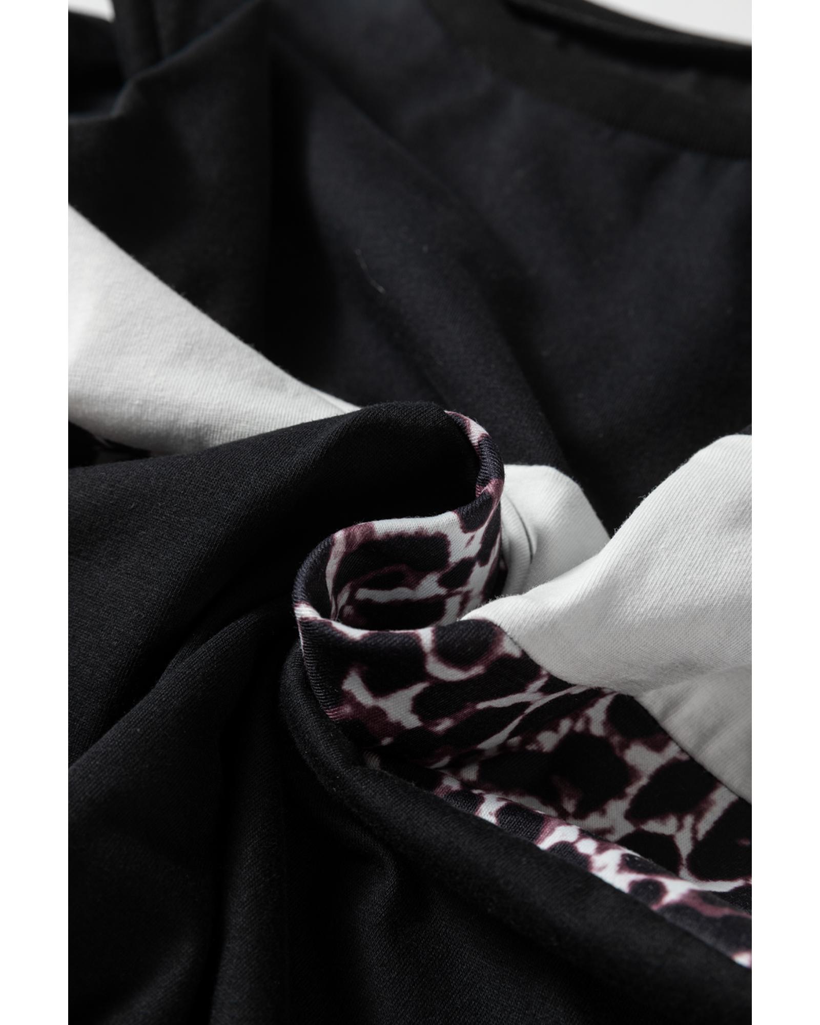 This long sleeve crew neck tee features a bold color block patchwork design combined with striking leopard print details. Crafted for a trendy, fitted look, it offers both style and comfort with high elasticity and versatile long sleeves, making it suitable for various casual occasions.