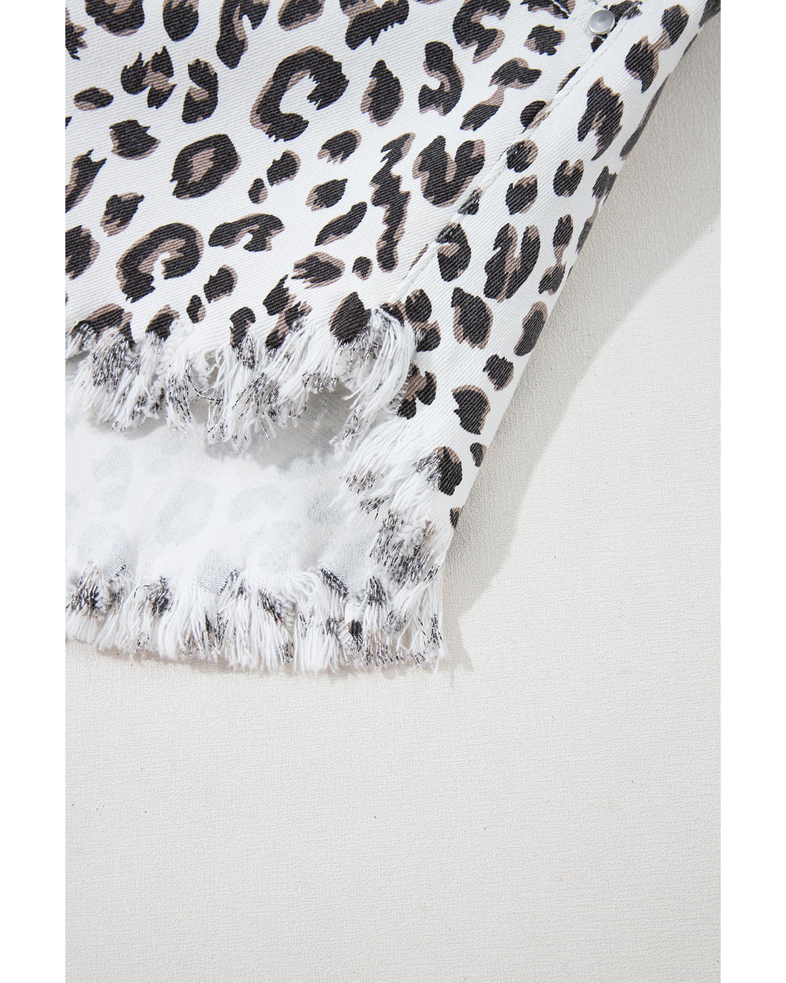 White Leopard Frayed Hem Denim Shorts – 12 US
