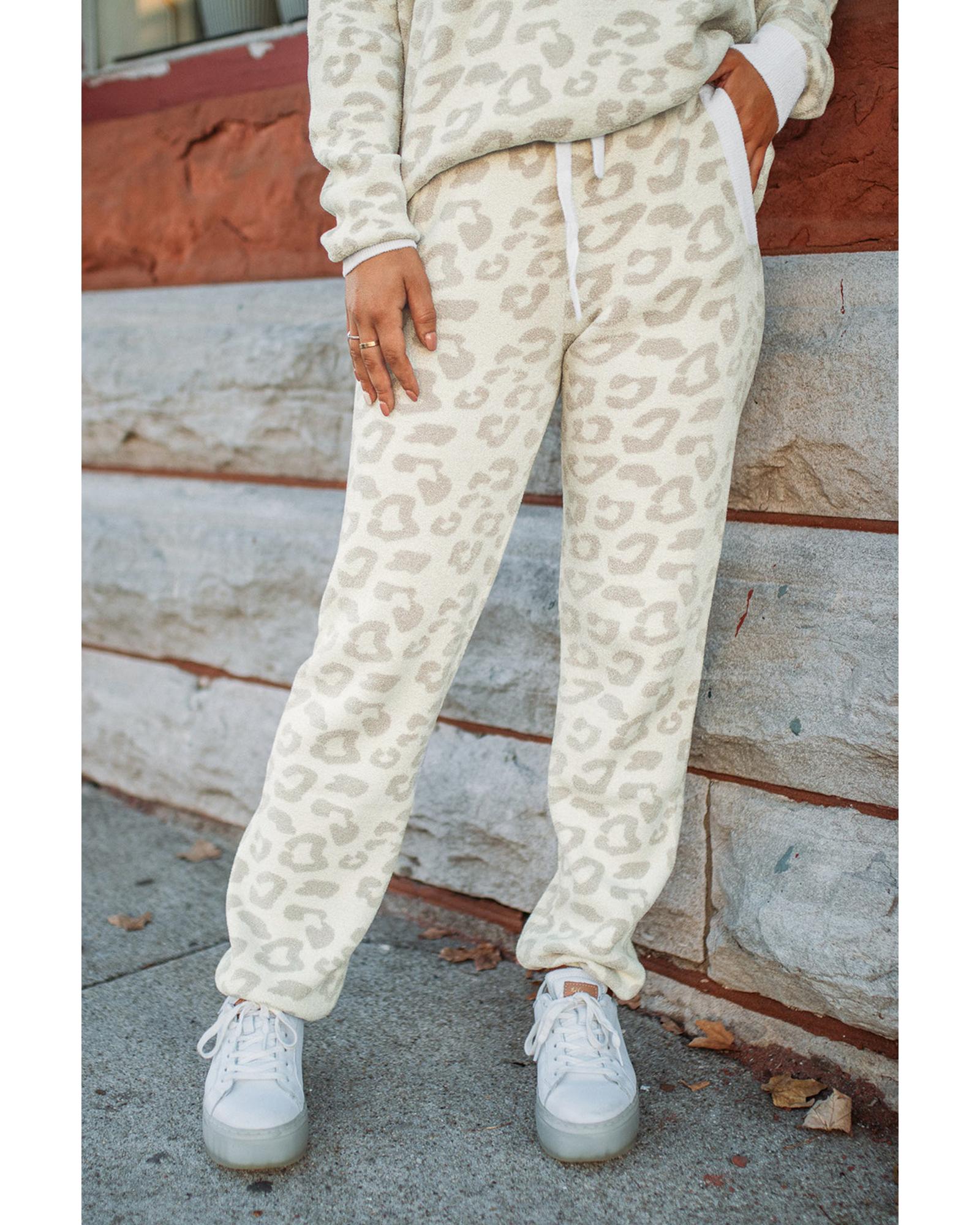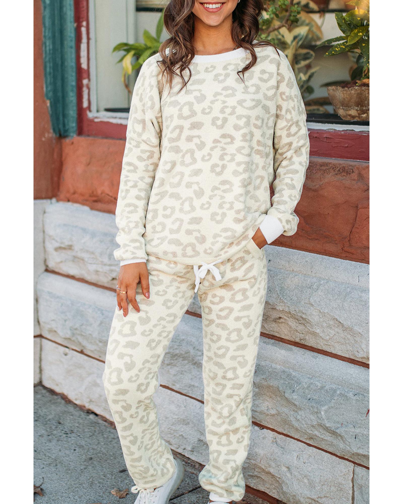 White Leopard Pullover and Drawstring Pants Lounge Set – XL