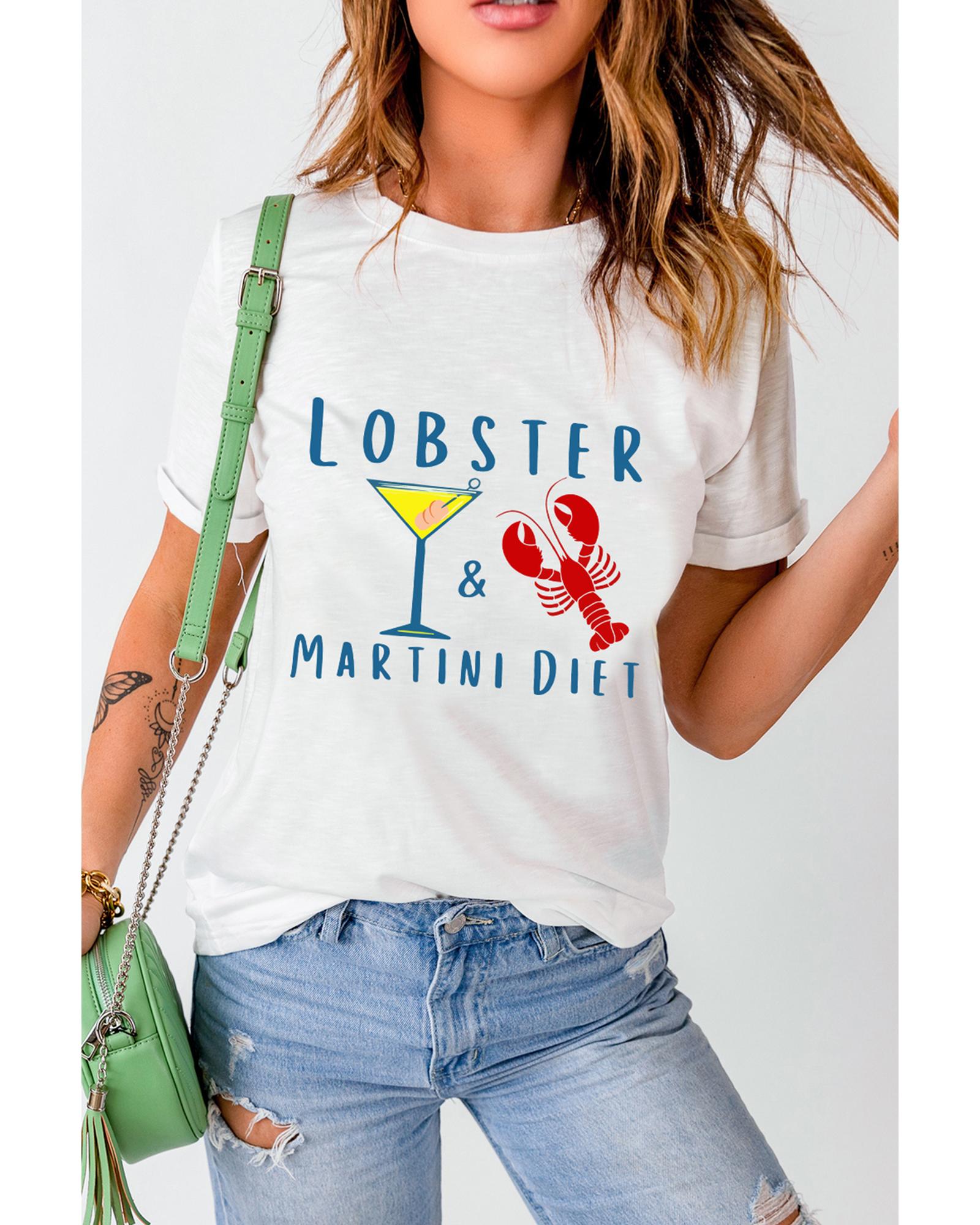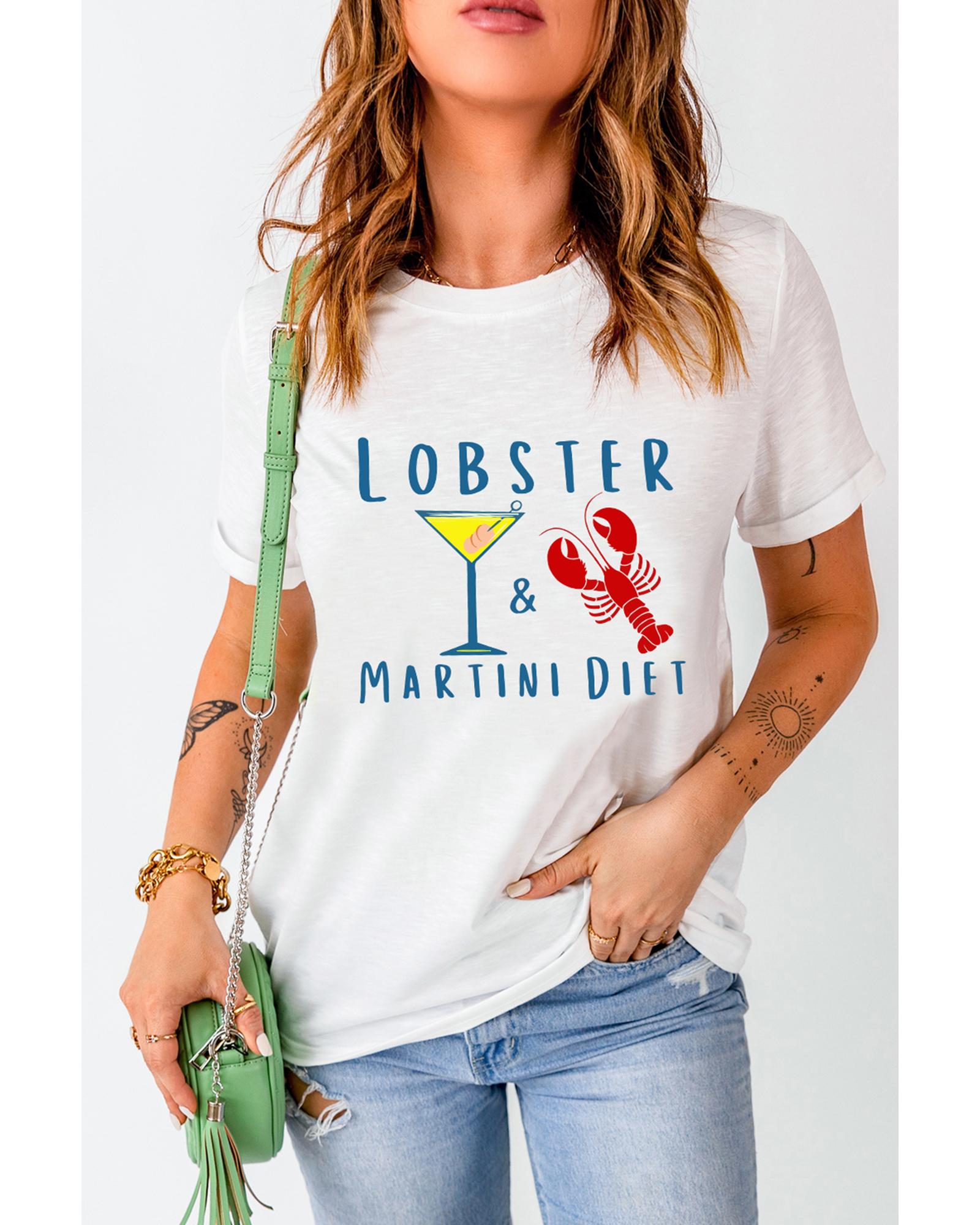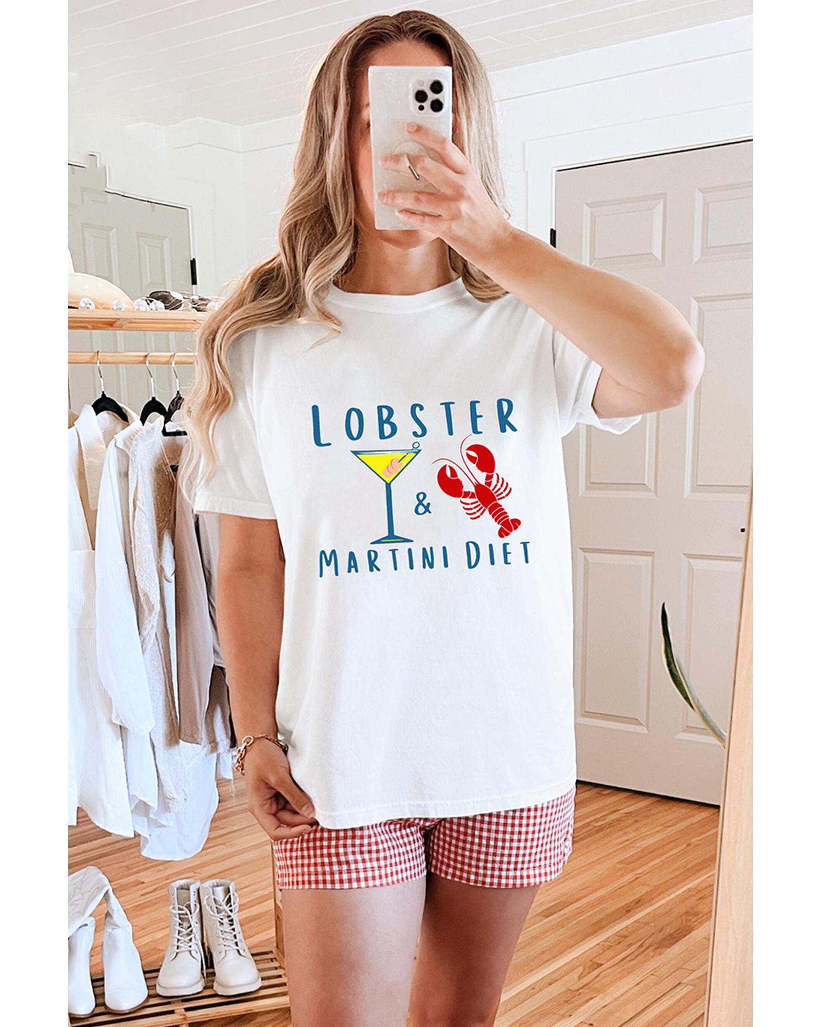 This T-shirt features a unique lobster martini diet lettering design combined with a vibrant crawfish print, adding a fun and seasonal touch to your wardrobe. It offers a comfortable fit with a classic crew neck and short sleeves, making it suitable for everyday wear.