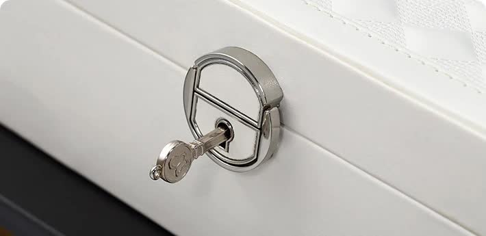 This luxurious quilted jewelry storage box combines elegant design with practical functionality. It features multiple compartments, a built-in mirror, and a secure lock closure, making it ideal for organizing and protecting your jewelry collection while adding a touch of sophistication to your space.