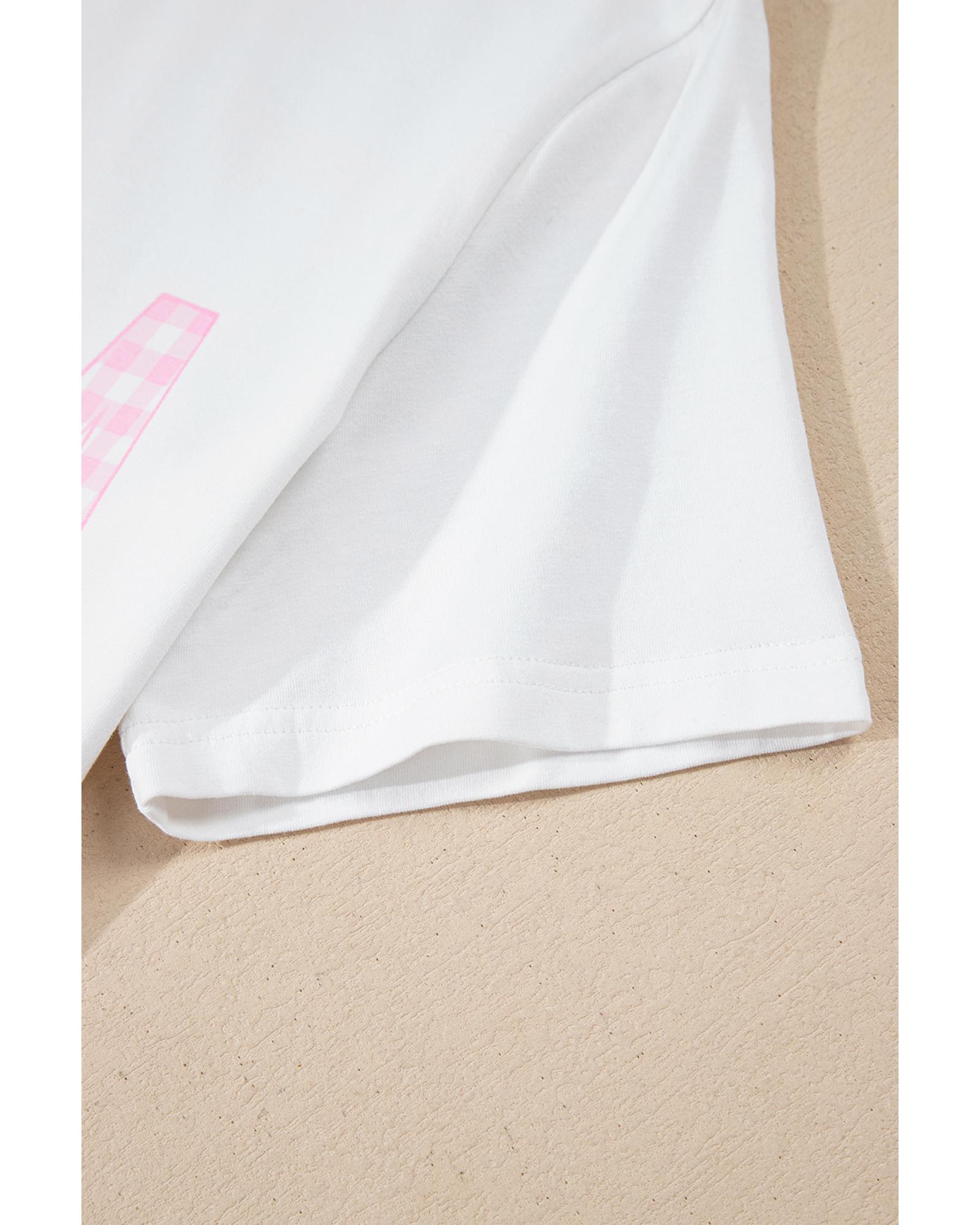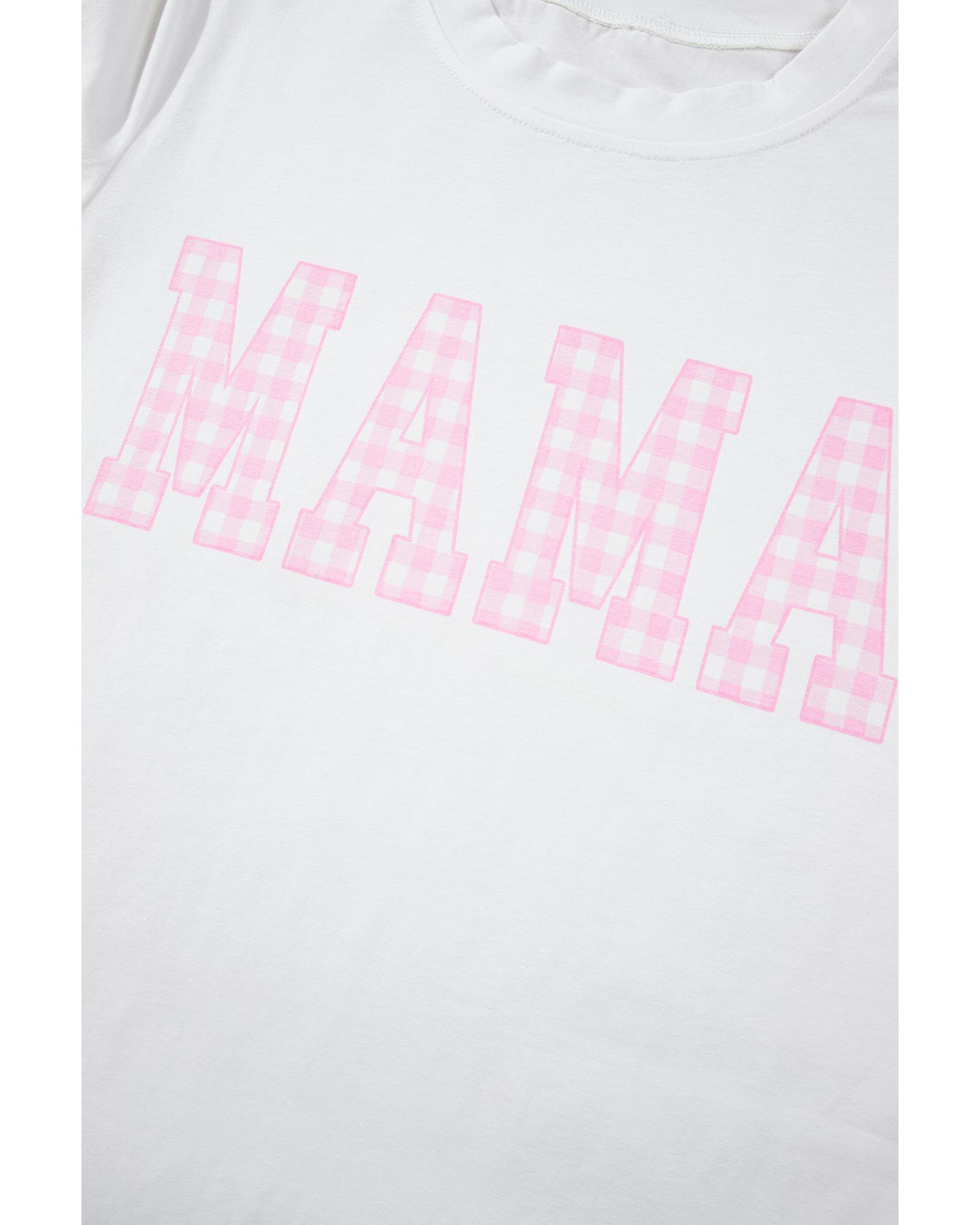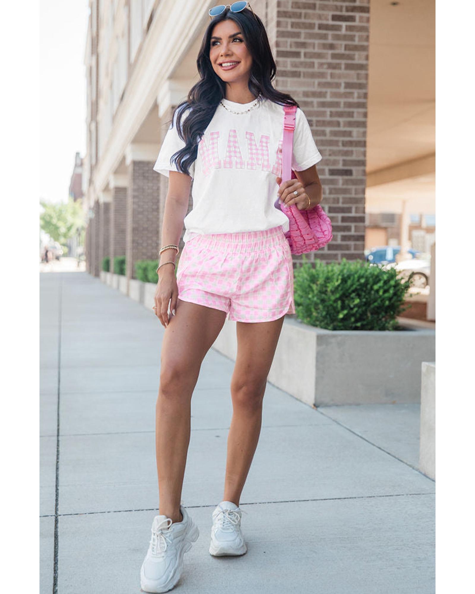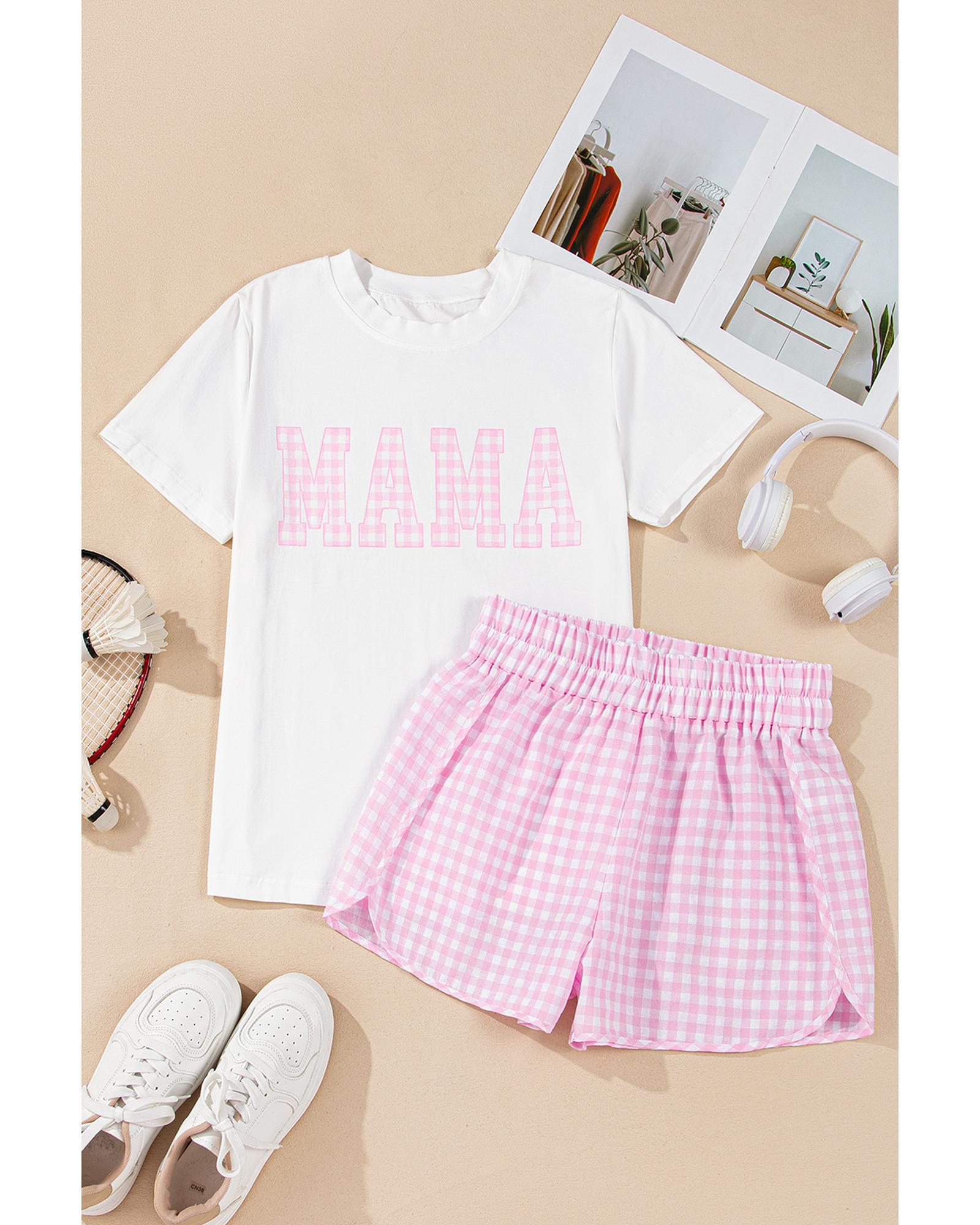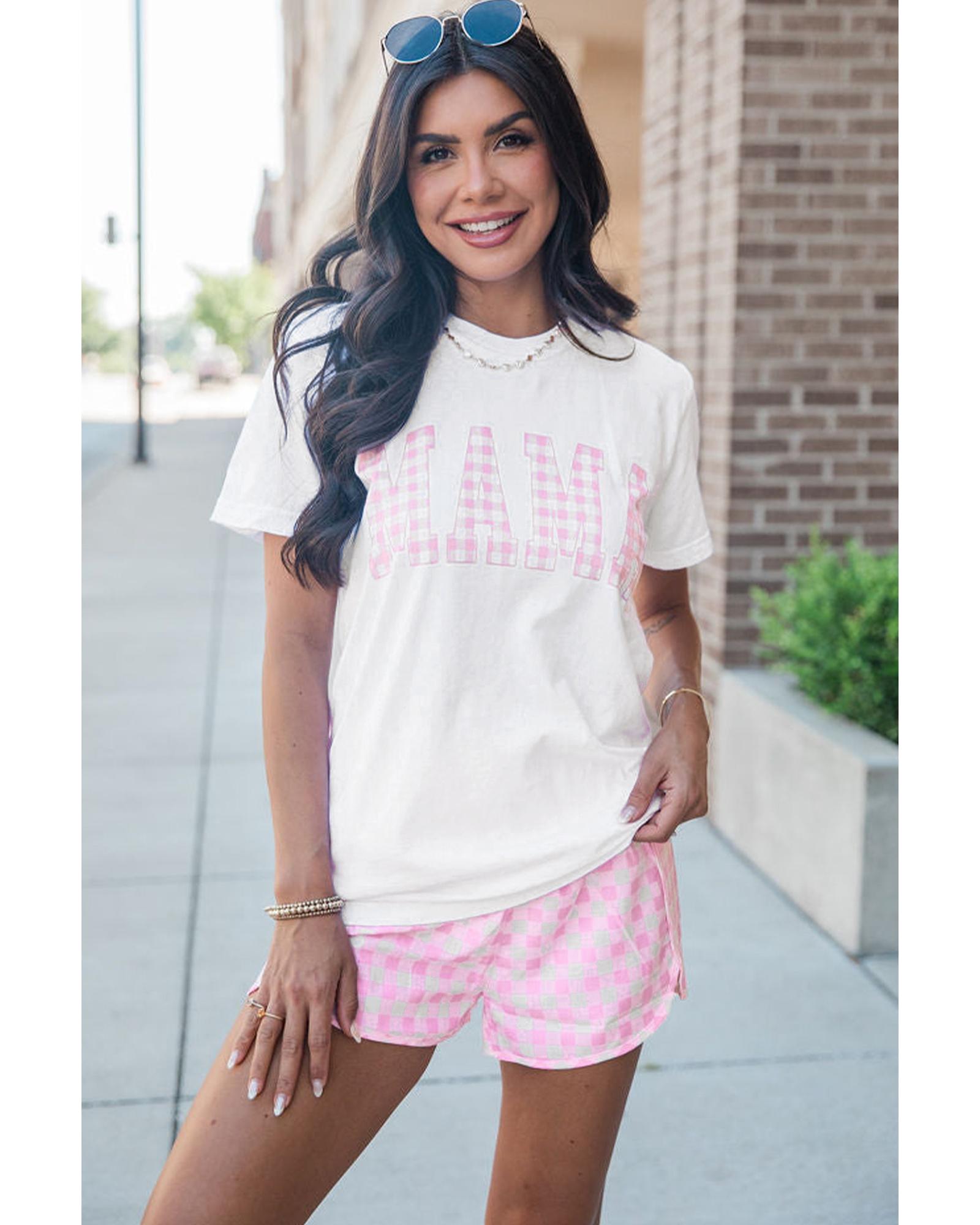 White MAMA Printed Tee and Plaid Shorts Lounge Set – S