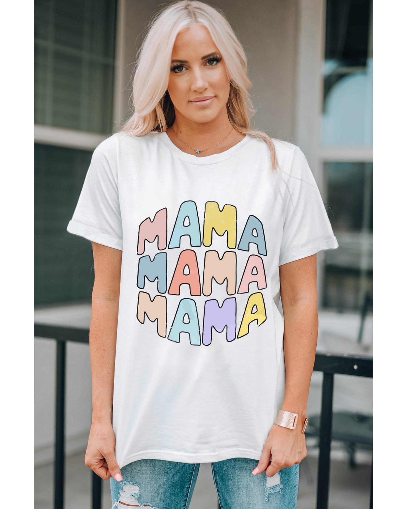 White MAMA Slogan Print Crew Neck Casual T Shirt – XL
