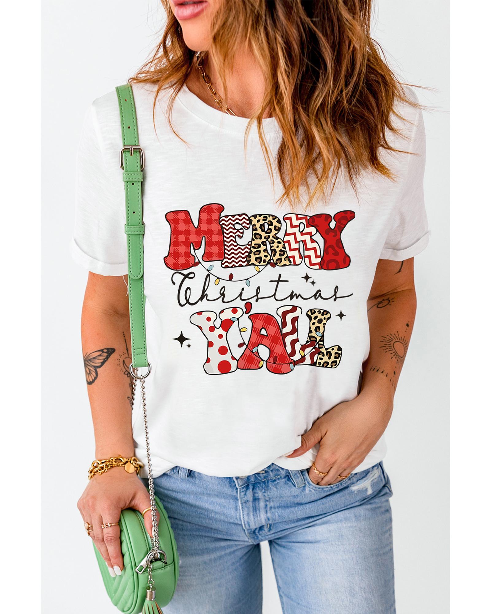 White MERRY Christmas YAll Graphic Crewneck T Shirt – XL