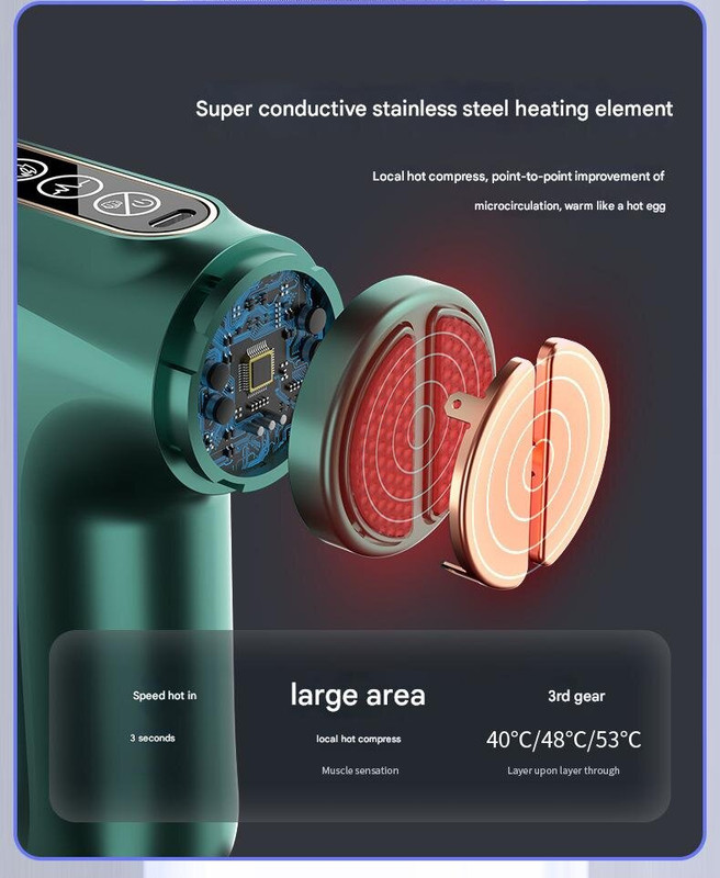 This mini fascia gun combines percussion therapy with pulse heat technology to provide deep tissue muscle relaxation and recovery. Its compact design makes it suitable for use anytime and anywhere, offering effective relief from muscle tension and fatigue.
