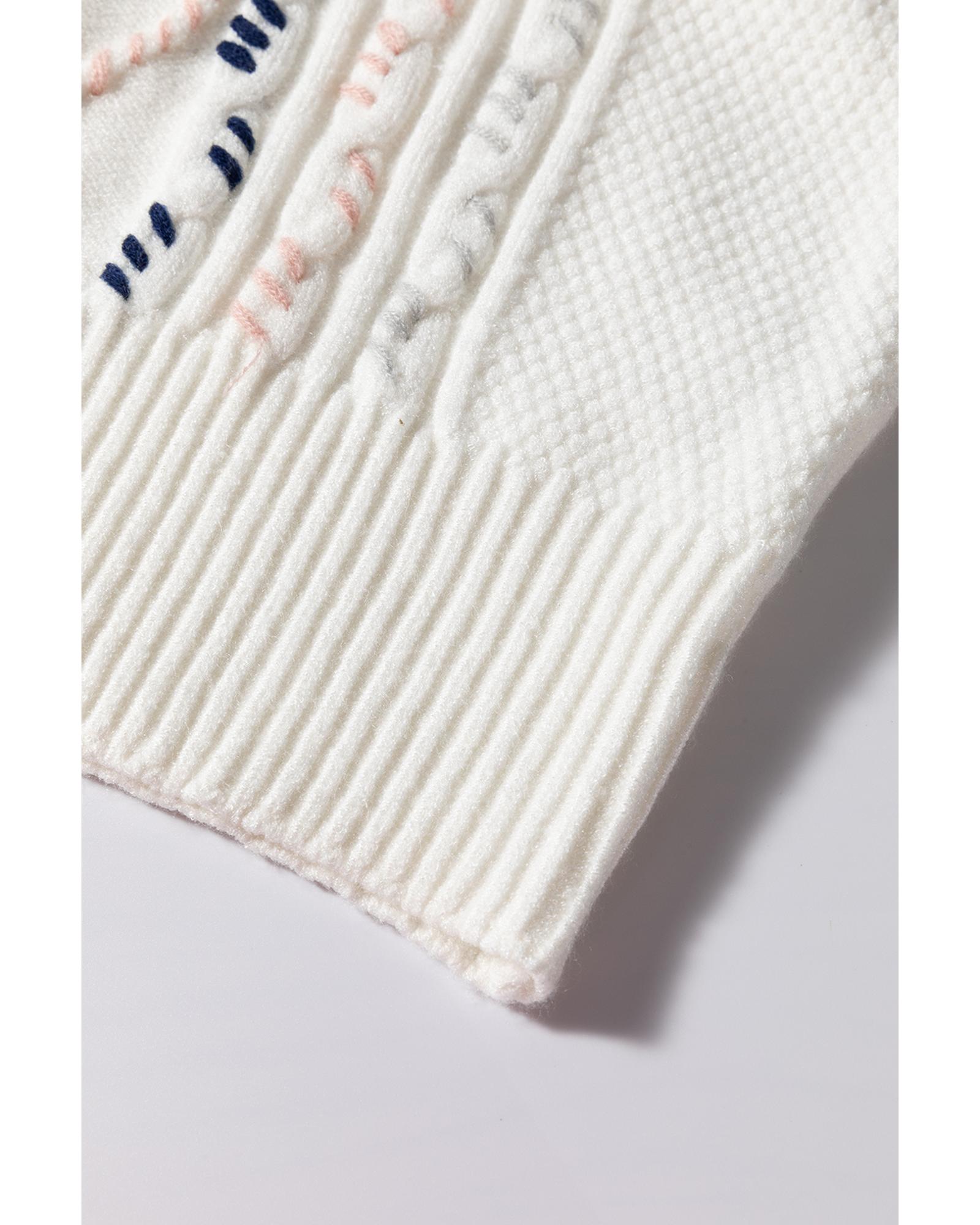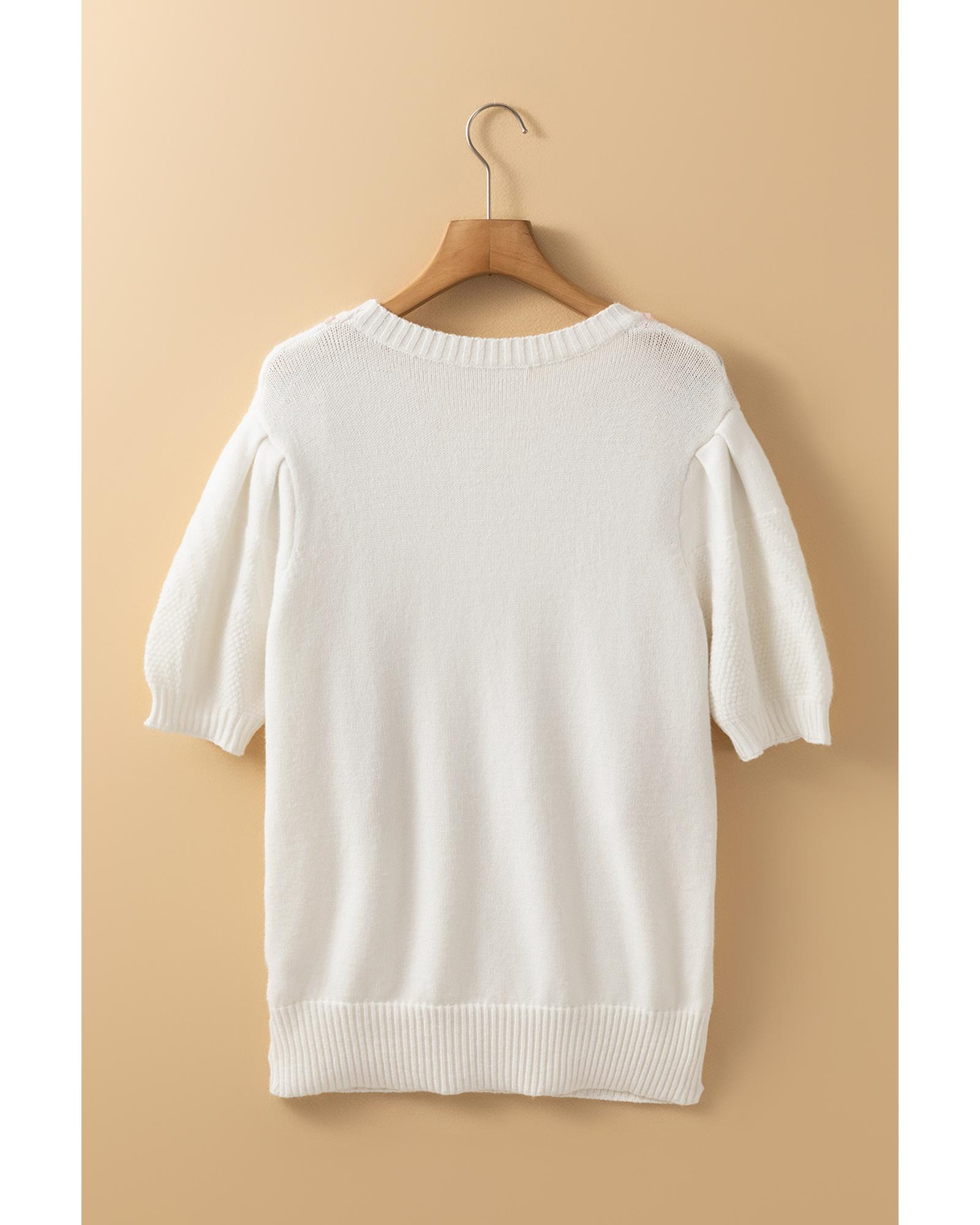 White Multicolor Stitch Detail Cable Knit Short Sleeve Sweater – S