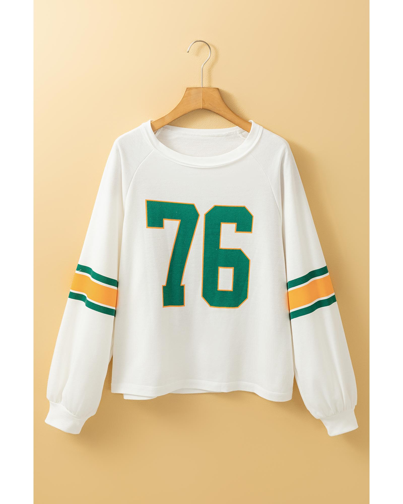 White Number 76 Printed Retro Sporty Long Sleeve Top – S