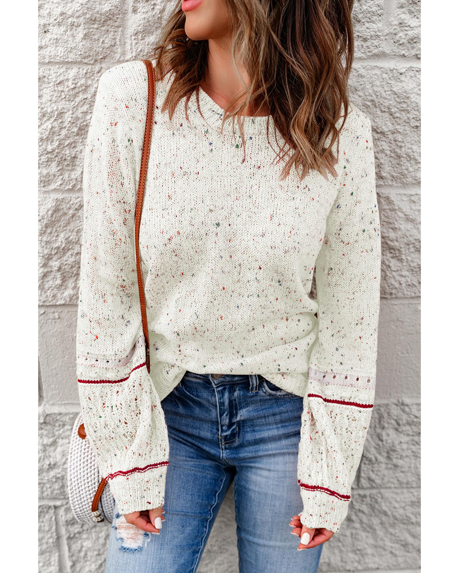 White Pilling Detail Patterned Sleeve Sweater – L