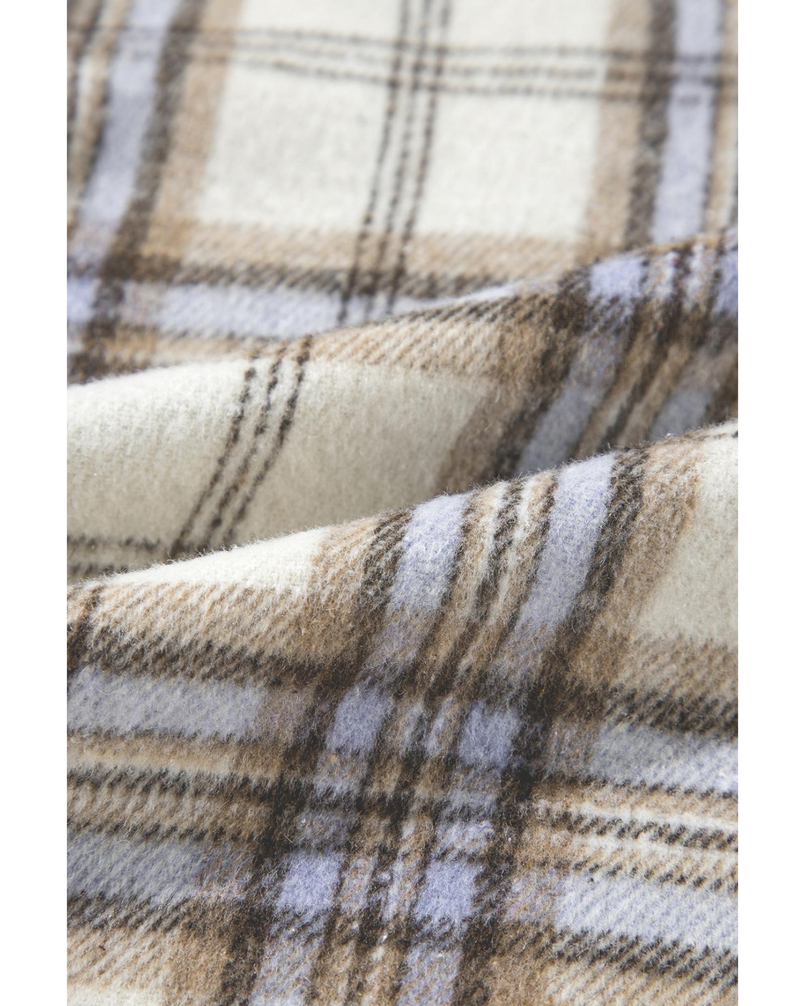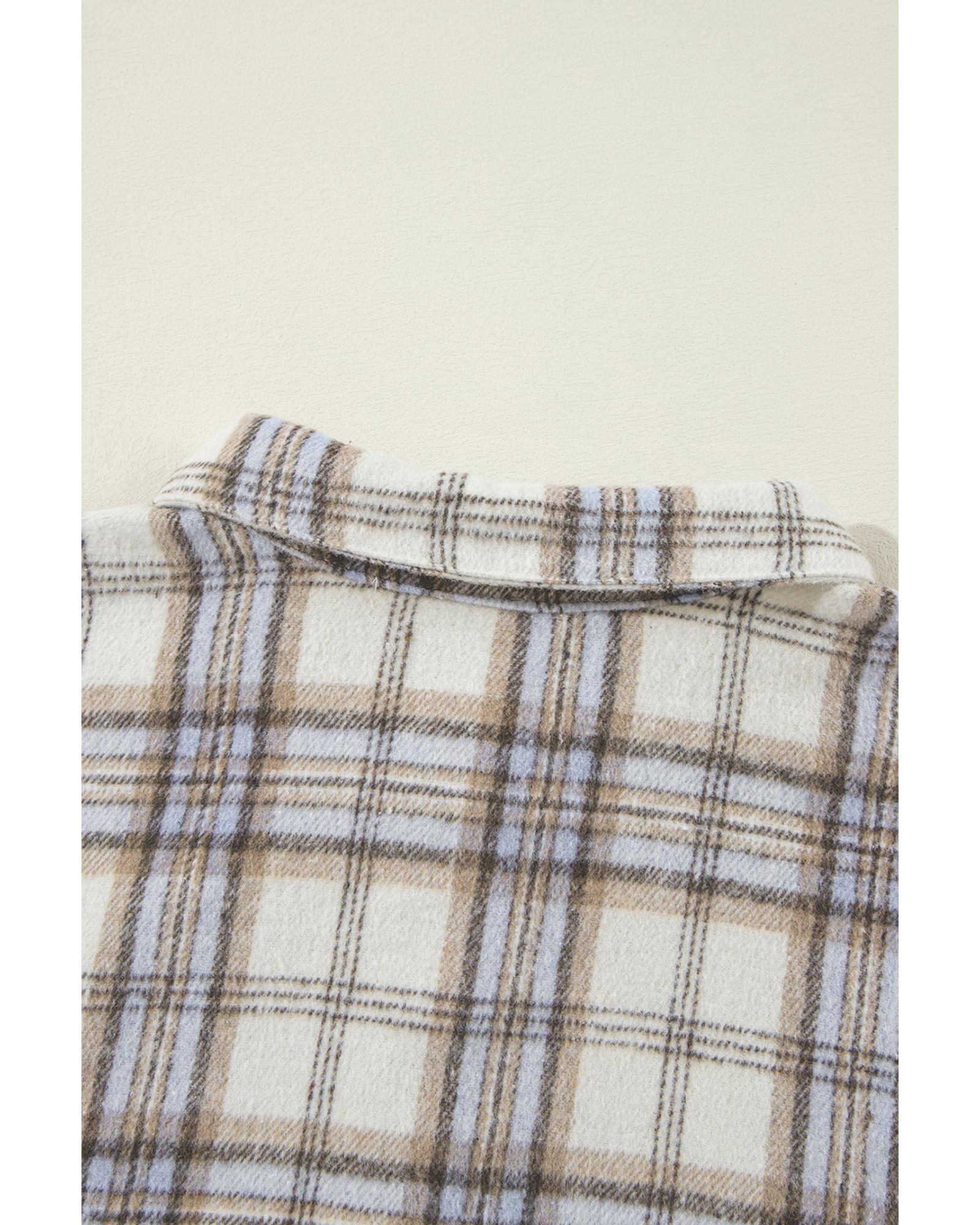 Package Content: 1 x White Plaid Print Tunic Shacket