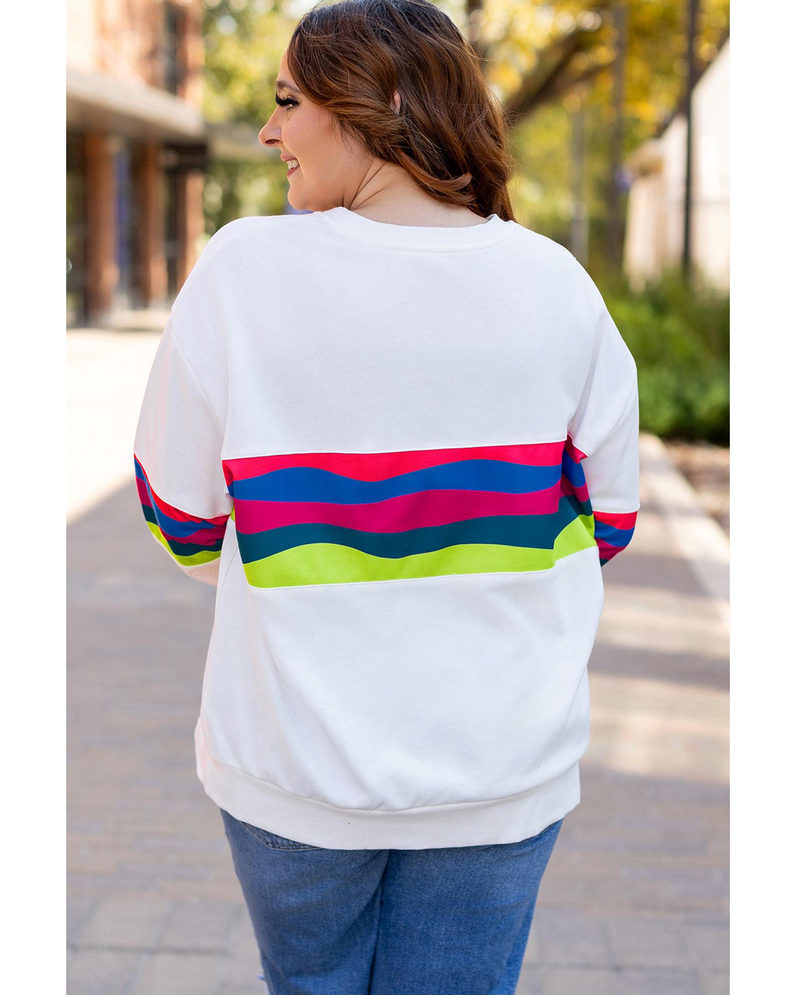 White Plus Size Colorful Striped Drop Shoulder Loose Sweatshirt – 1X