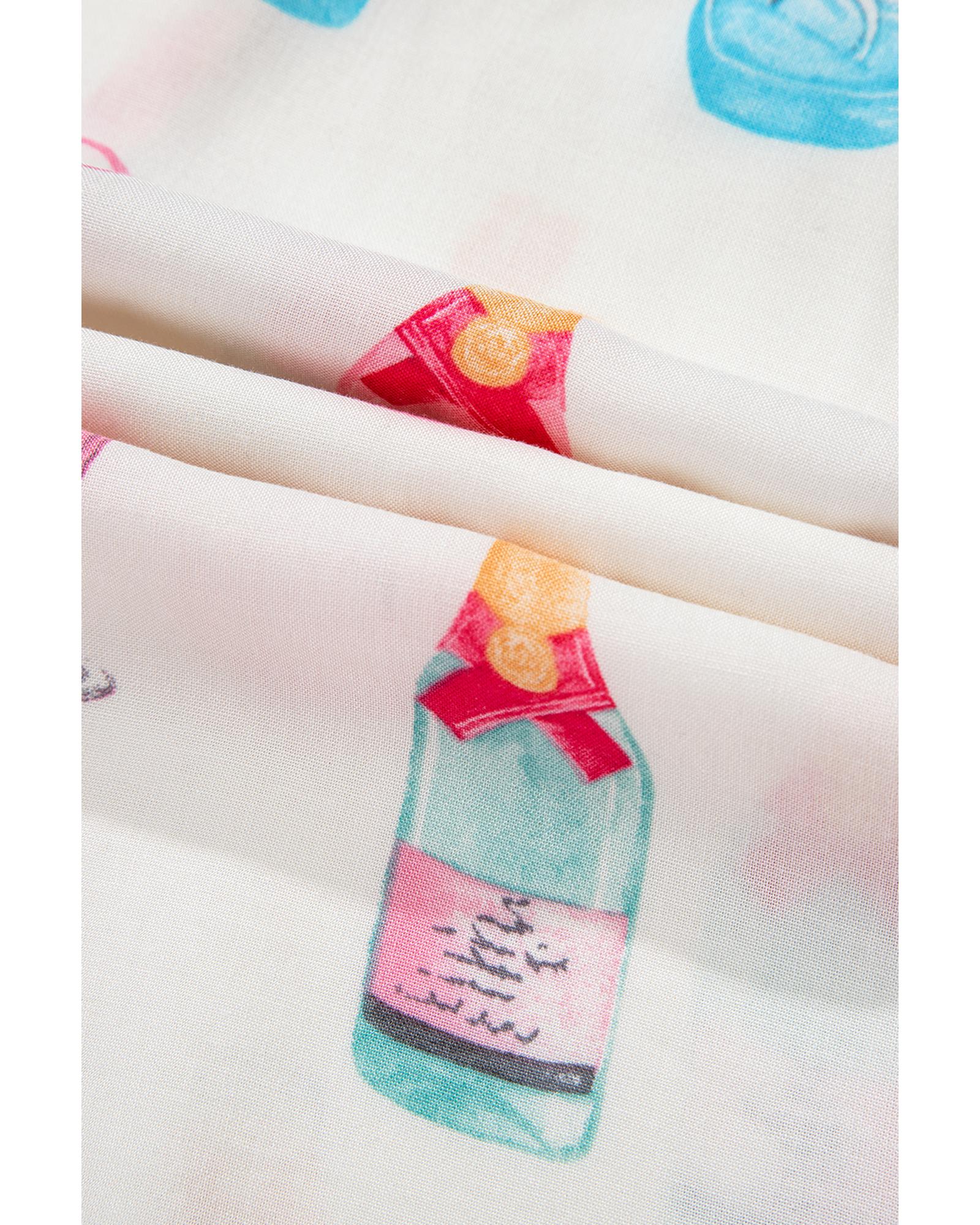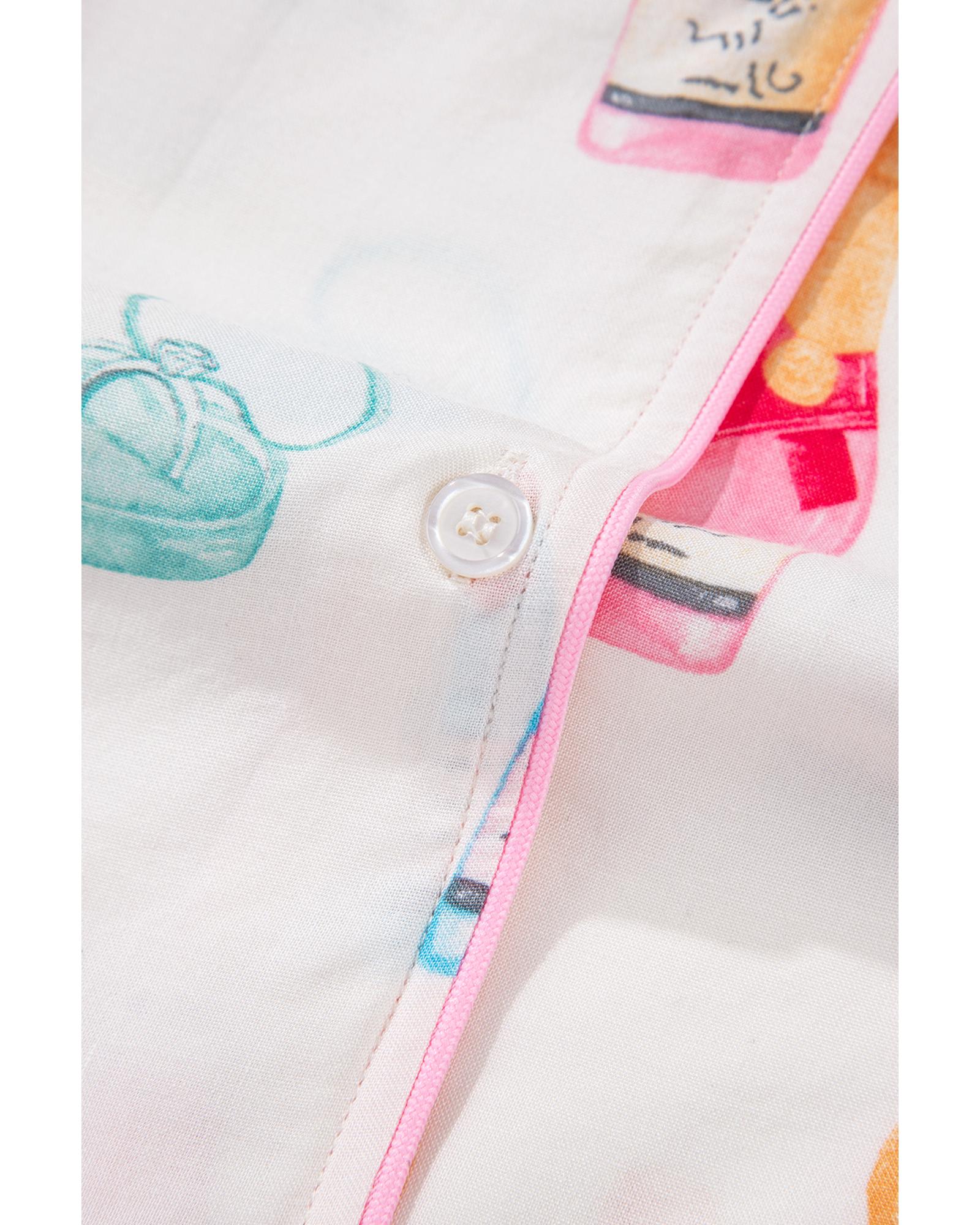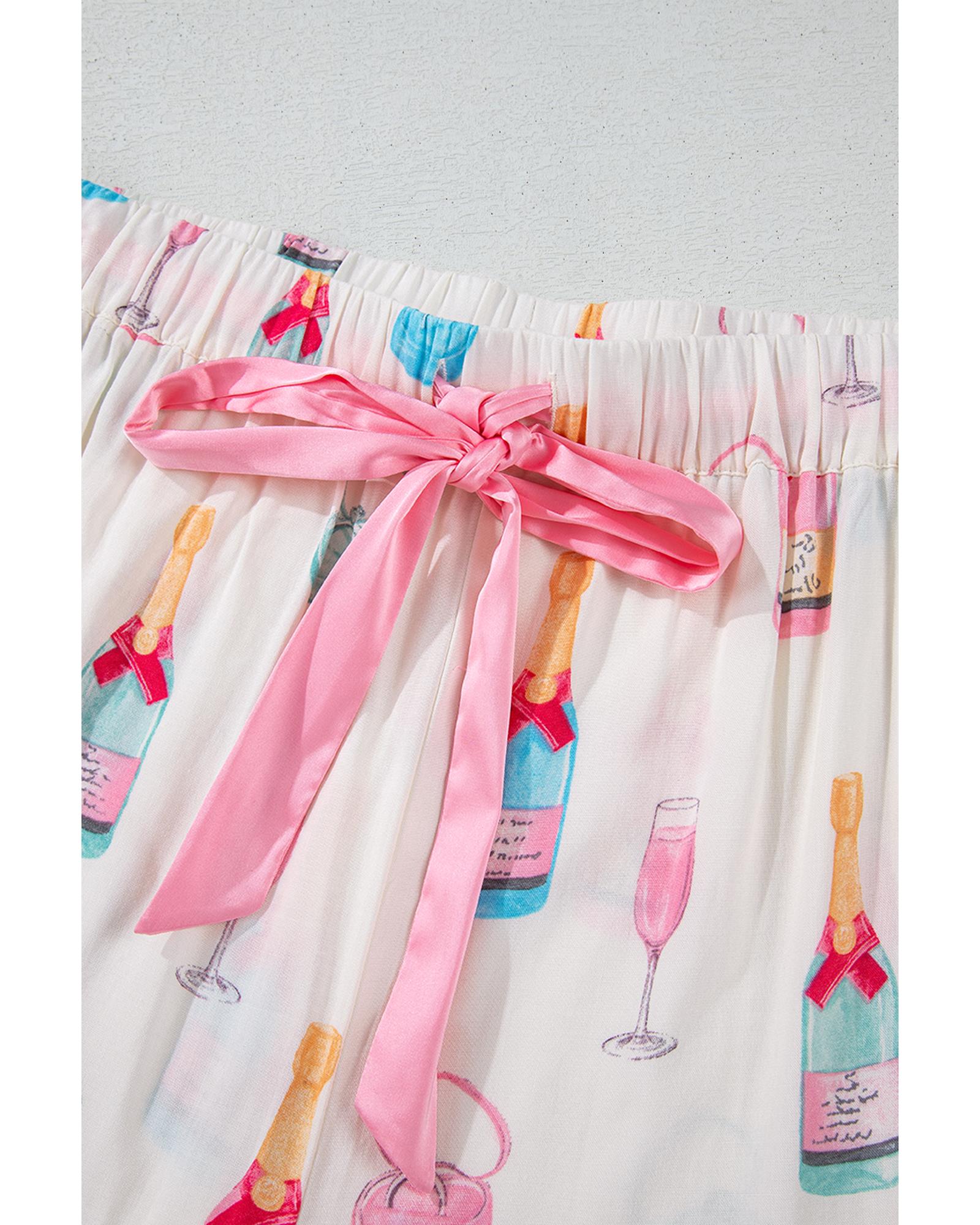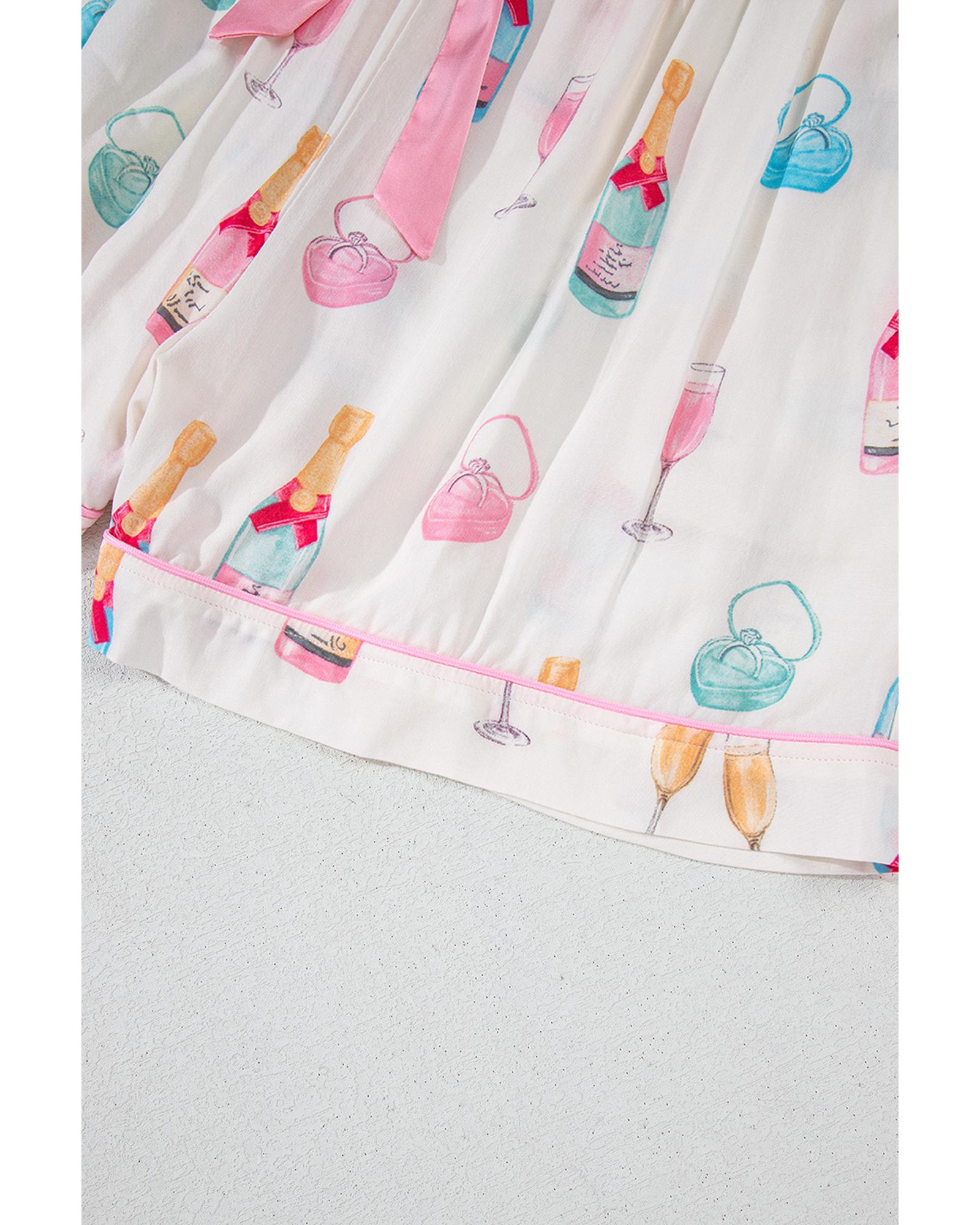 White Plus Size Wine Glass Print Bow Knot Pajama Set – 1X