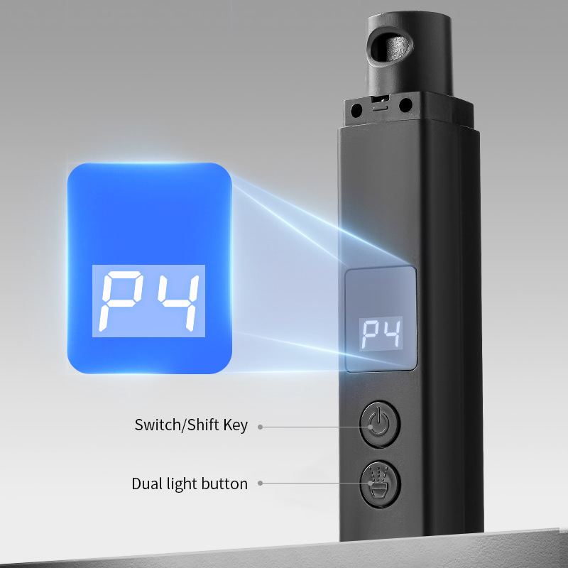 - Four adjustable speeds with an LCD display showing the current gear and battery level
