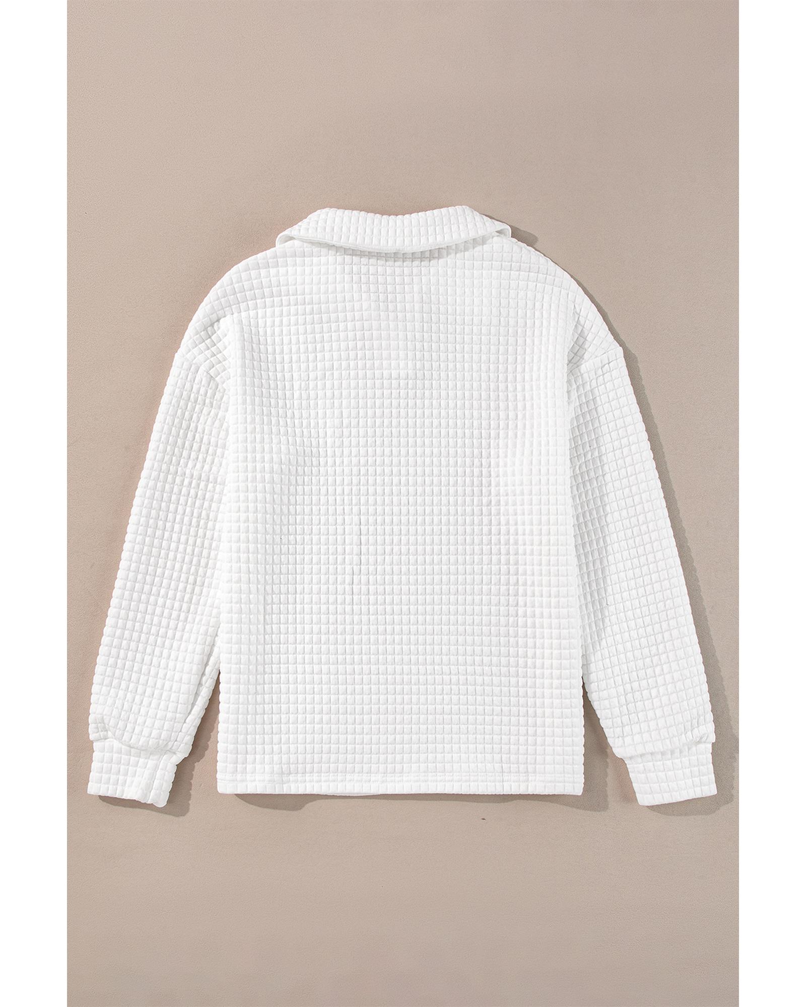 White Quilted Texture Sporty Collared Long Sleeve Top – M
