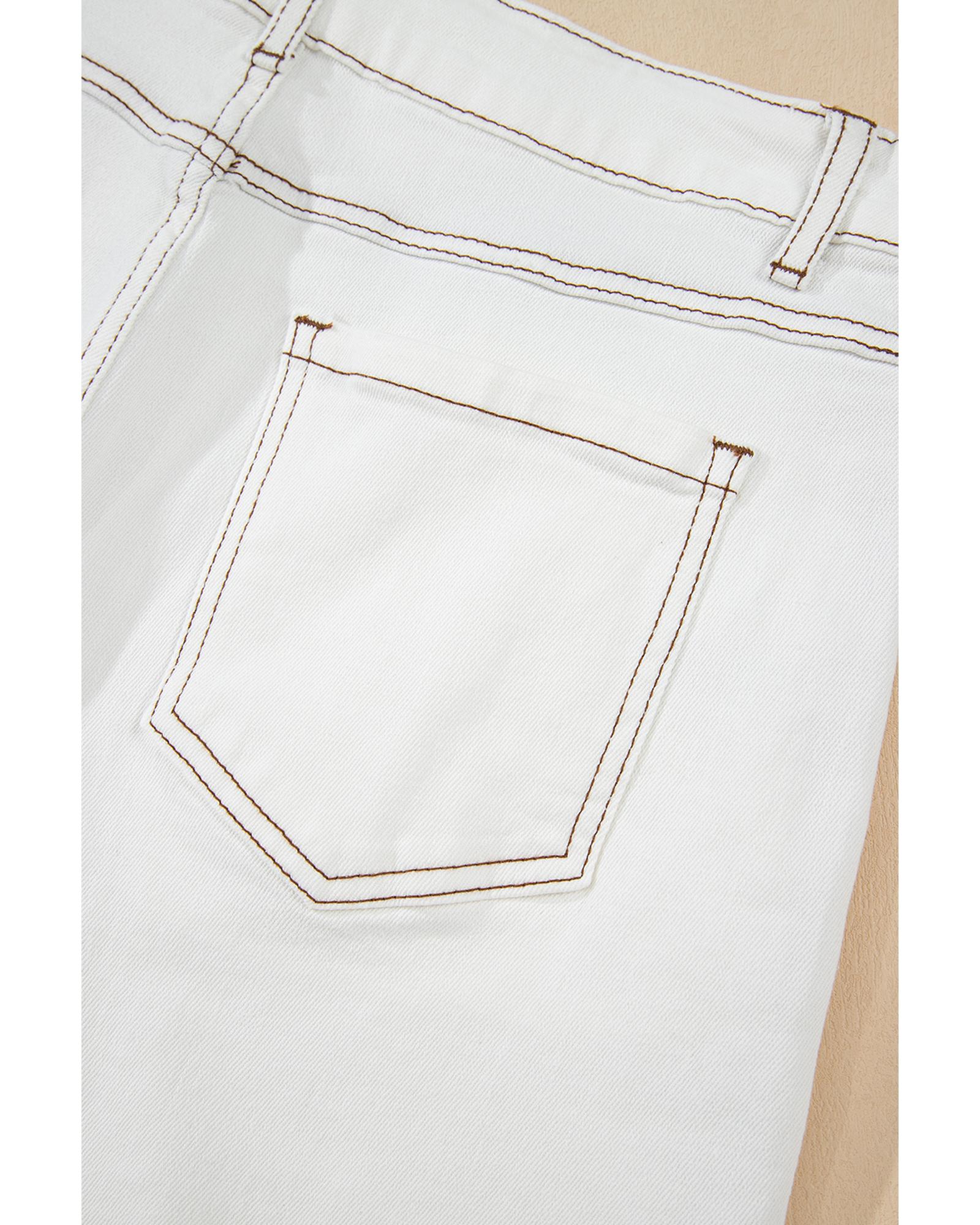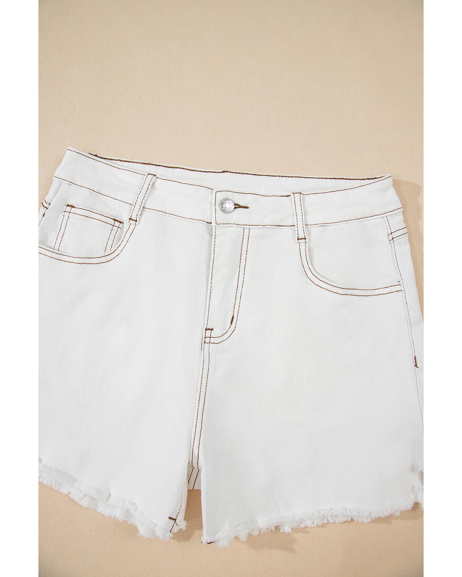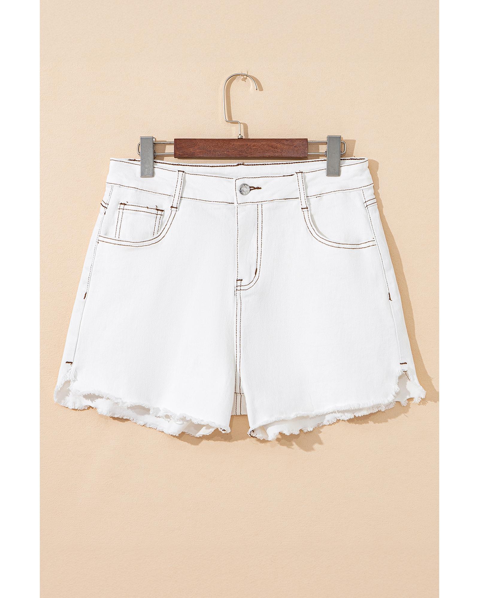 These white raw hem high waist denim shorts are designed to provide a stylish and trendy look. The high waist cut offers a flattering silhouette, while the raw hem detail adds a fashionable edge. Made from durable denim, they are versatile and easy to style with various tops for different occasions.