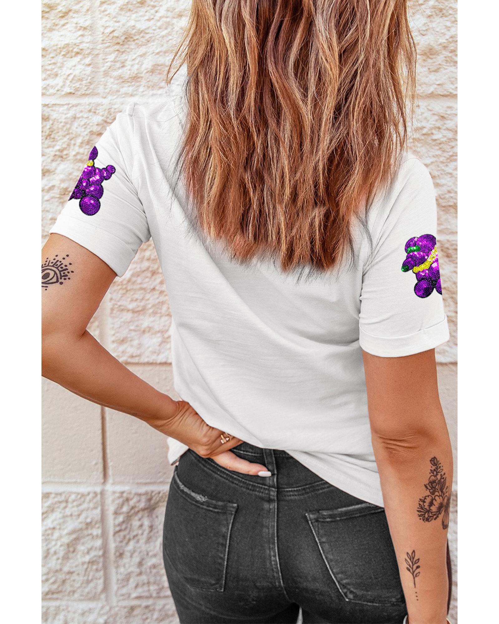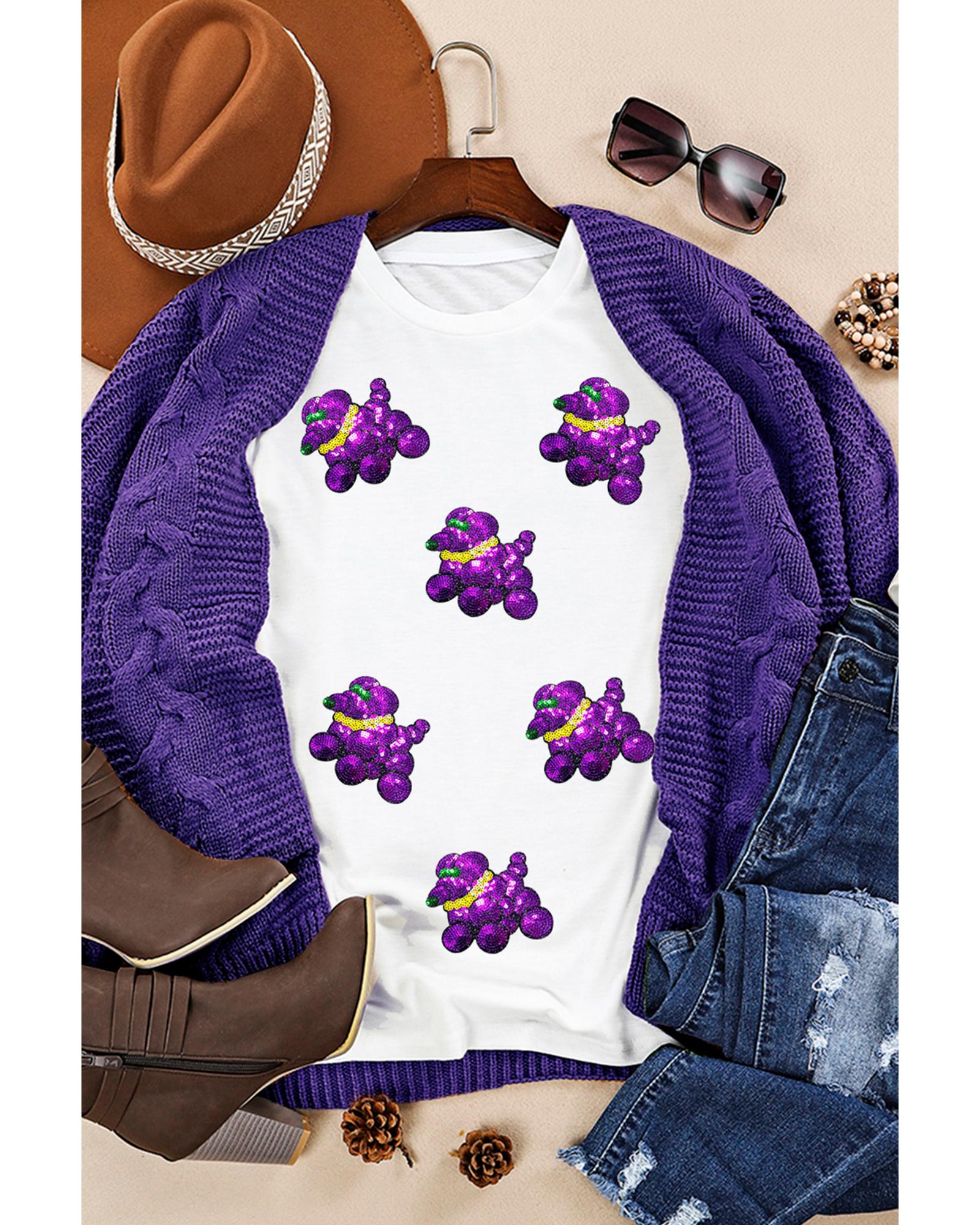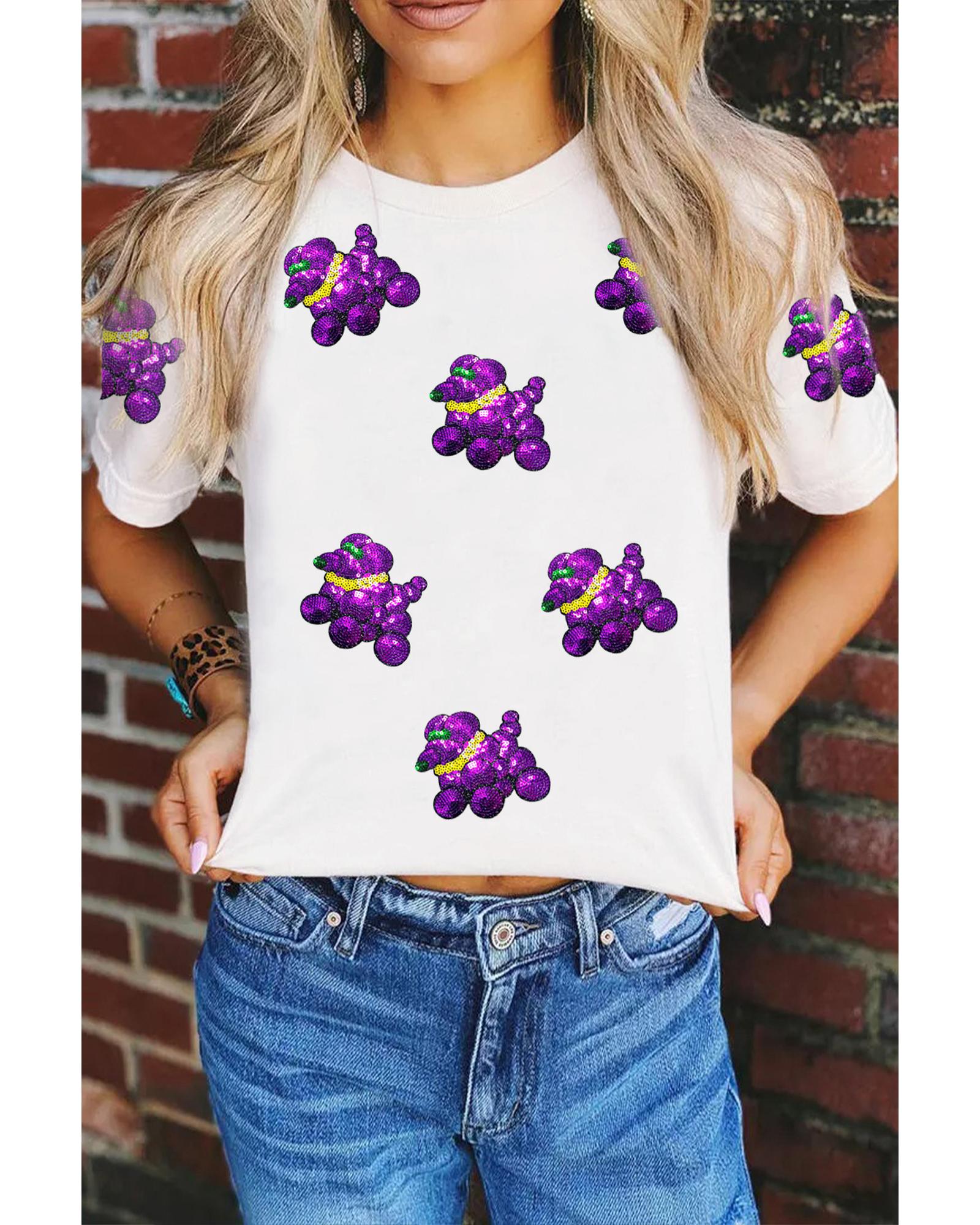 White Sequin Balloon Puppy Graphic Mardi Gras Tee – XL