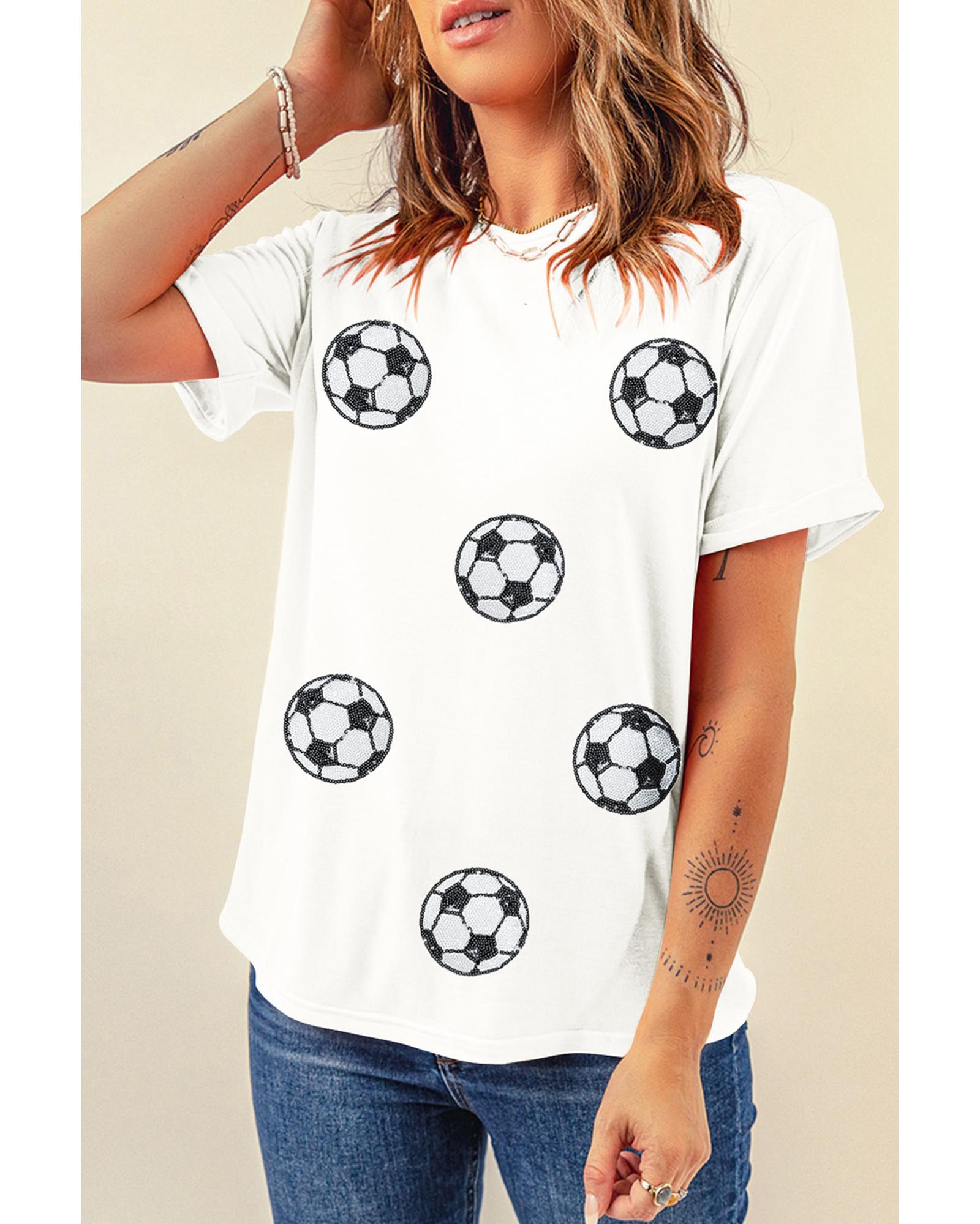 - White T-shirt with sequin football patches