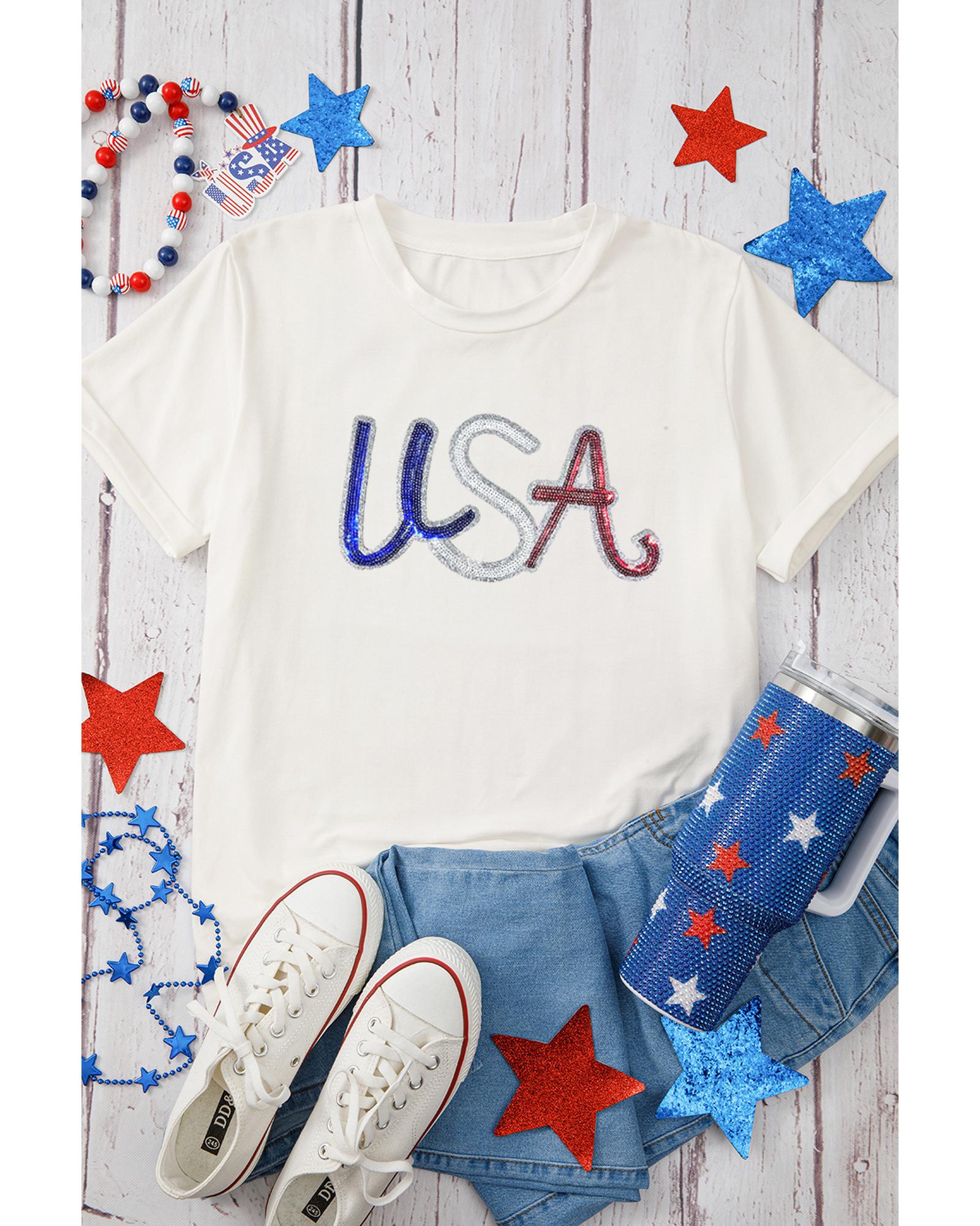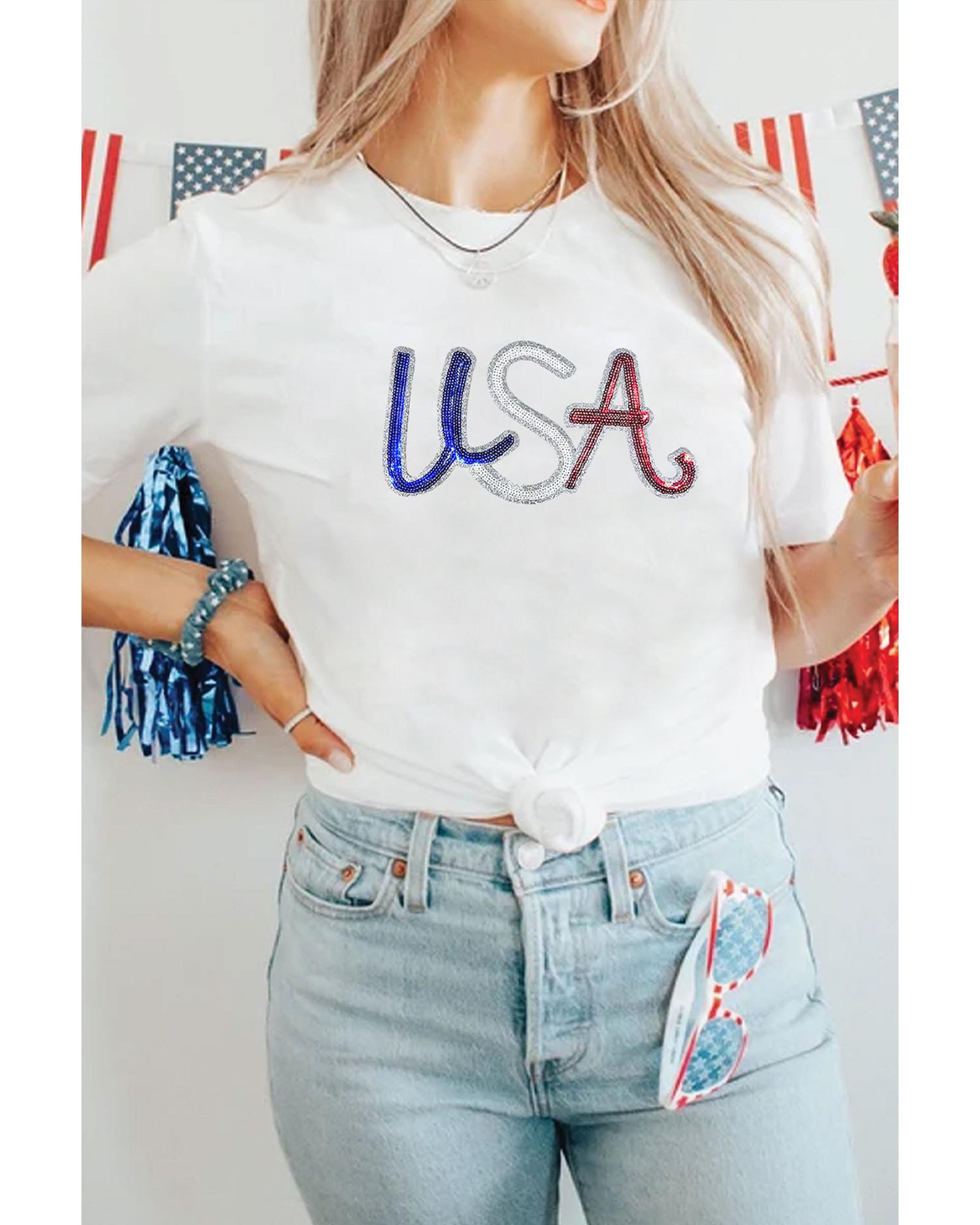 Package Content: 1 x Patriotic Sequin USA Graphic Crew Neck Tee