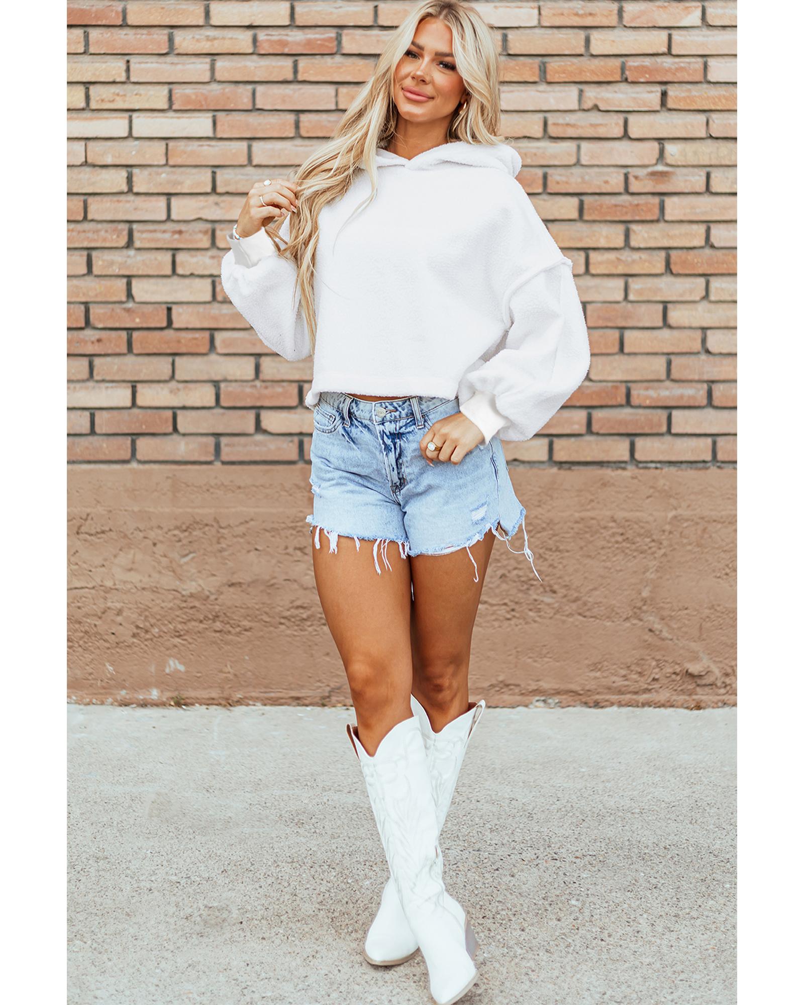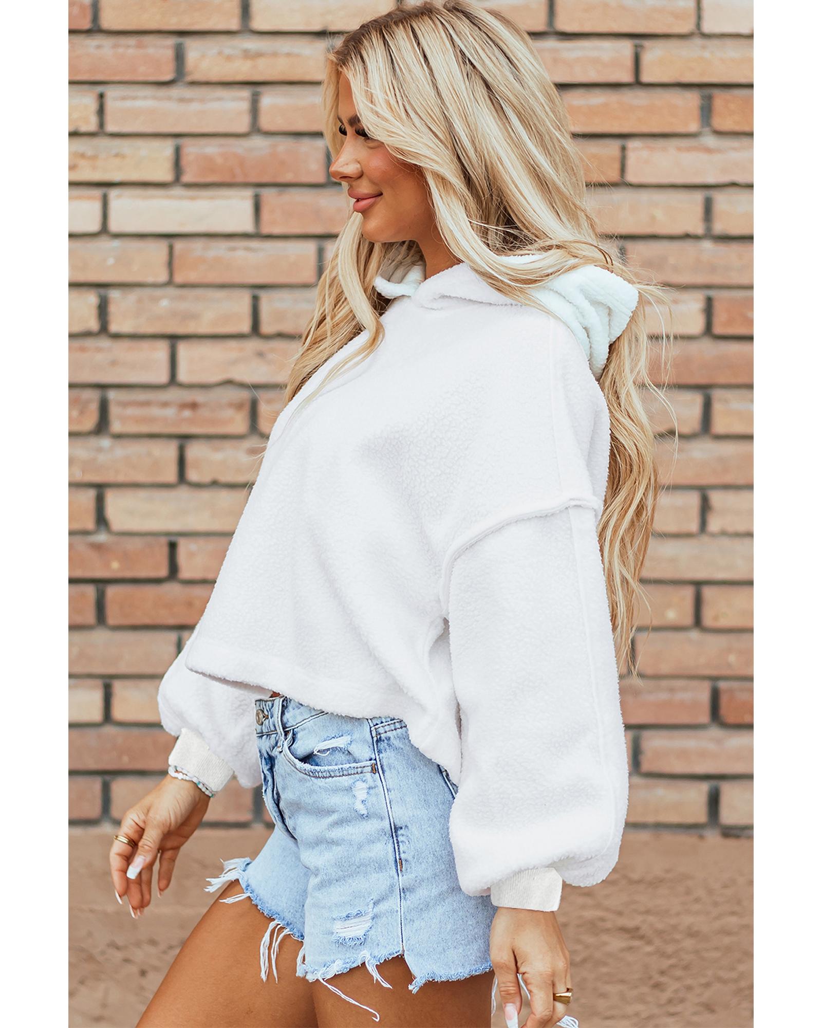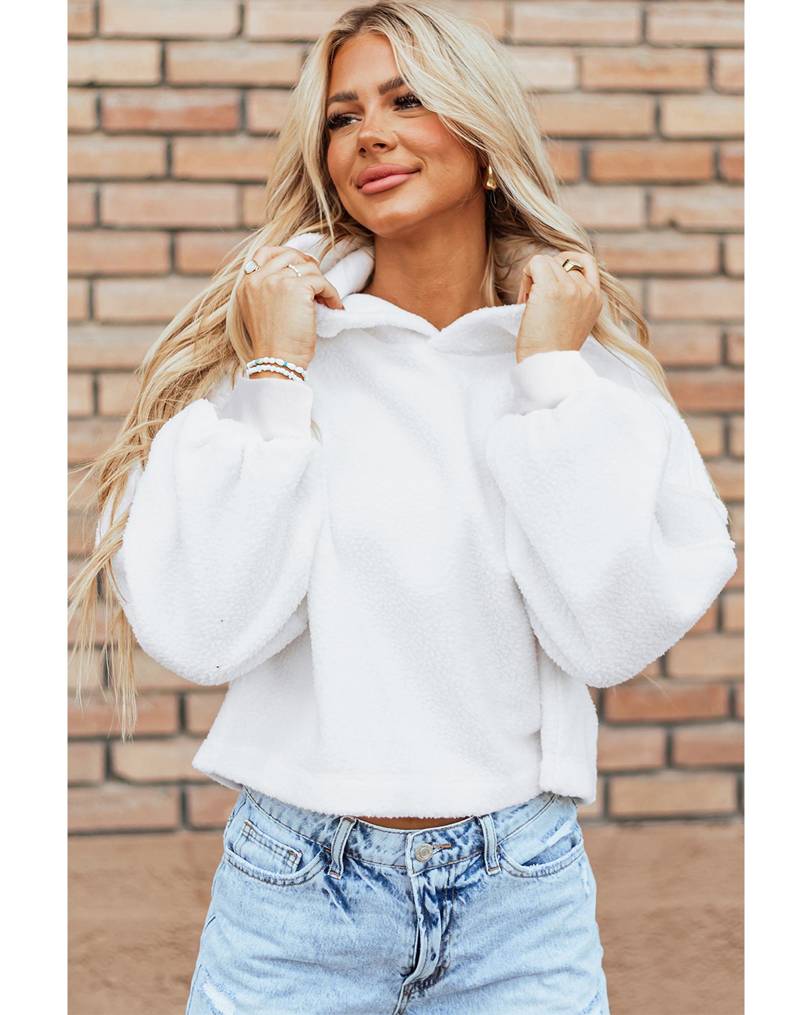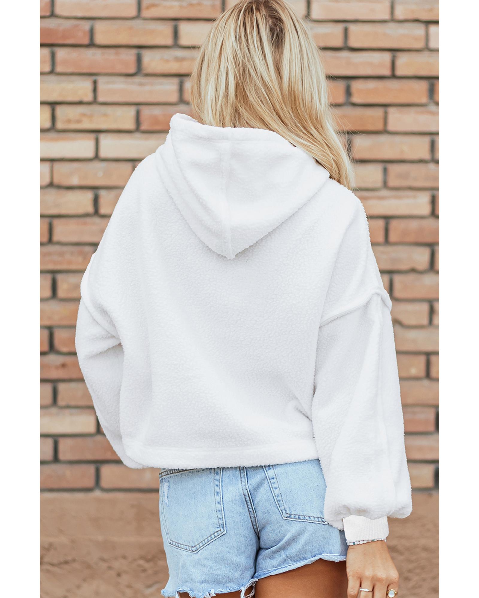 White Sherpa Fleece Drop Shoulder Hoodie – XL