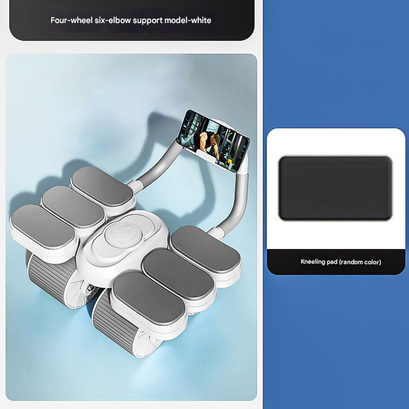 White Six-Elbow Four-Wheel Automatic Rebound Abdominal Wheel – Home Fitness Equipment for Toning Abs and Building Core Strength