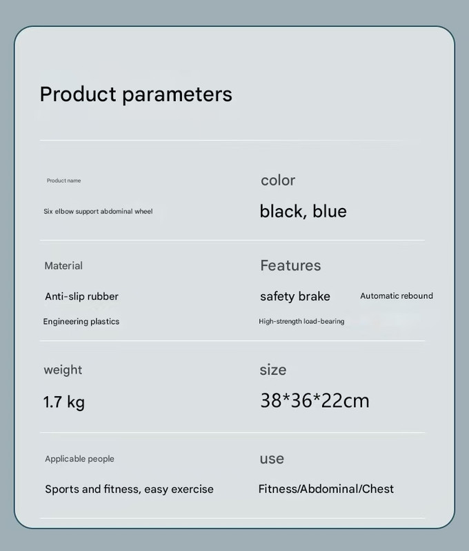 This abdominal wheel features a six-elbow, four-wheel design with an automatic rebound mechanism, providing a smooth and controlled workout experience. It is suitable for users aiming to tone their abs and strengthen their core at home, offering stability, comfort, and durability.
