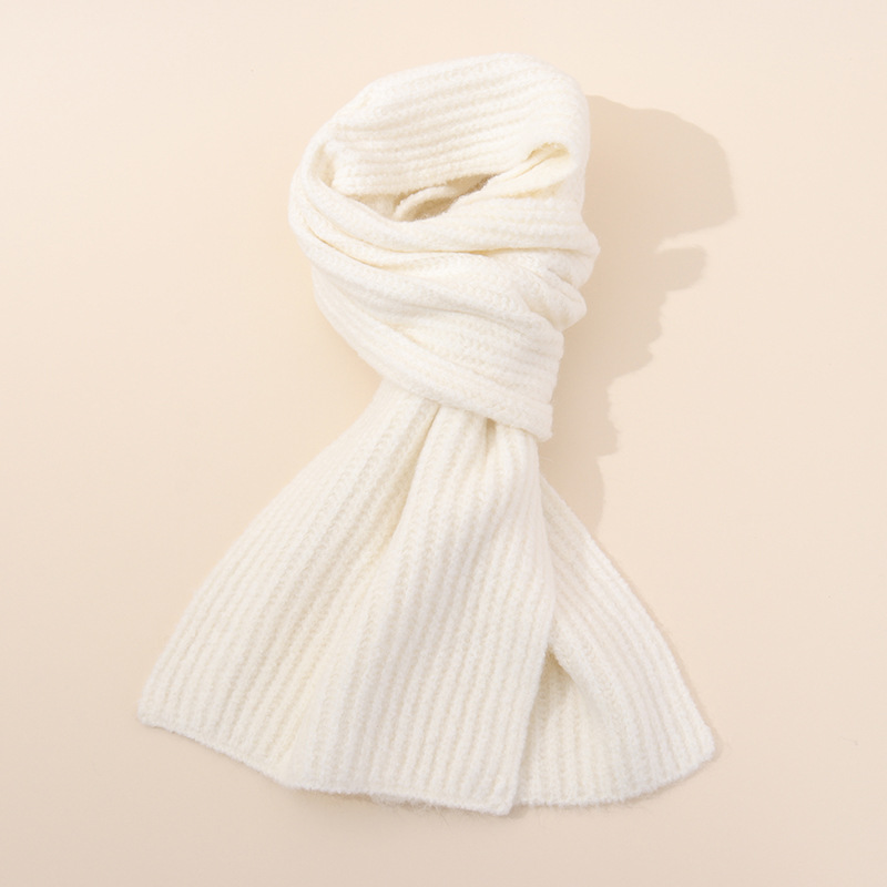 White Soft Ribbed Knit Winter Scarf – Cozy Warm Wool Blend Neck Wrap (160x25cm)