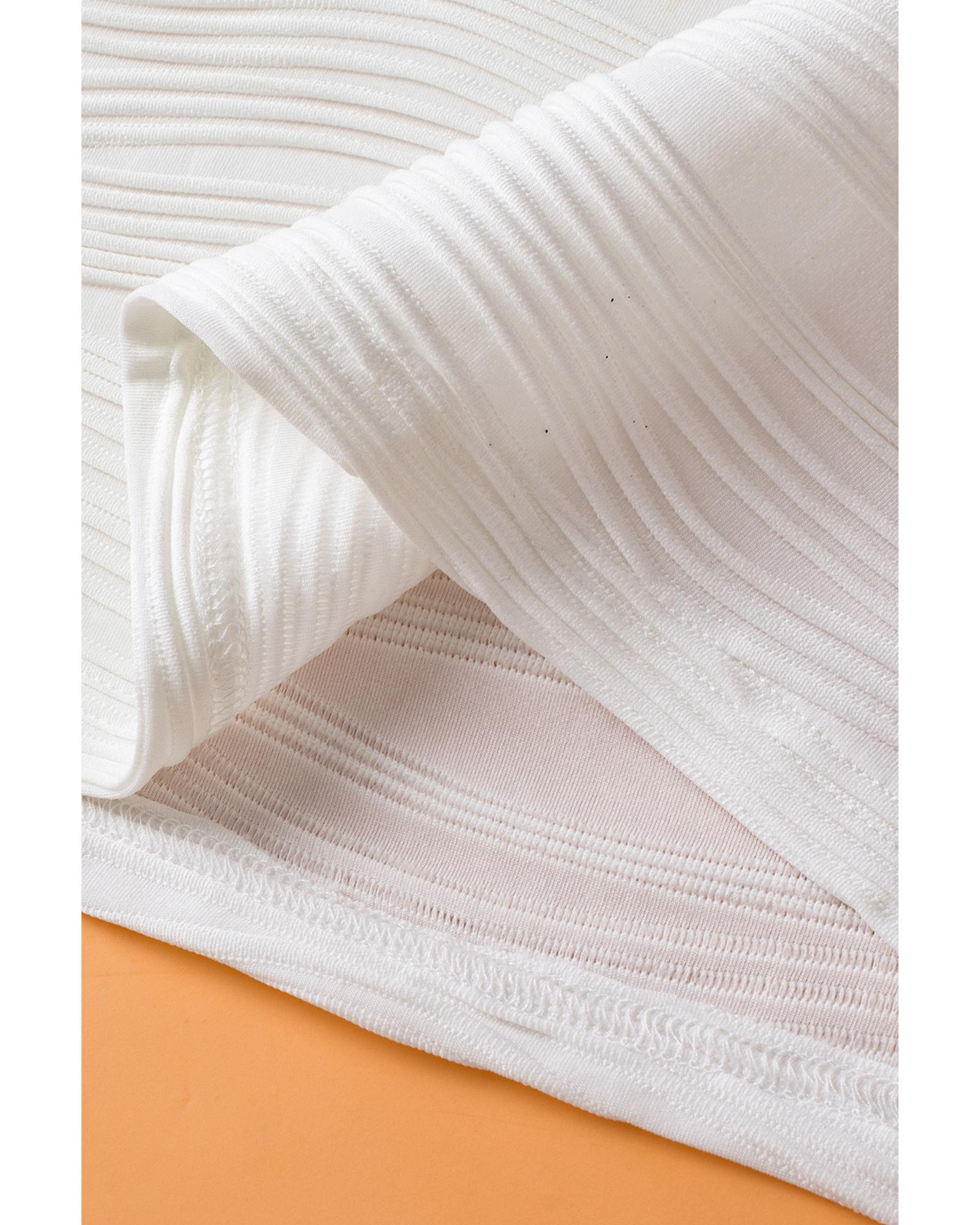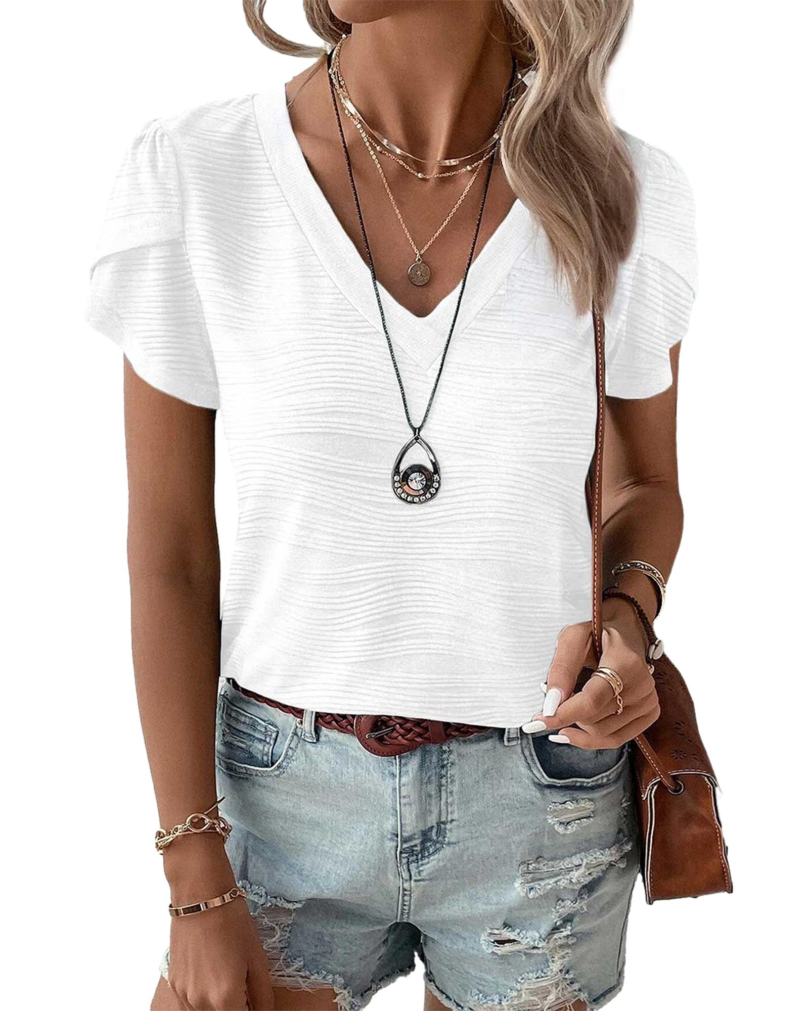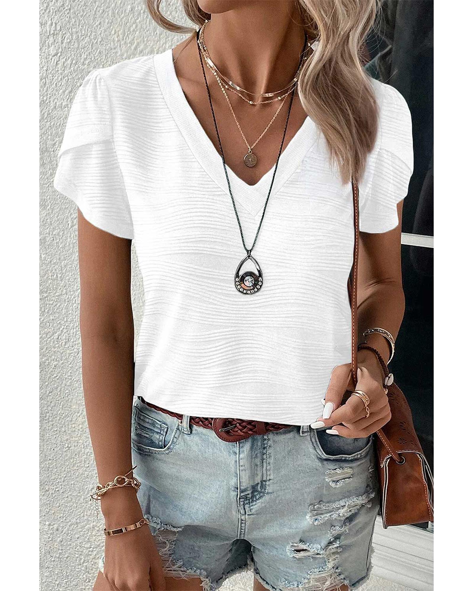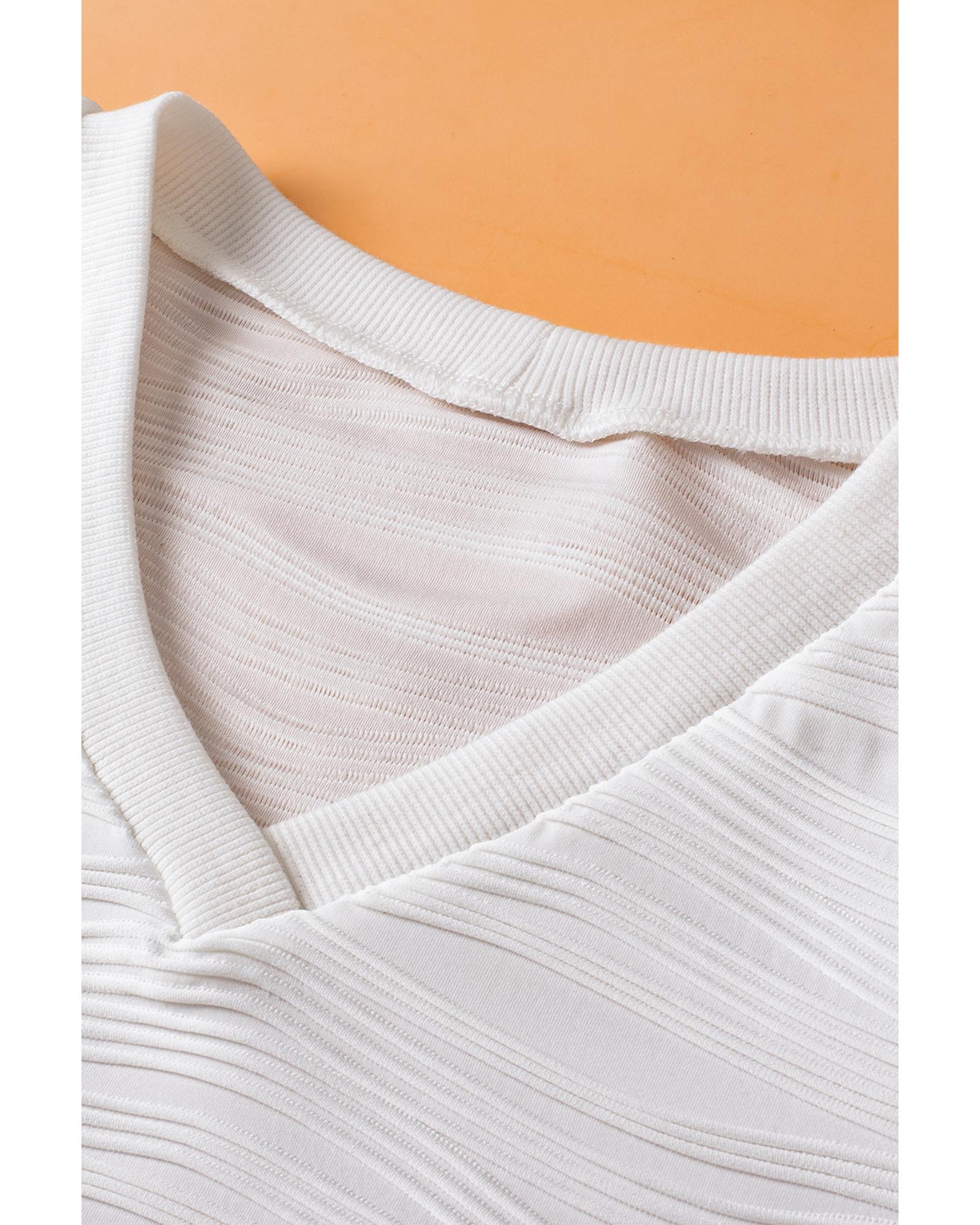 • 1 x White Solid Color Textured V Neck Short Sleeve Top