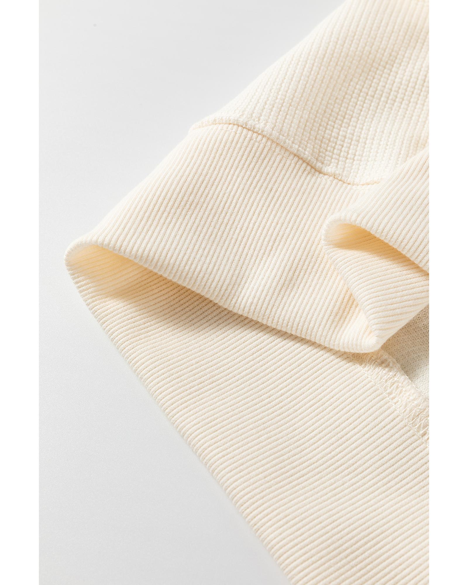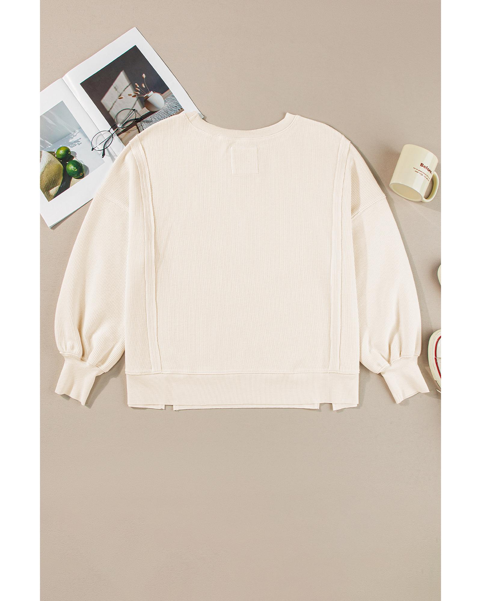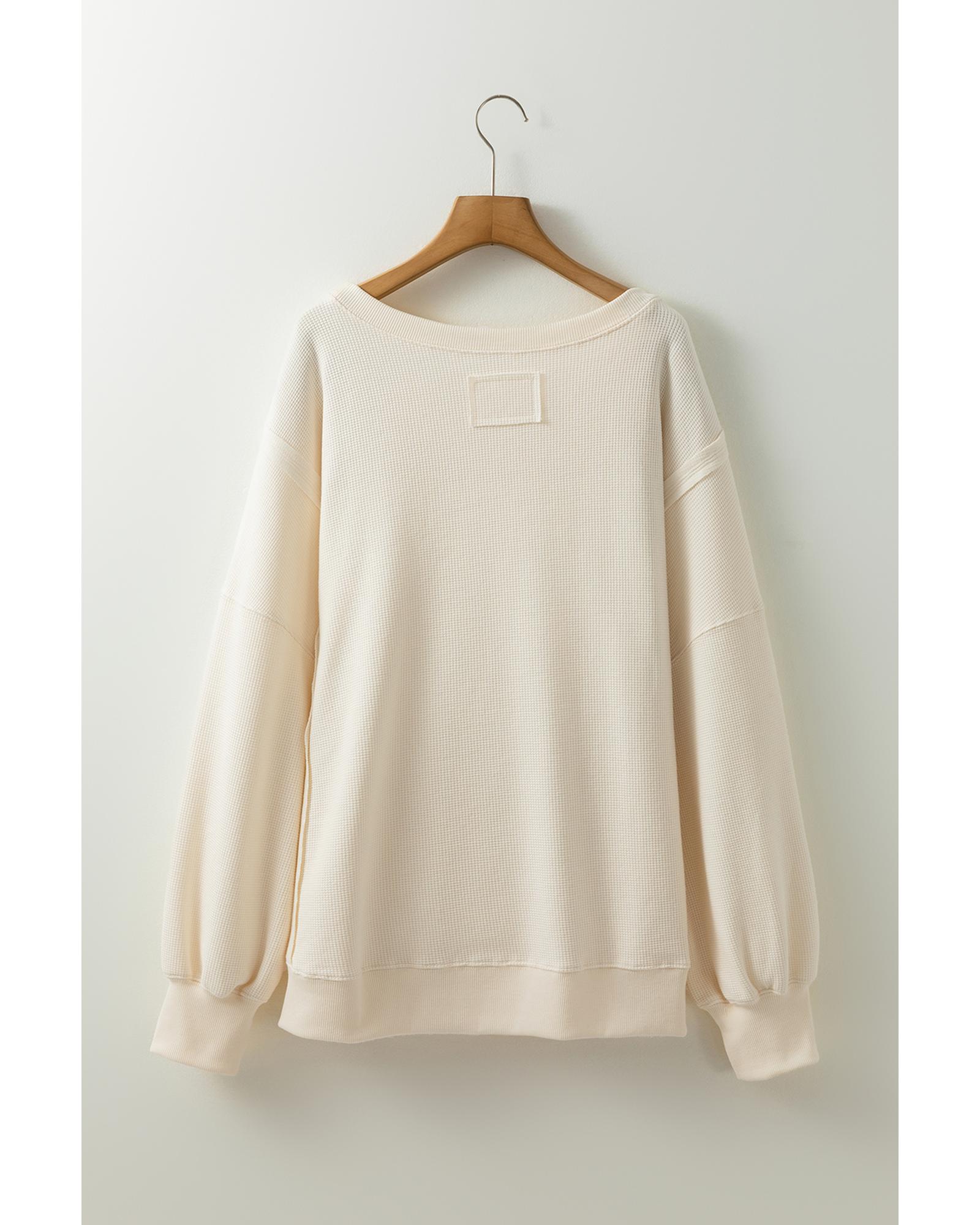 This white solid color waffle knit sweatshirt features a relaxed, oversized fit with a stylish patchwork design. Its drop shoulder style offers a casual and laid-back look, making it a versatile addition to your wardrobe.