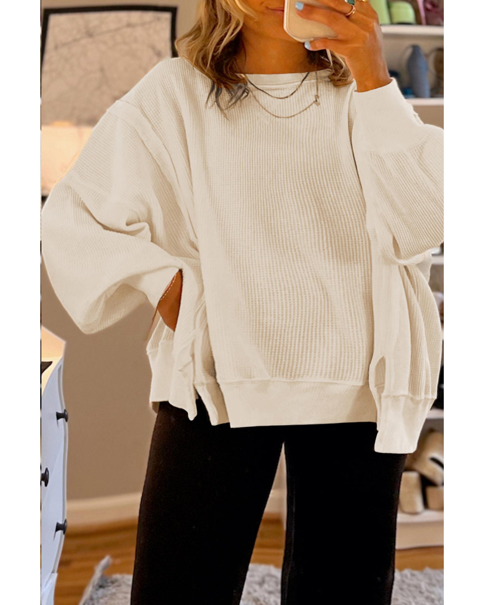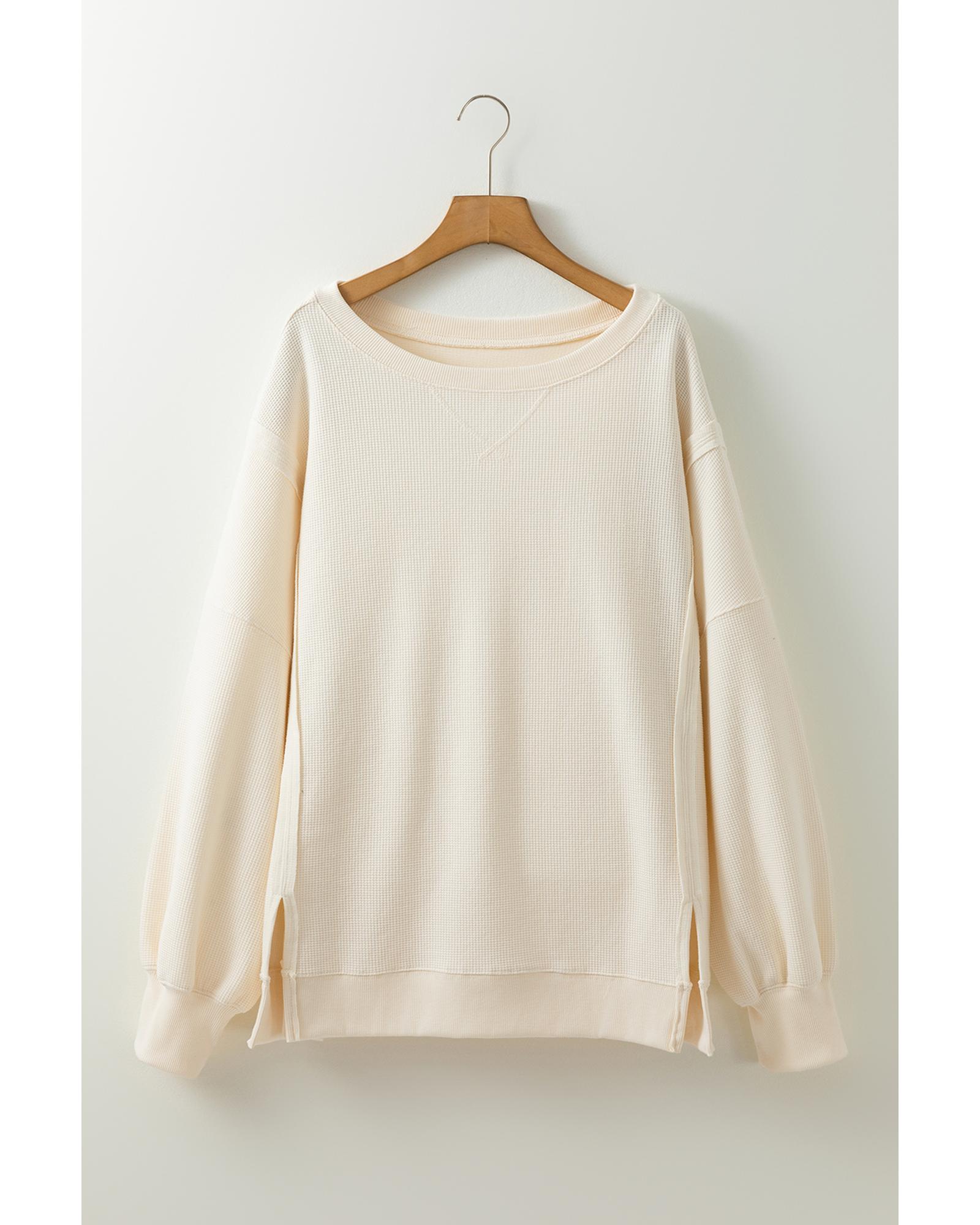 White Solid Color Waffle Knit Drop Shoulder Plus Size Sweatshirt – 1X