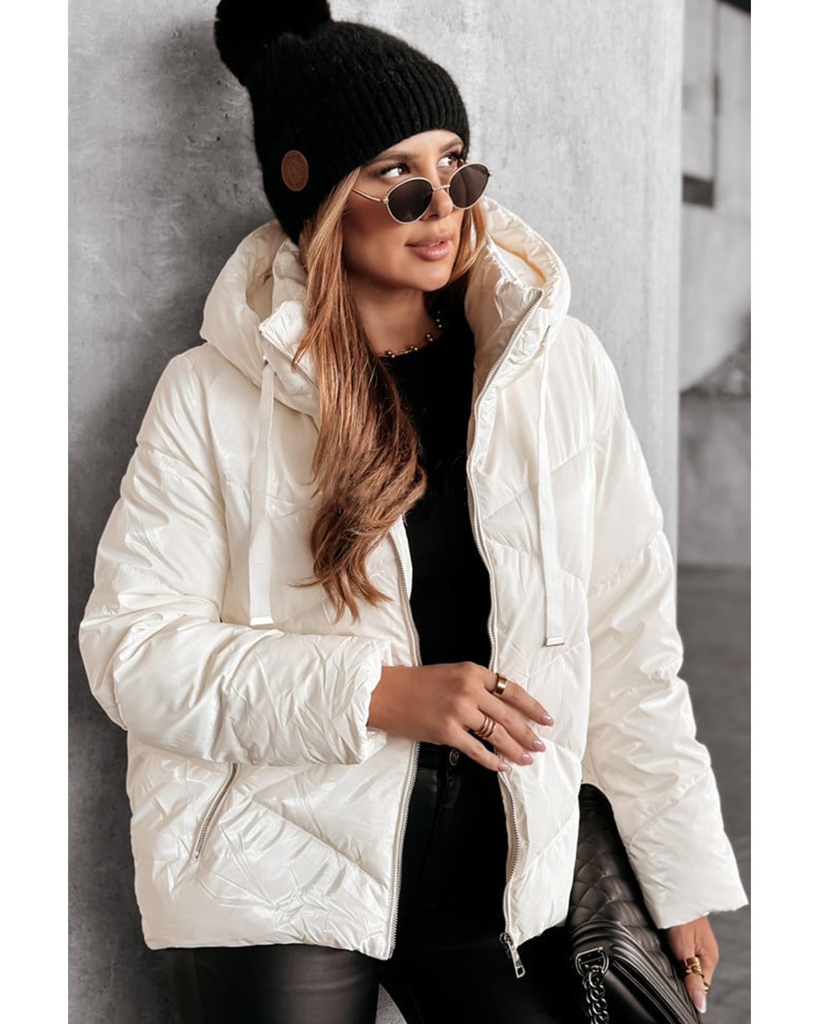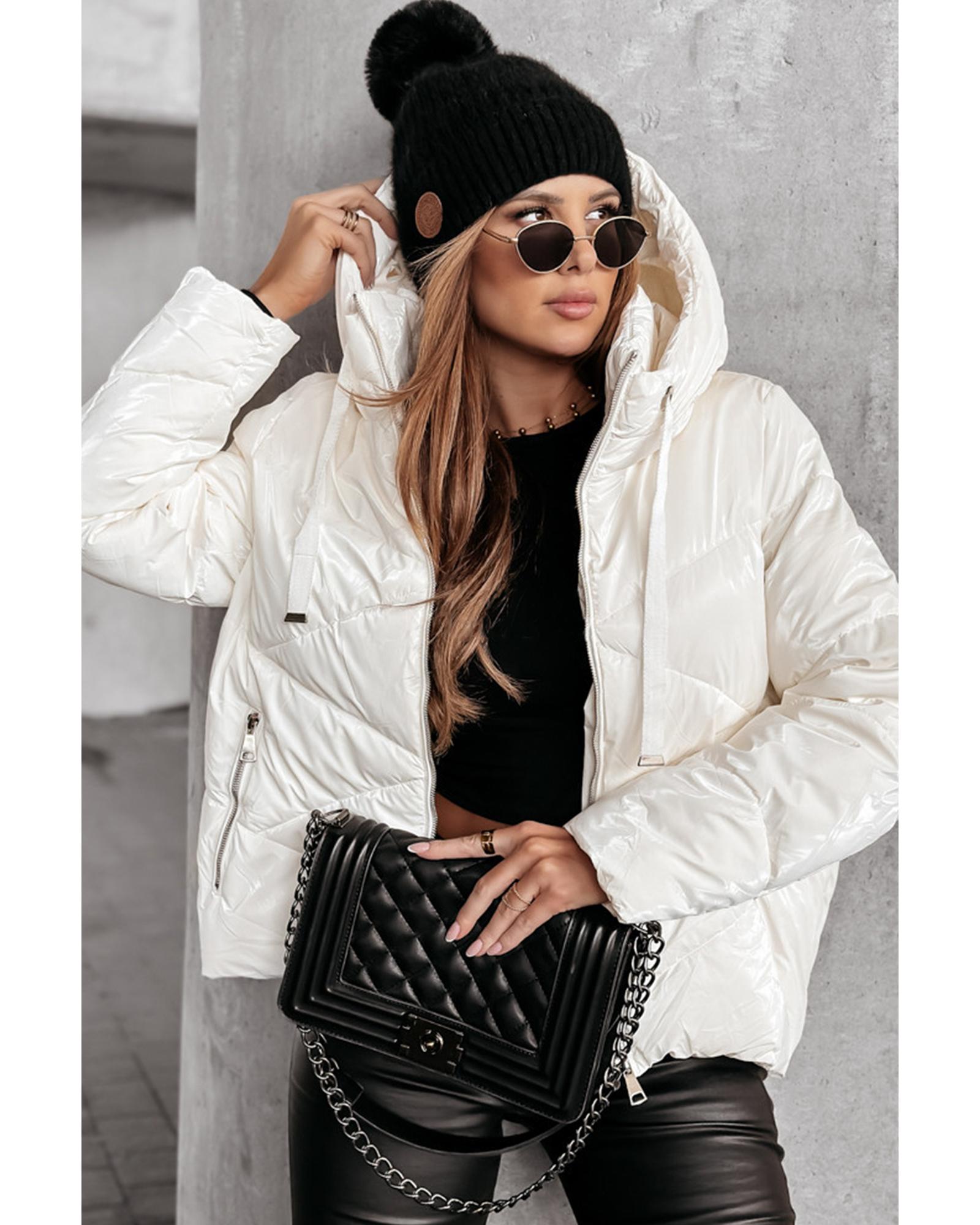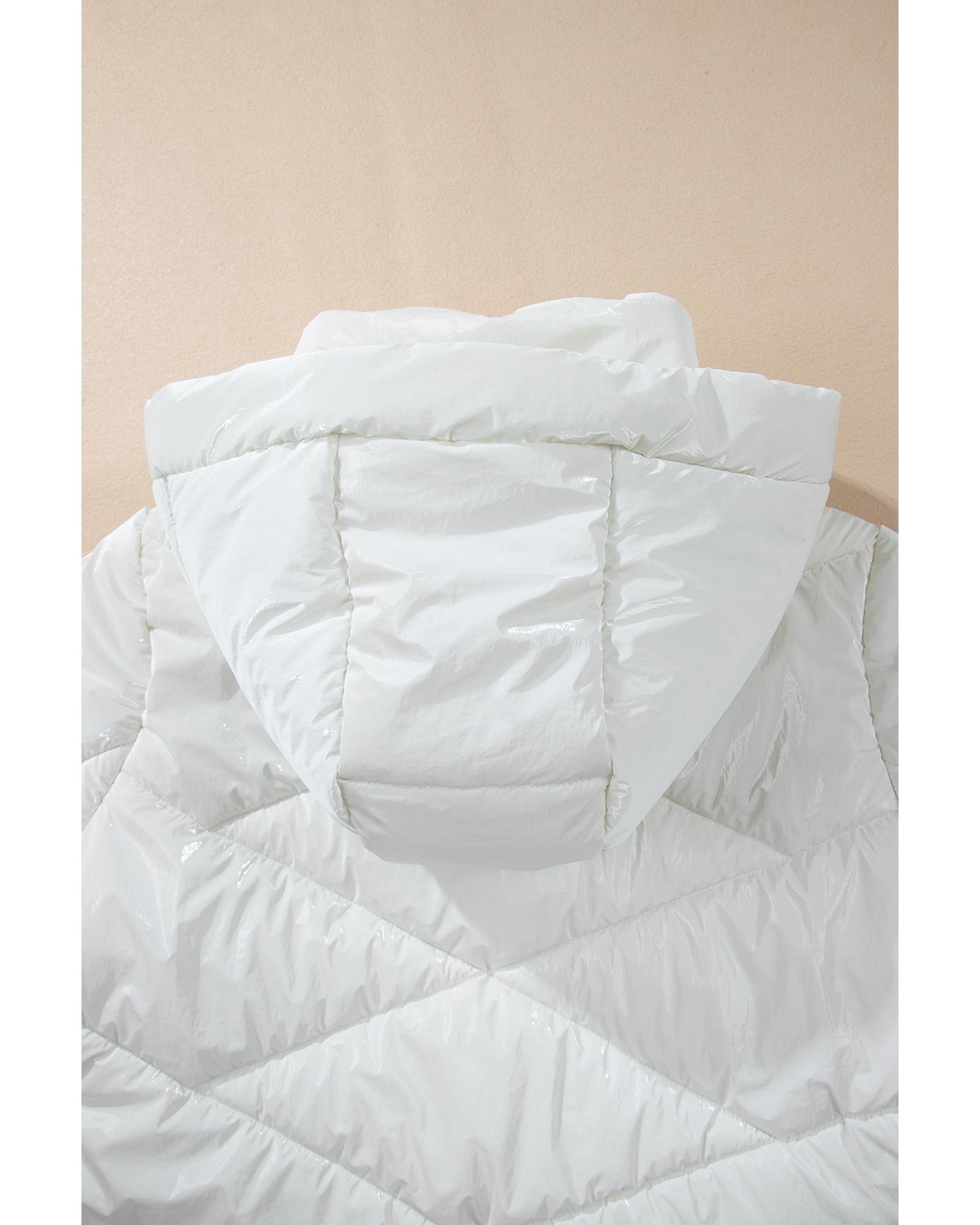 This white solid quilted hooded puffer coat offers a stylish and practical solution for cold weather. Designed with a trendy fitted look, it provides warmth and comfort while maintaining a fashionable appearance. The coat features a quilted pattern for insulation and texture, making it a versatile addition to your winter wardrobe.