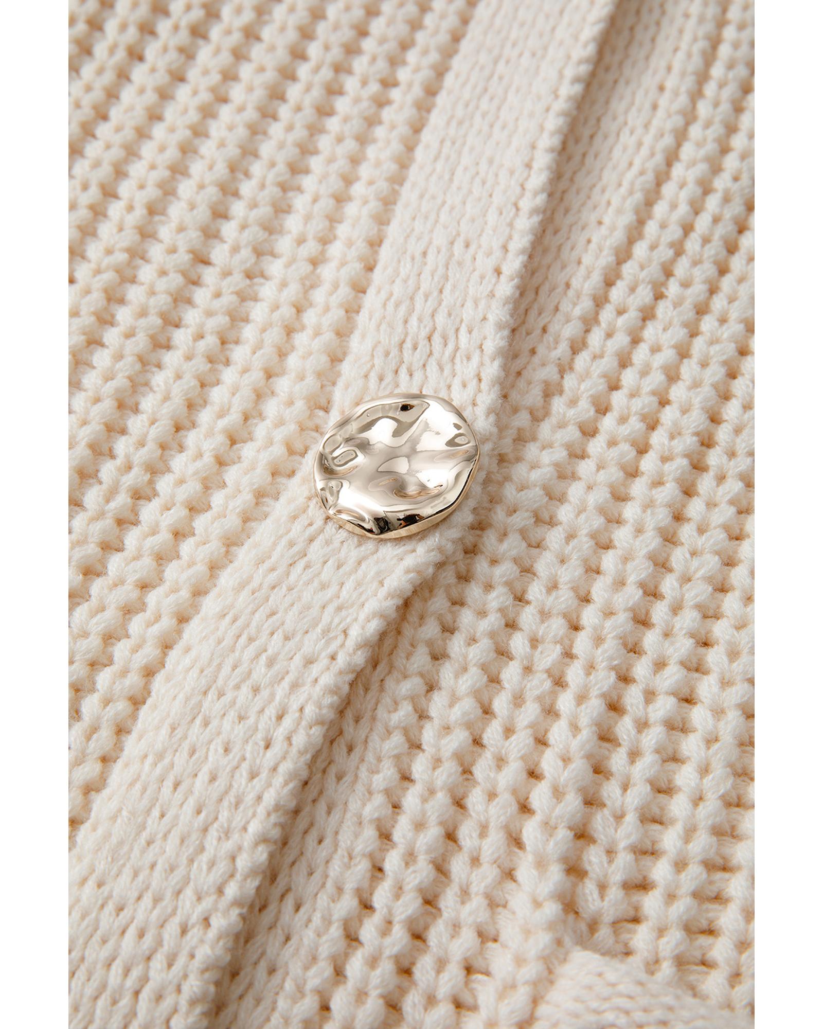 White Solid Textured Knit Side Pockets Buttoned Sweater Vest – S