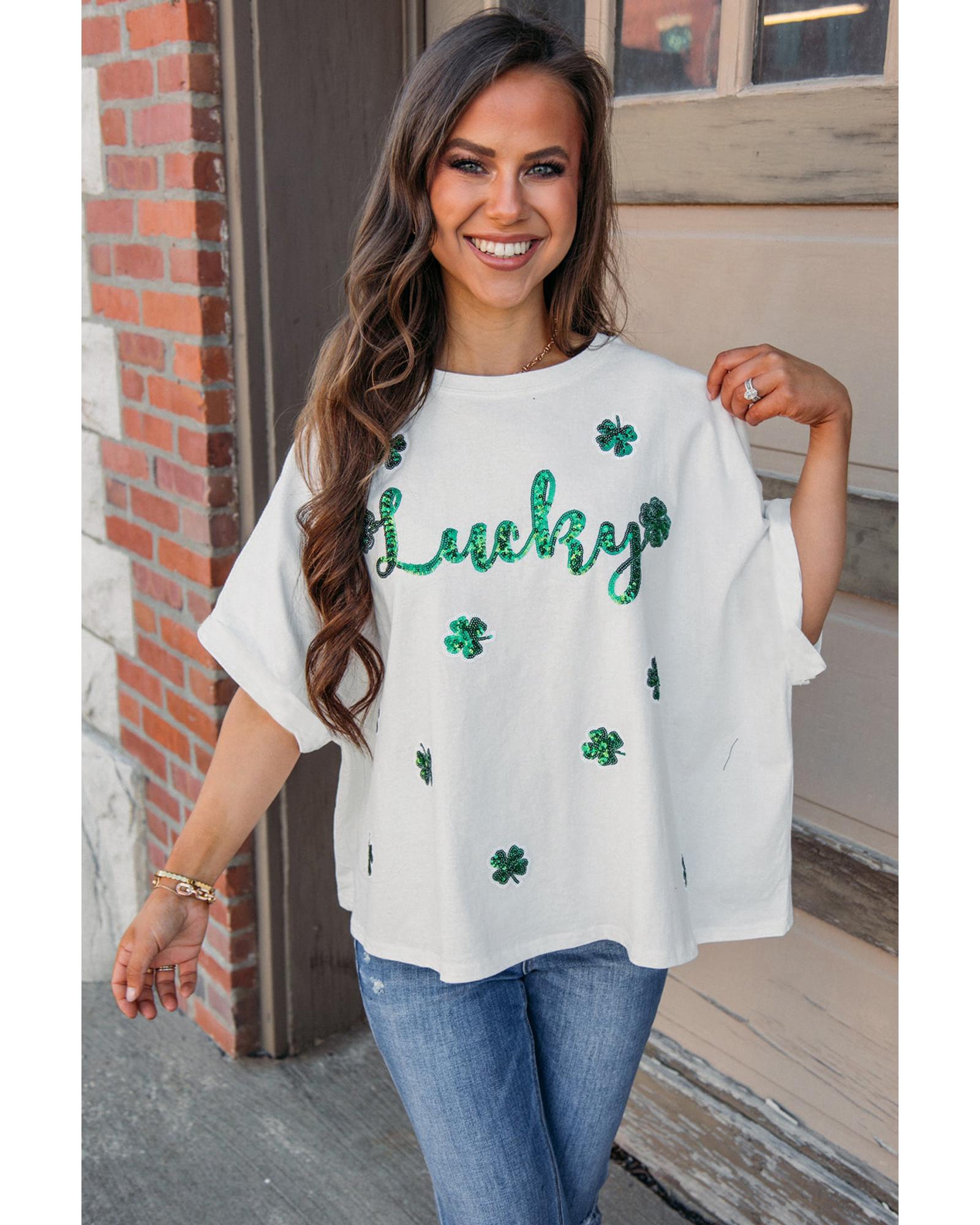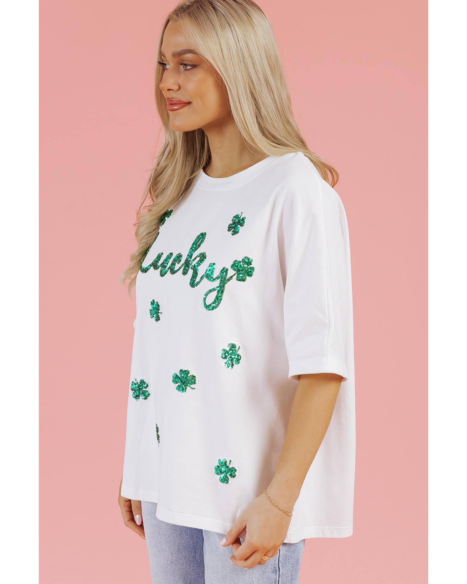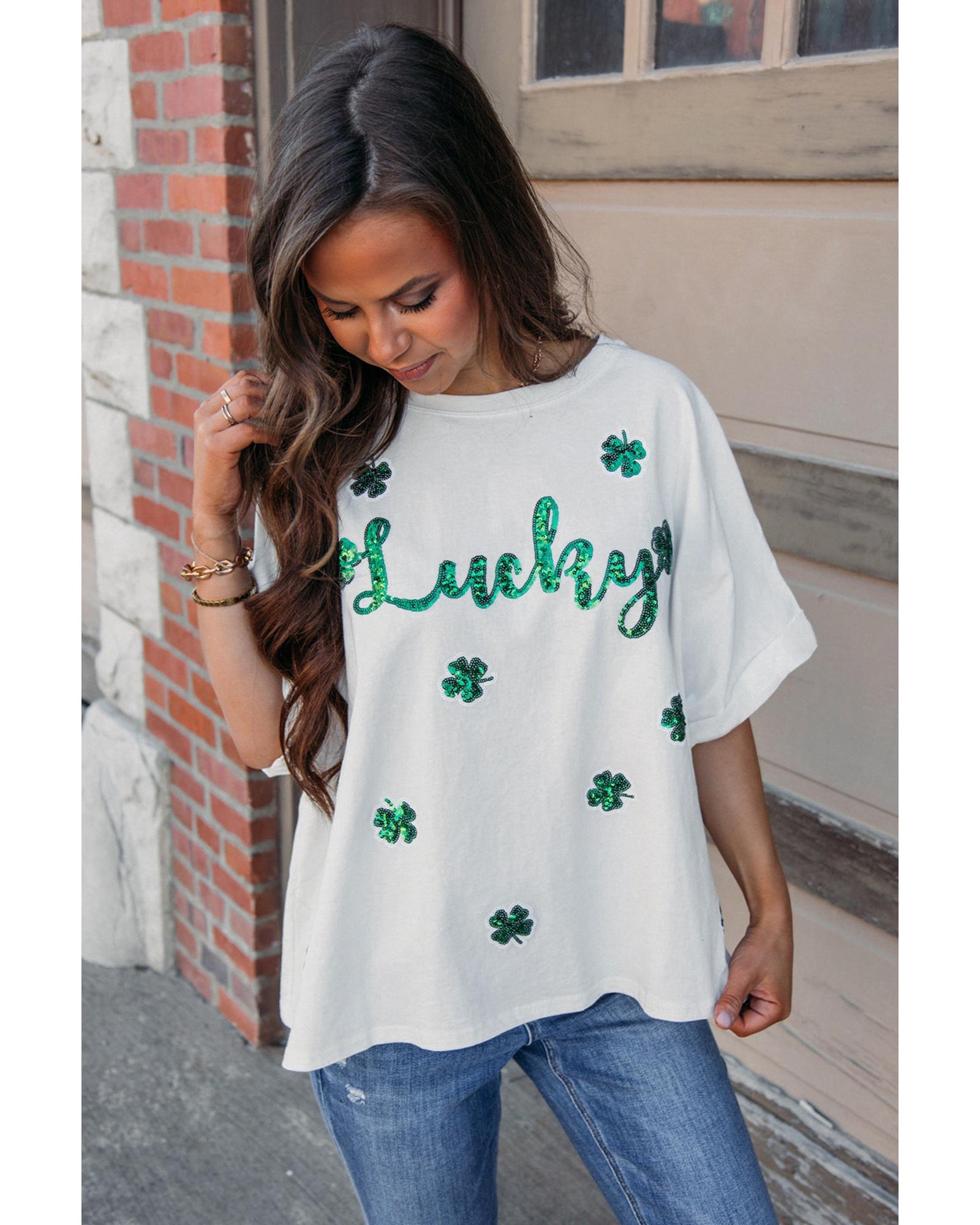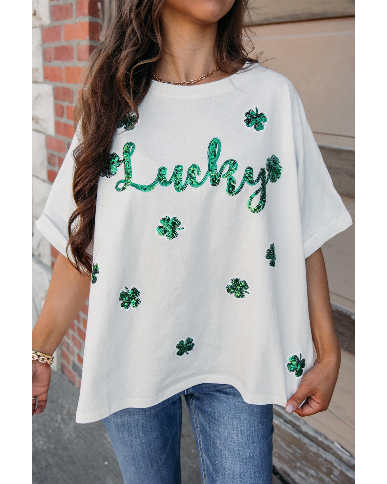 This stylish T-shirt features a shimmering sequin clover graphic, making it a standout piece for casual outings, holidays, and daily wear. Designed with a trendy oversized fit, it offers comfort and versatility suitable for most body shapes. Crafted from a soft and stretchy fabric blend, it ensures a comfortable wearing experience.