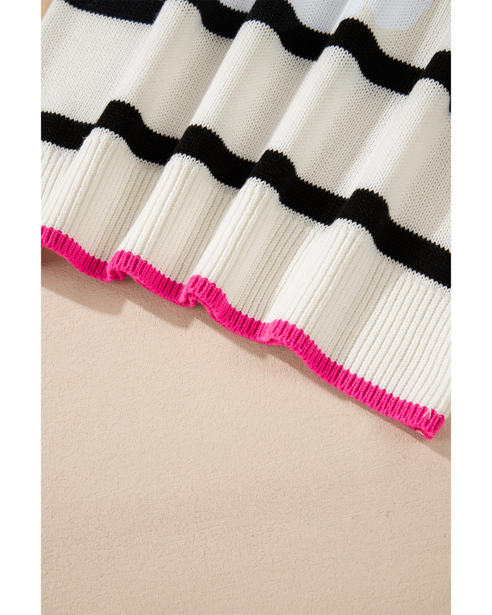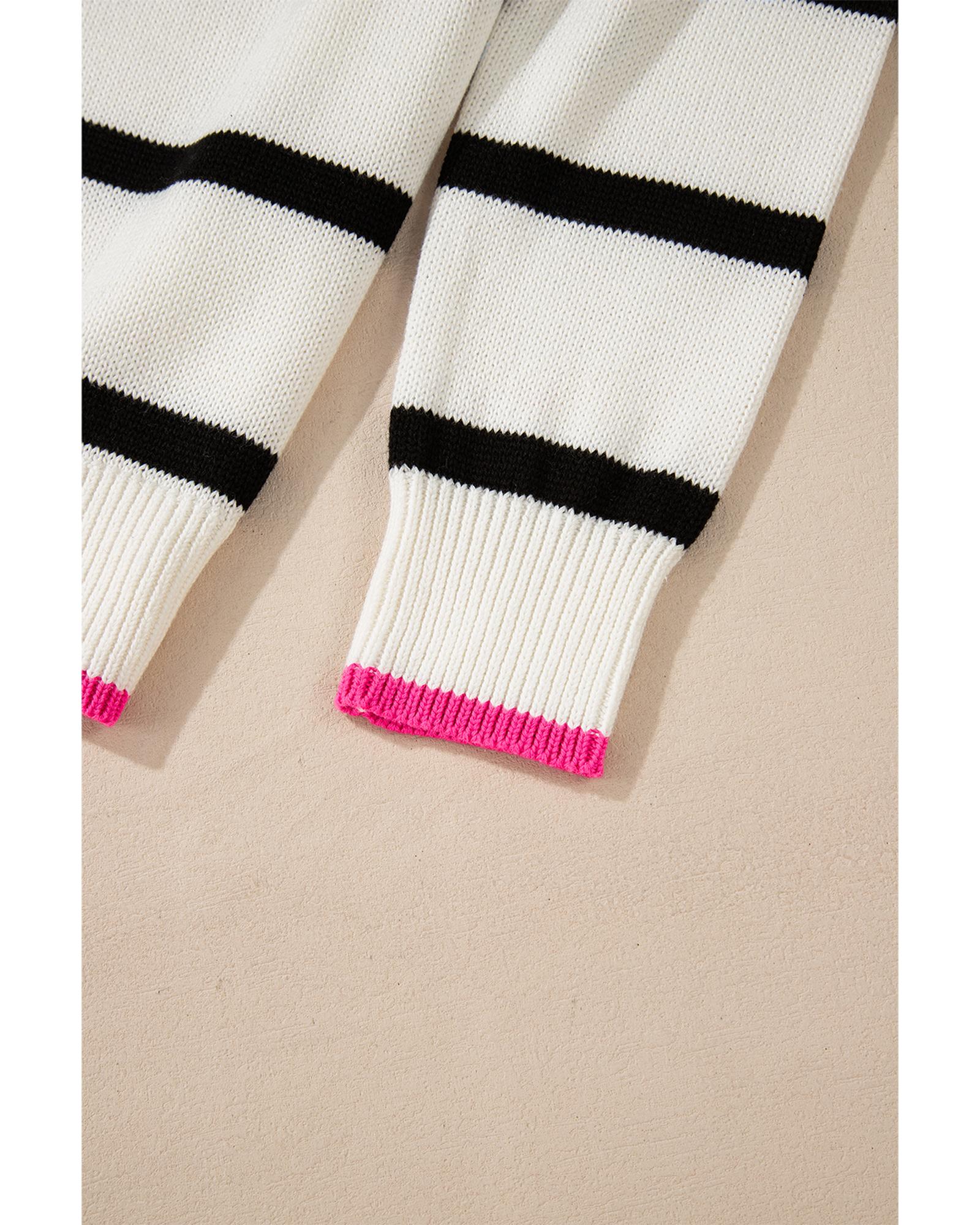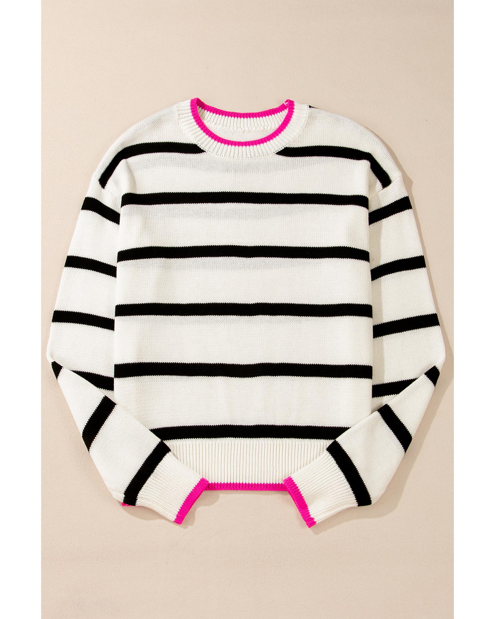 White Stripe Color Contrast Drop Shoulder Crew Neck Sweater – L