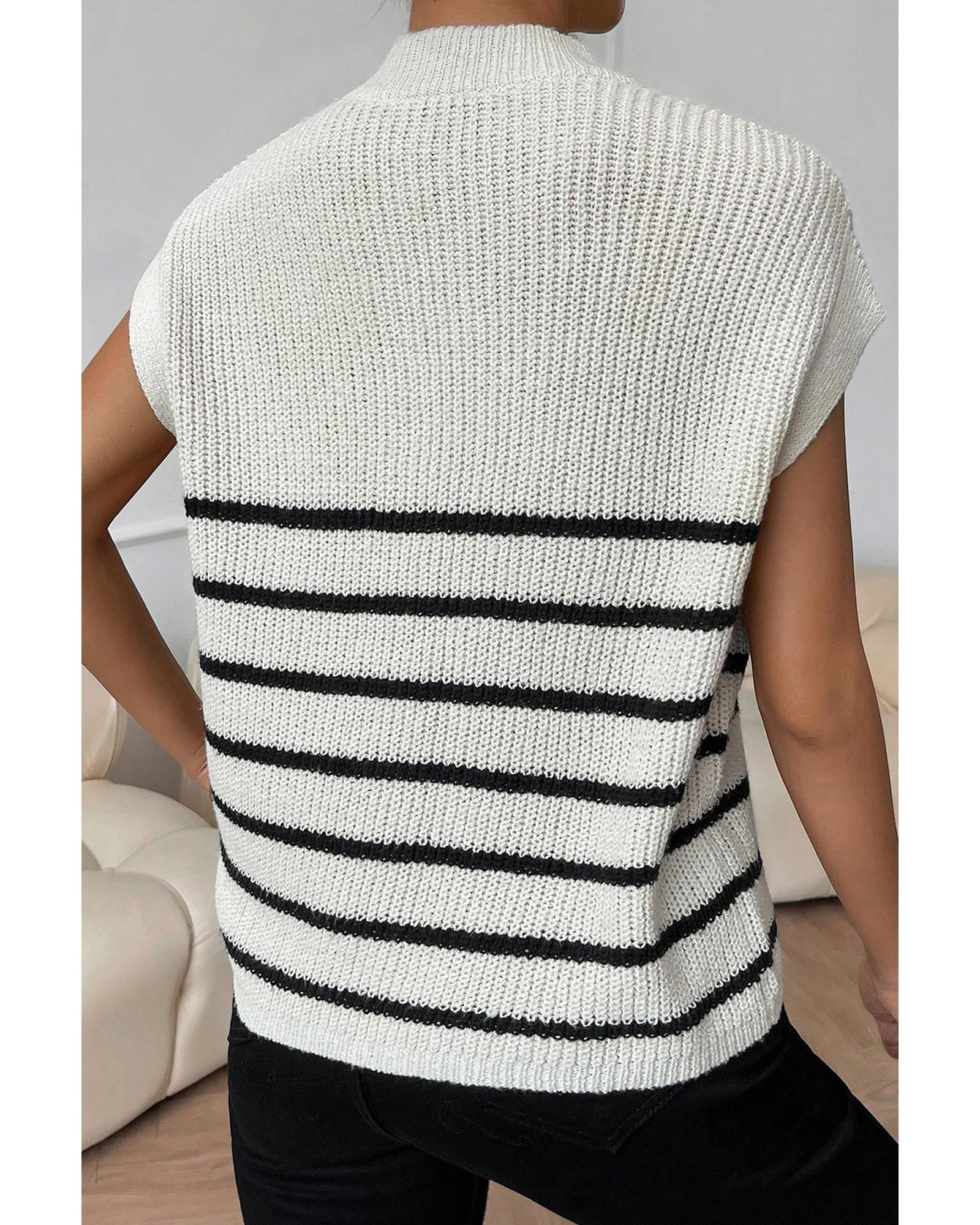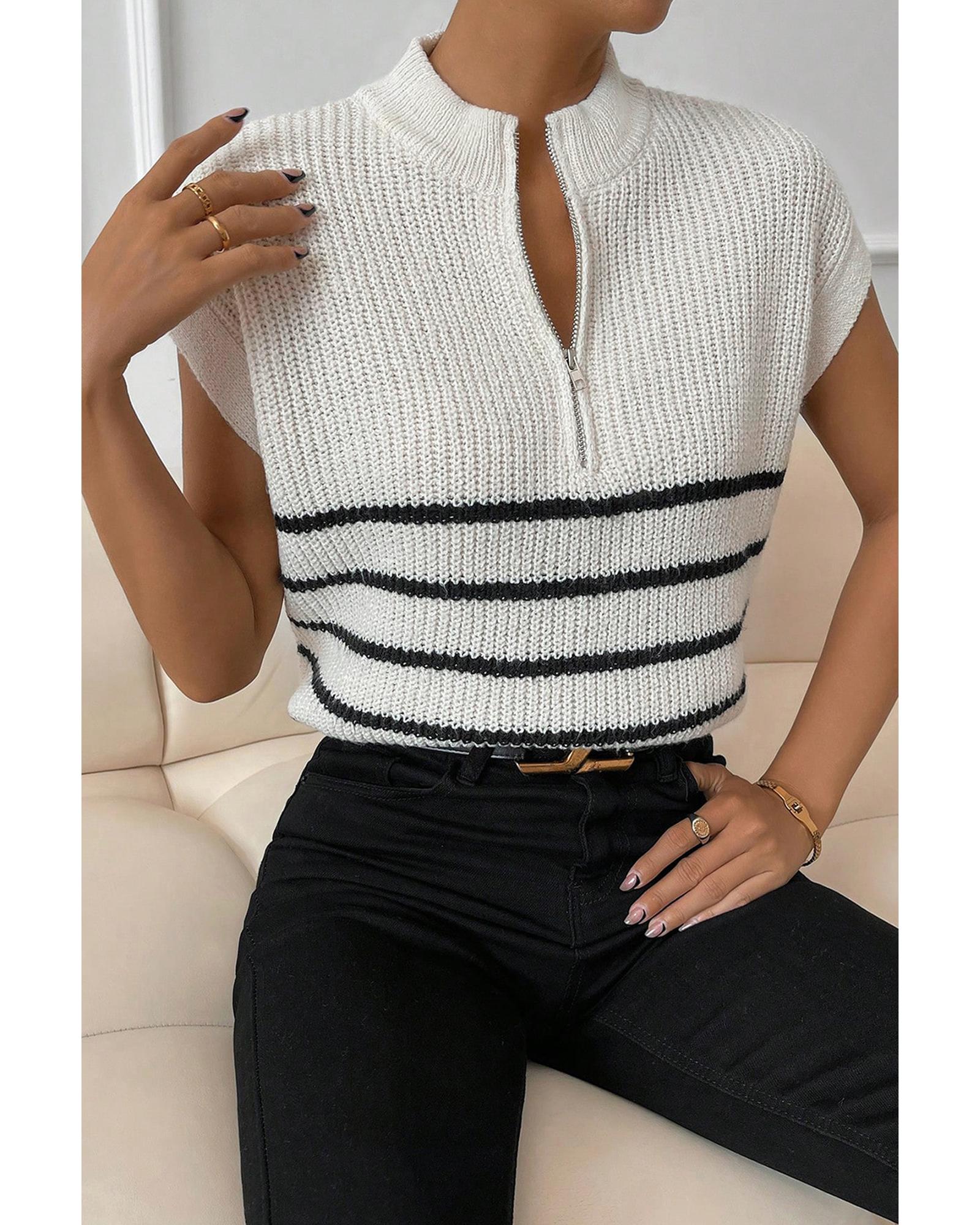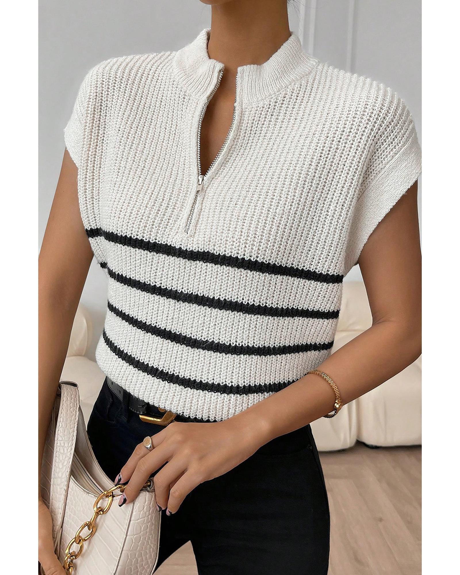 White Stripe Half Zip Split Stand Neck Sweater T-shirt – XL