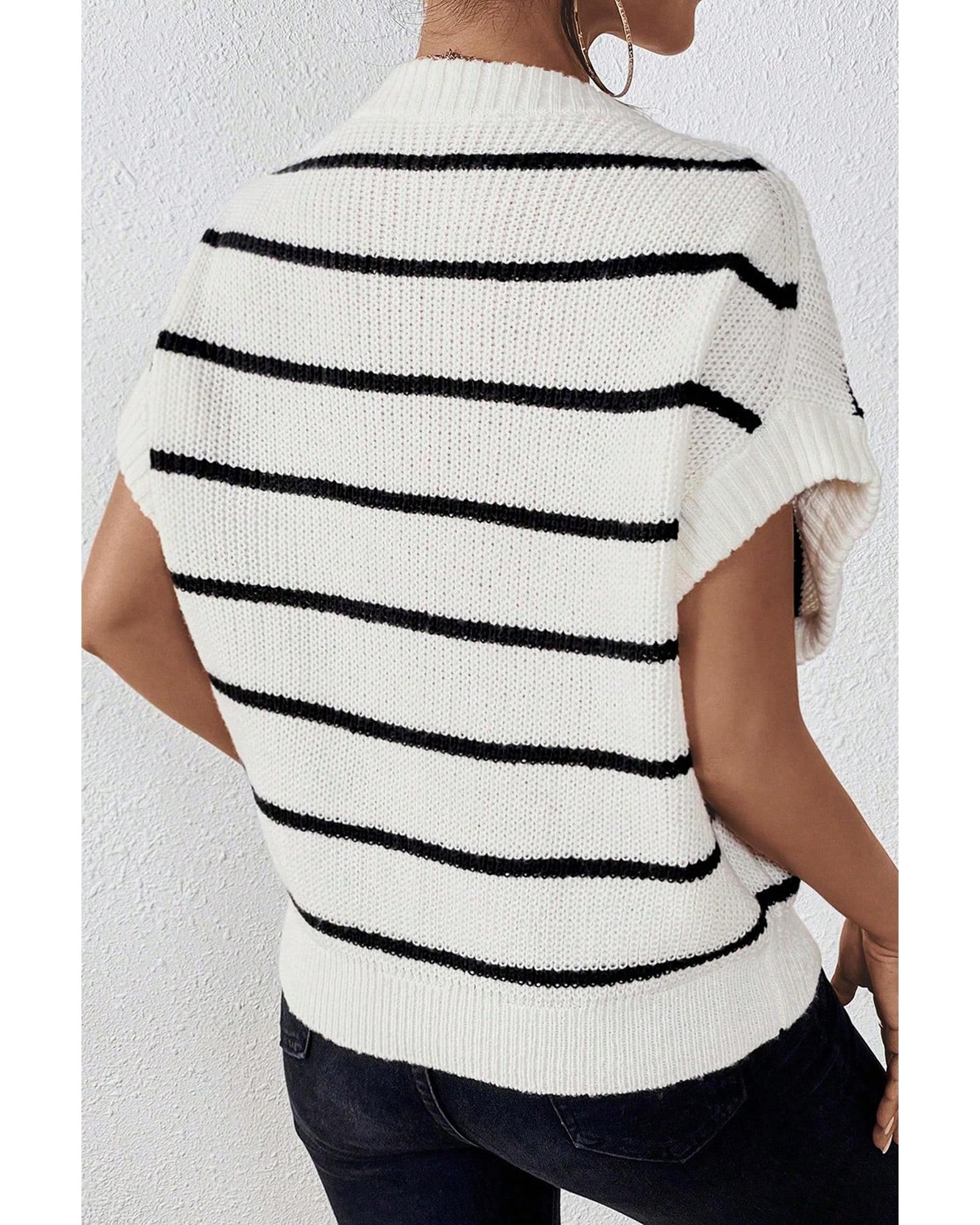 White Stripe Striped Pattern Batwing Sleeve Sweater – XL