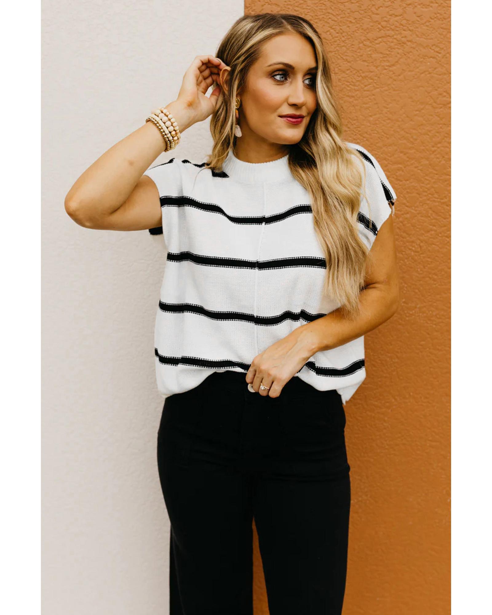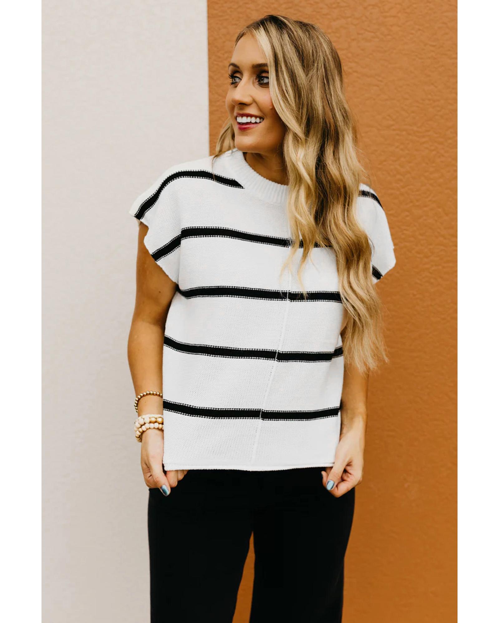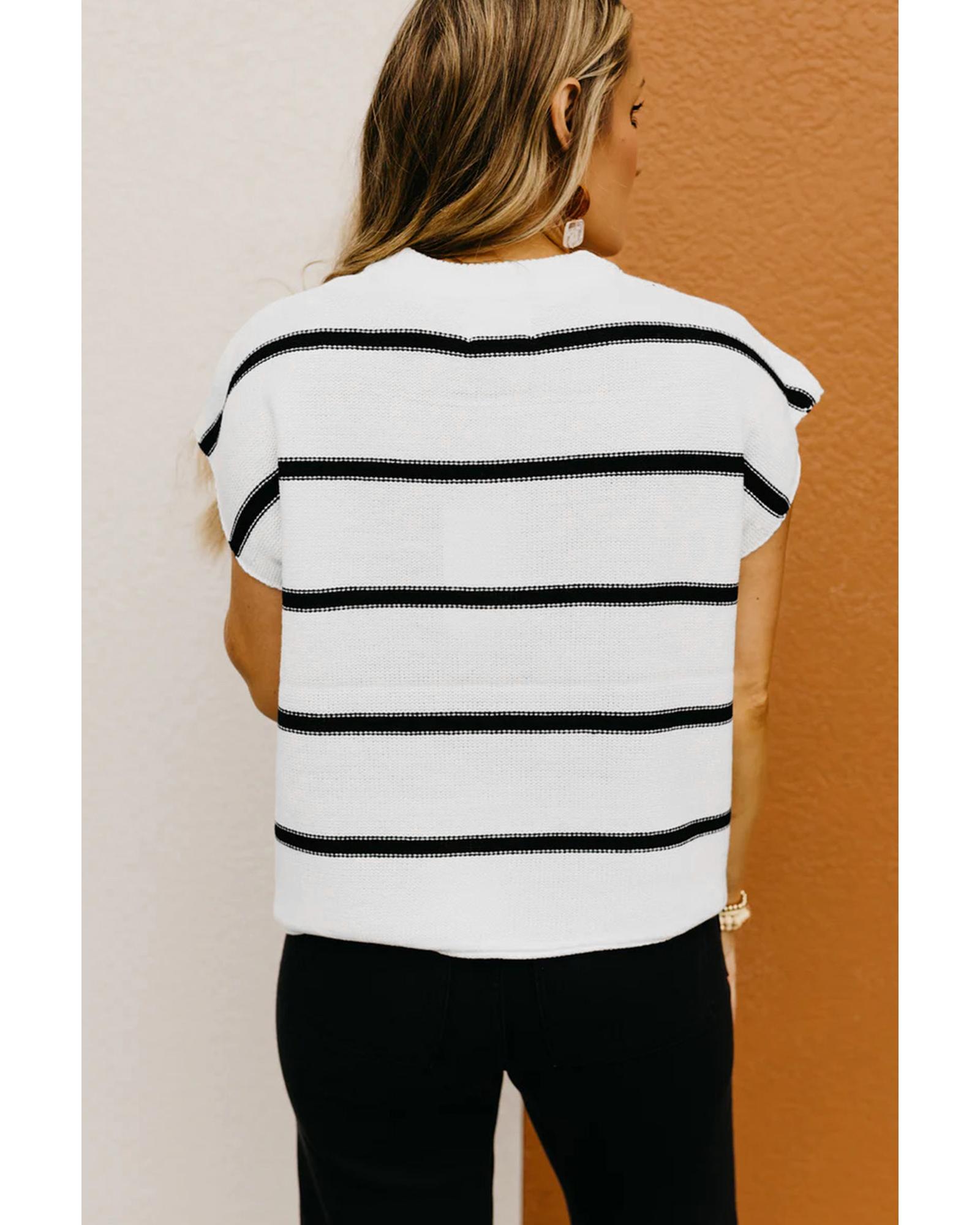 This white striped batwing sleeve sweater tee combines a classic striped design with a trendy fitted silhouette. It features a crew neck, batwing sleeves, and a loose fit, making it suitable for casual everyday wear. Crafted from soft and breathable material, it offers comfort throughout the day and pairs well with jeans, skirts, or shorts for versatile styling.