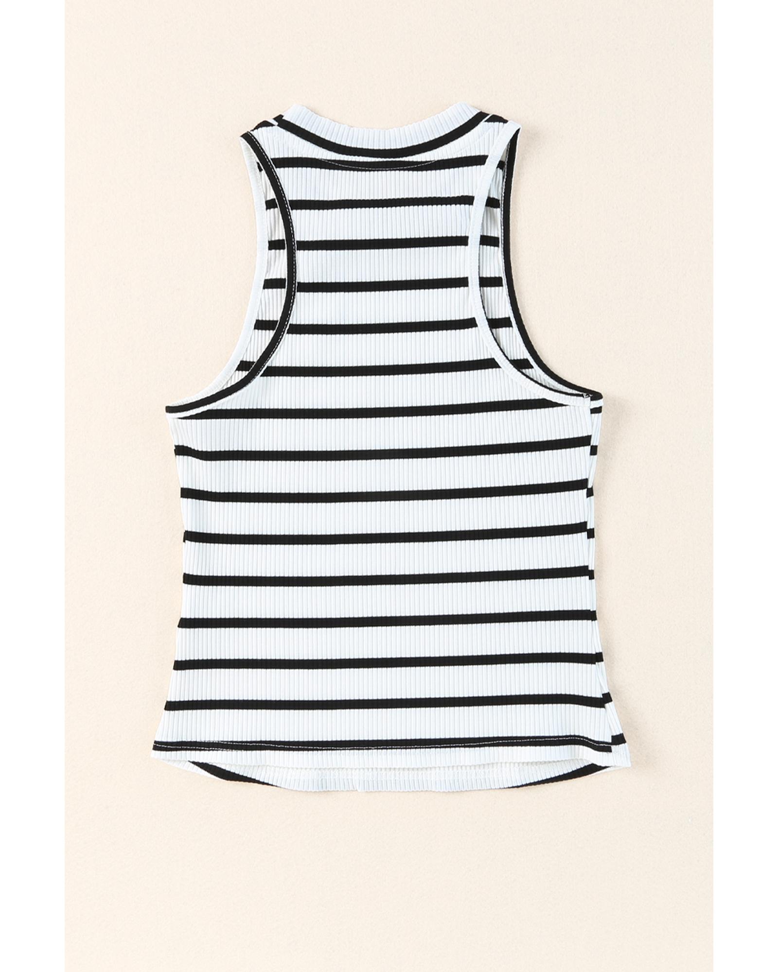 White Striped Print Ribbed O-neck Sleeveless Top – XL
