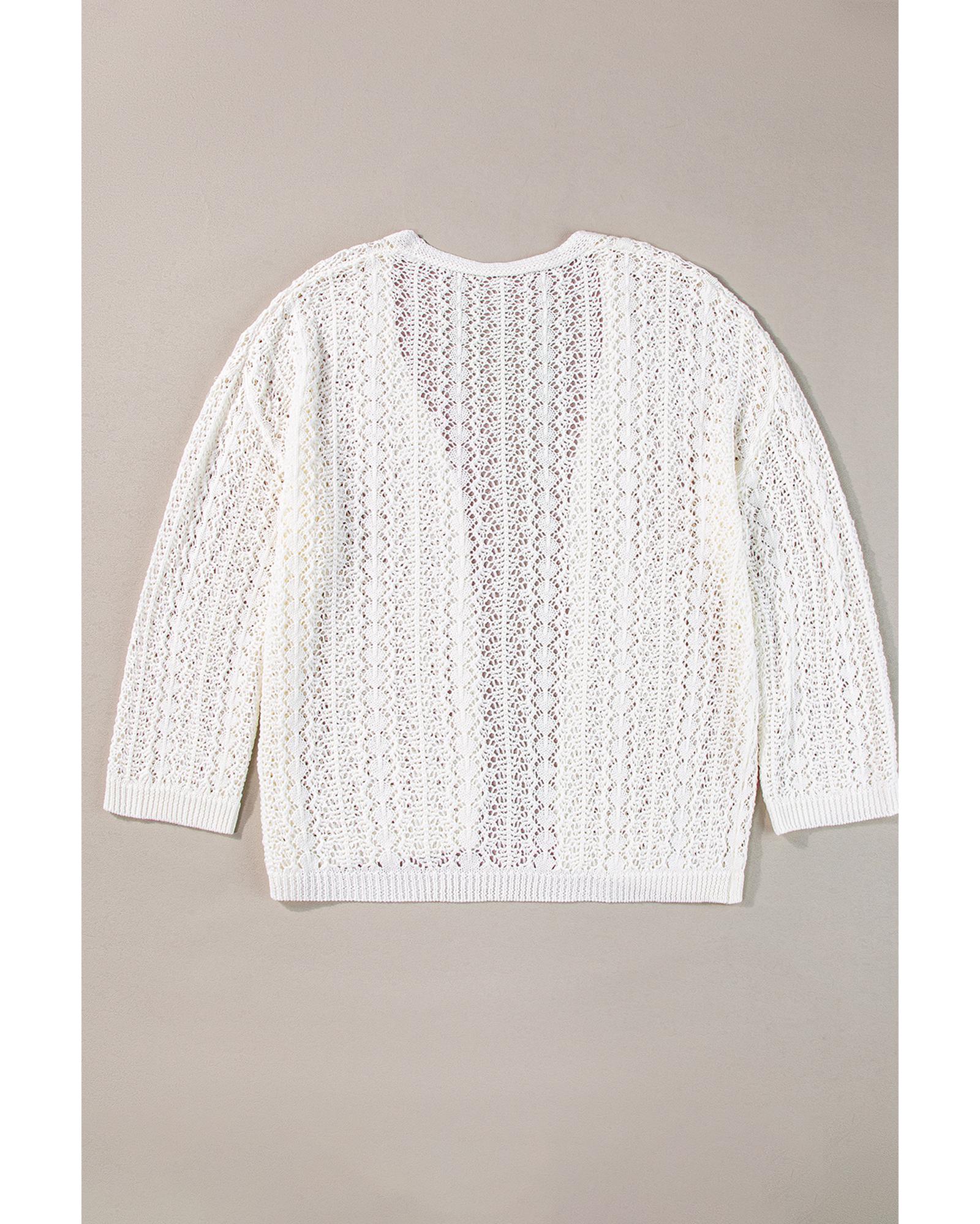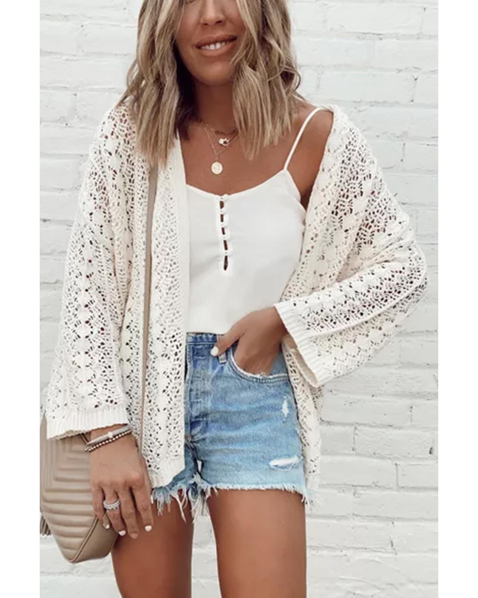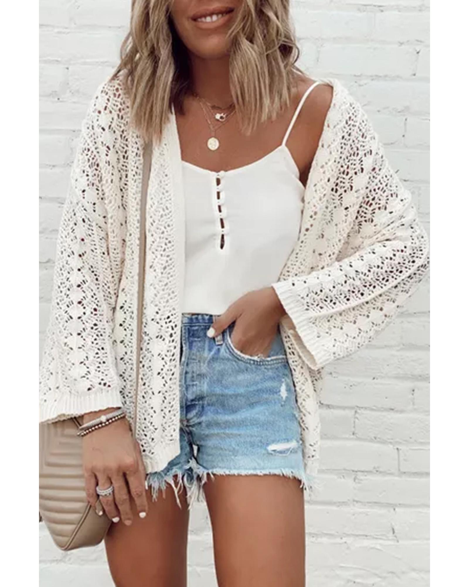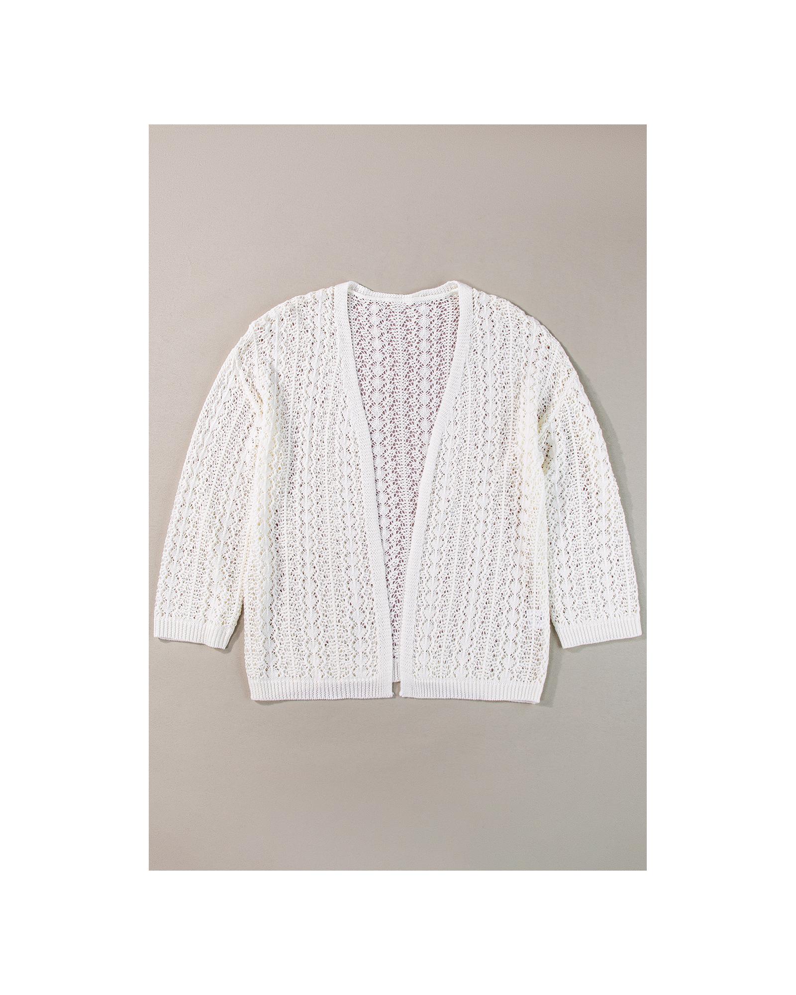White Stylish Hollow Out Knit Drop Shoulder Cardigan – XL