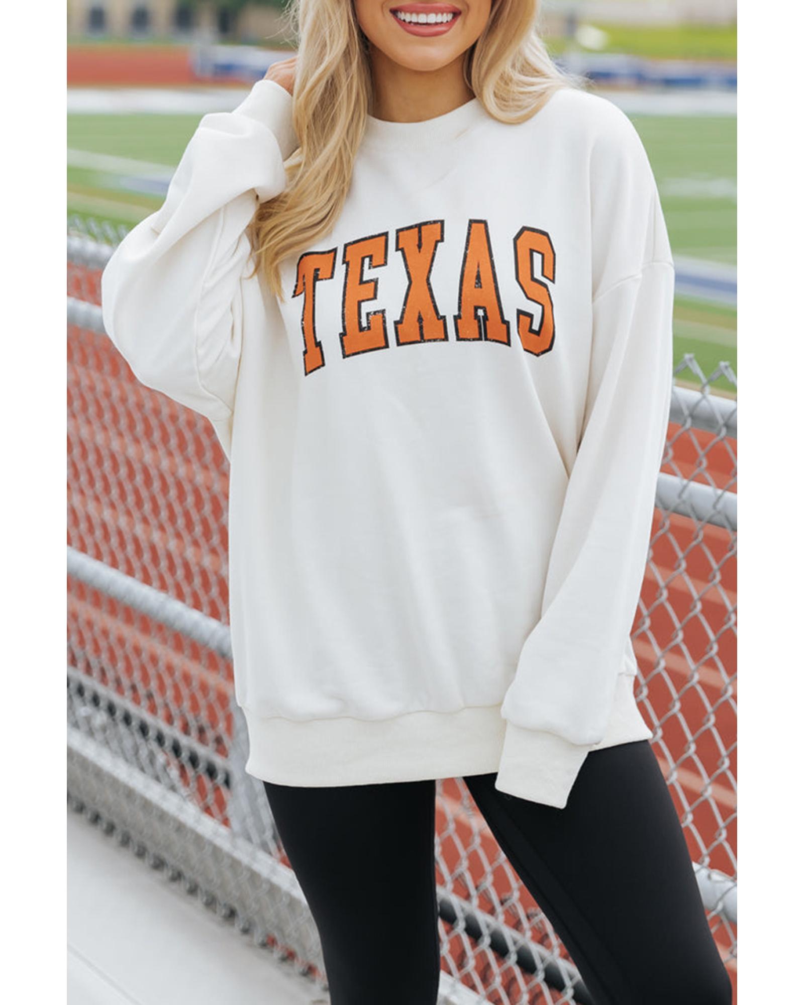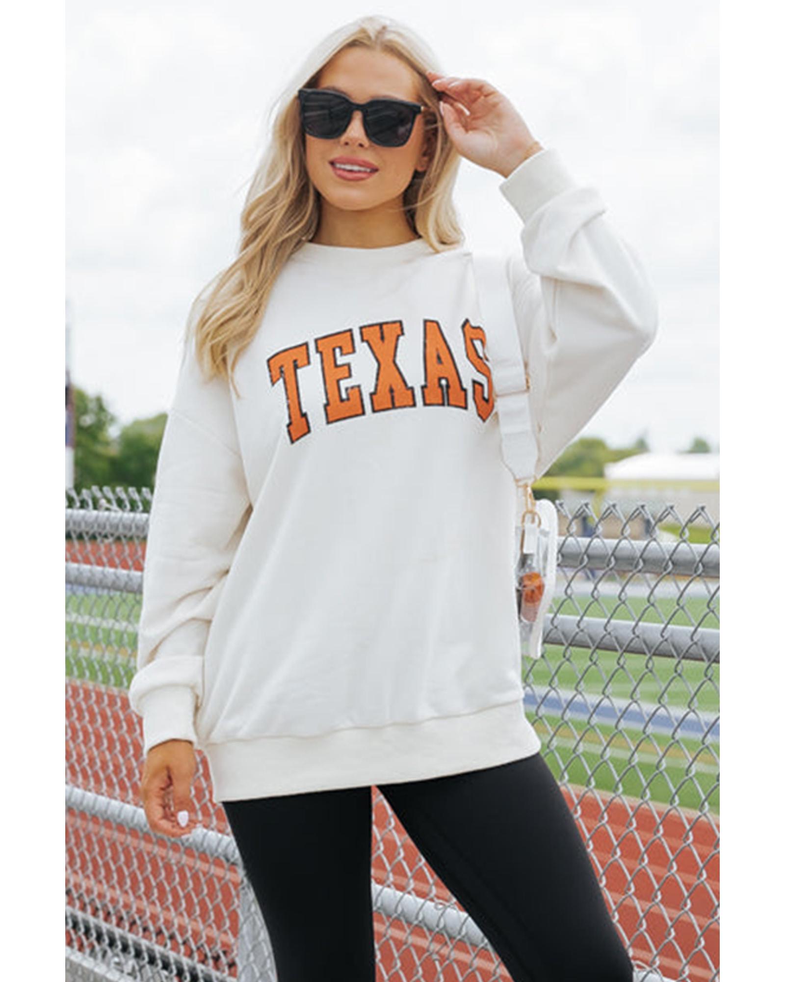 White TEXAS Graphic Drop Shoulder Crewneck Sweatshirt – XL