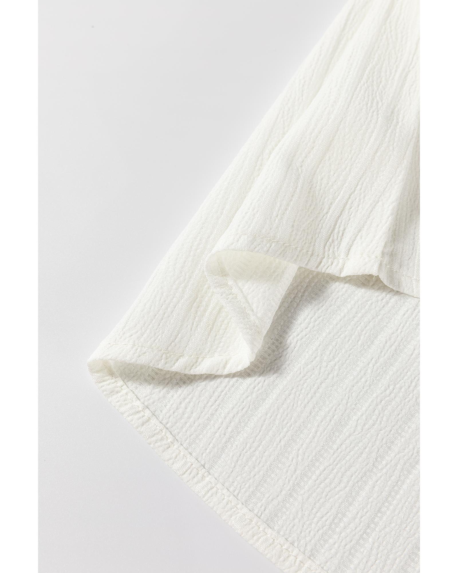 White Geometric Embroidered Long Sleeve Buttoned Blouse - S