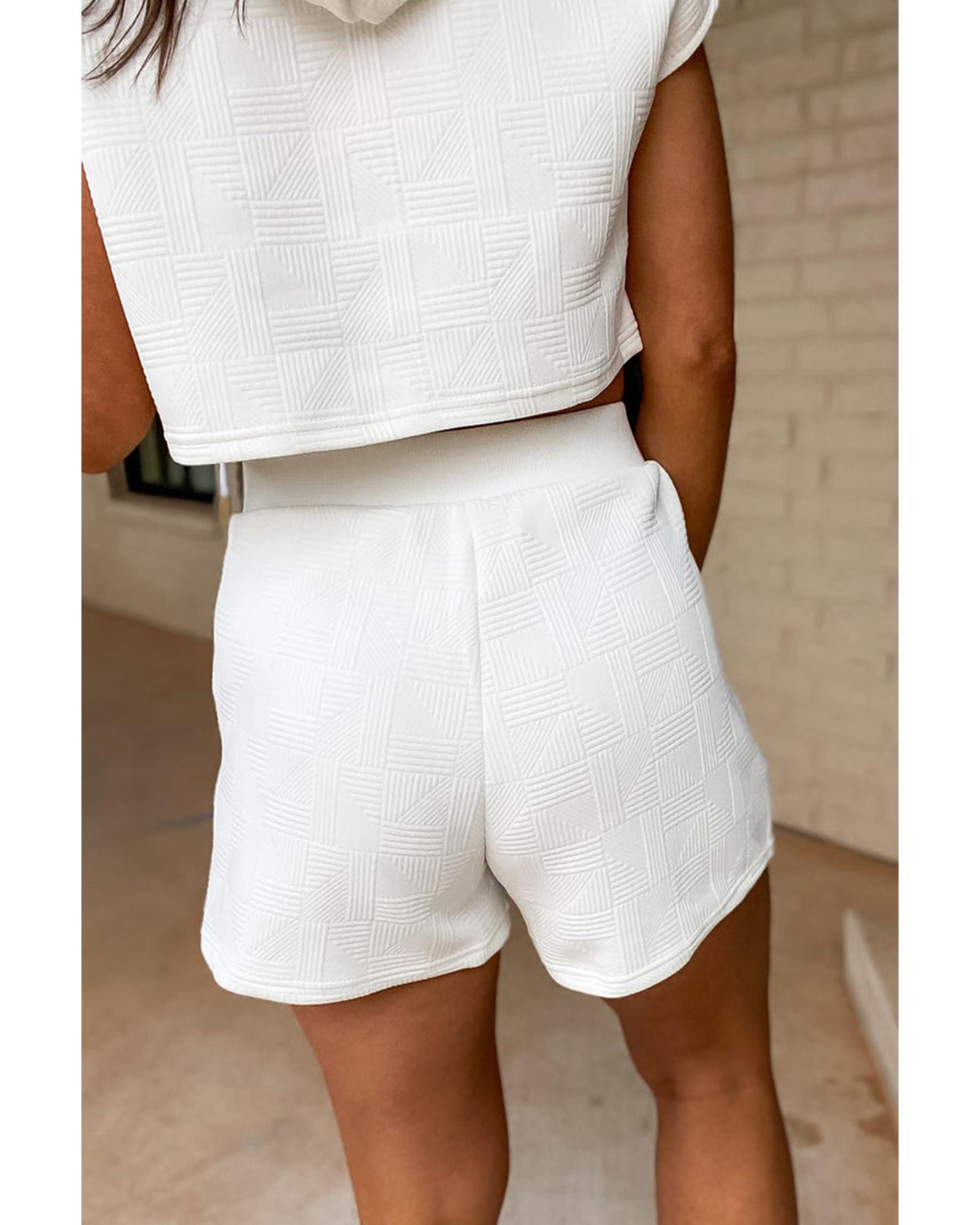 White Textured Cropped Hoodie and Shorts Set – 2XL