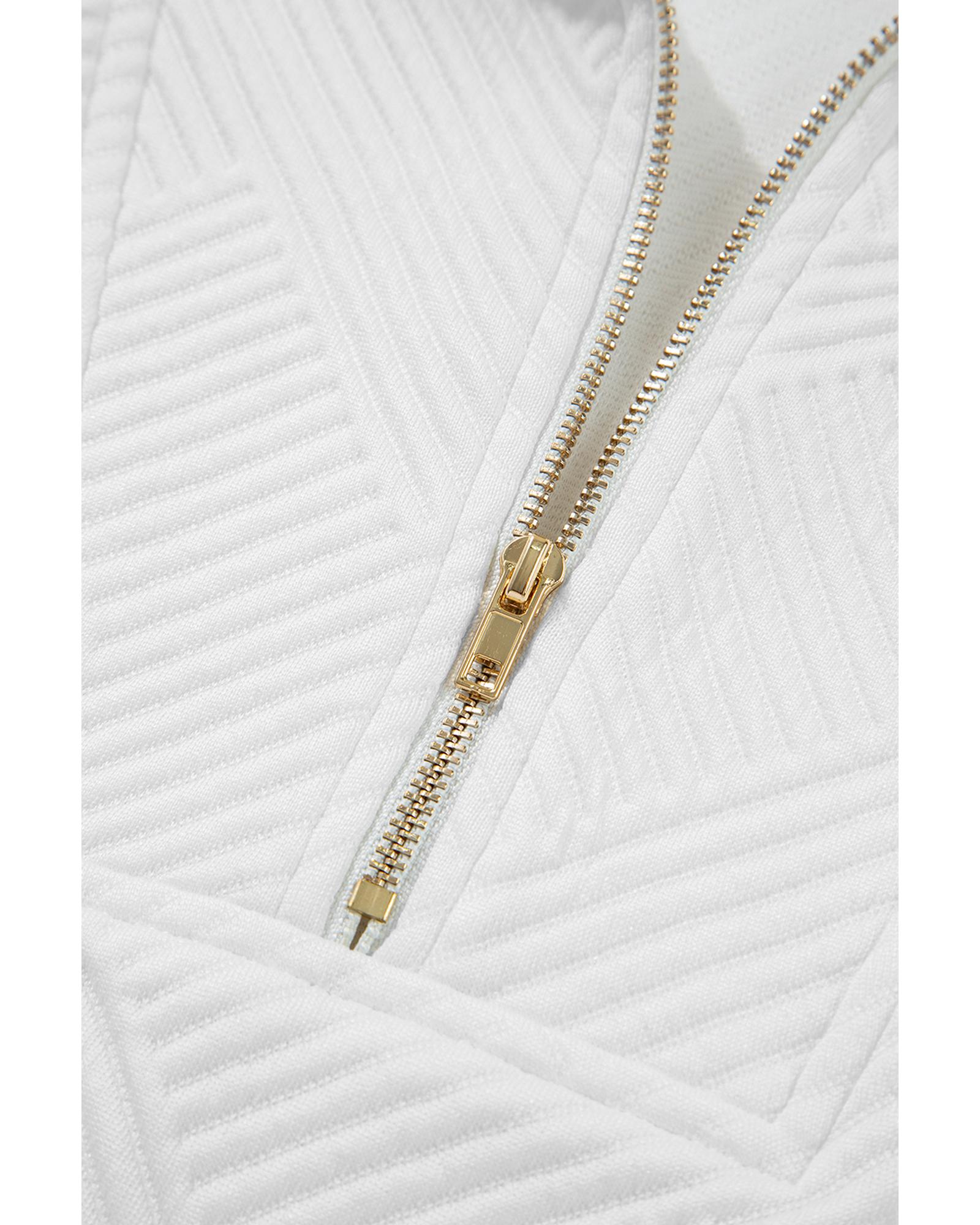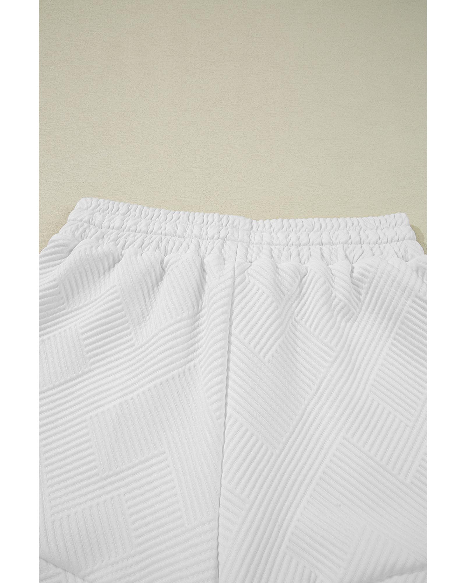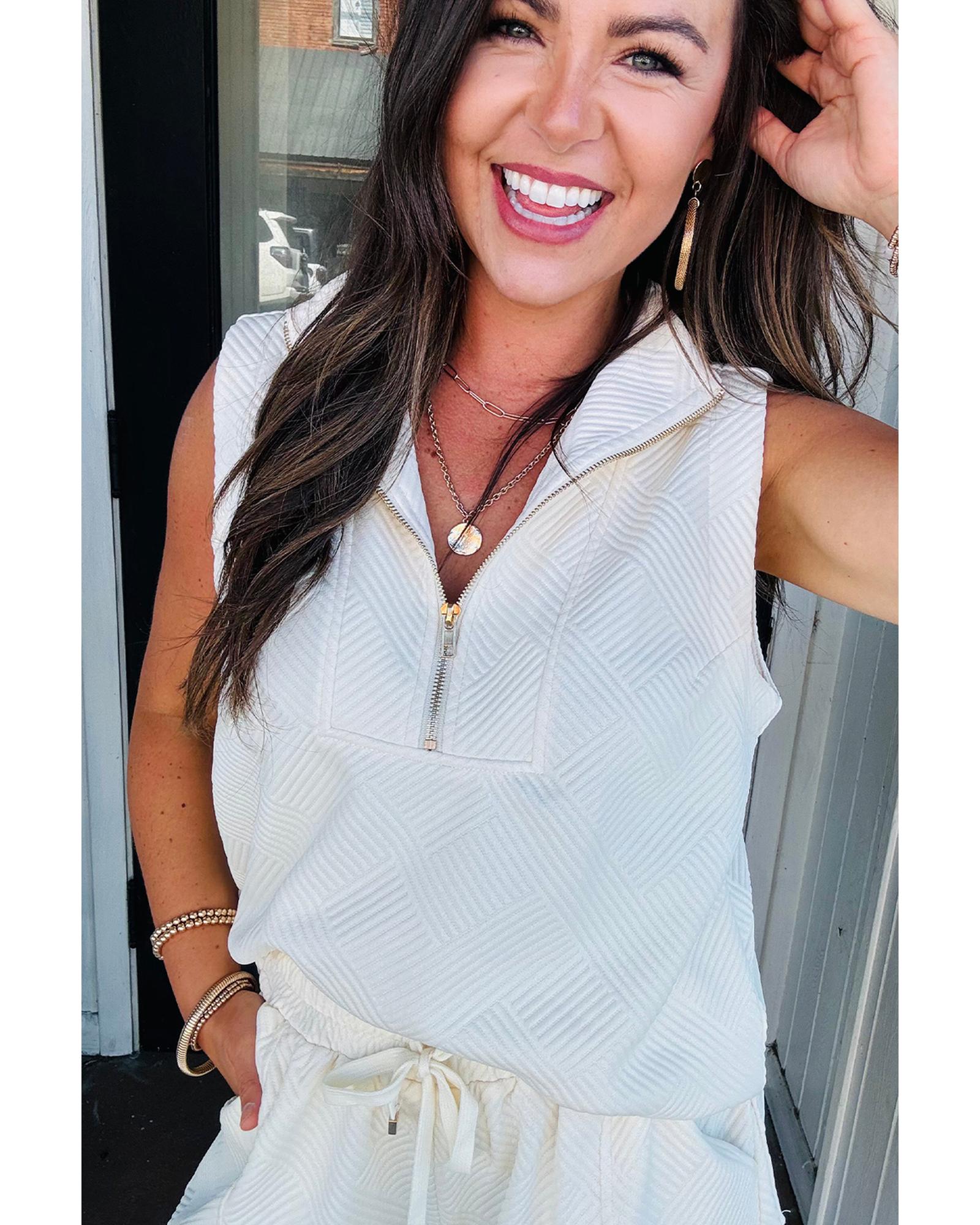 White Textured Half Zip Tank Top Drawstring Shorts Set – L