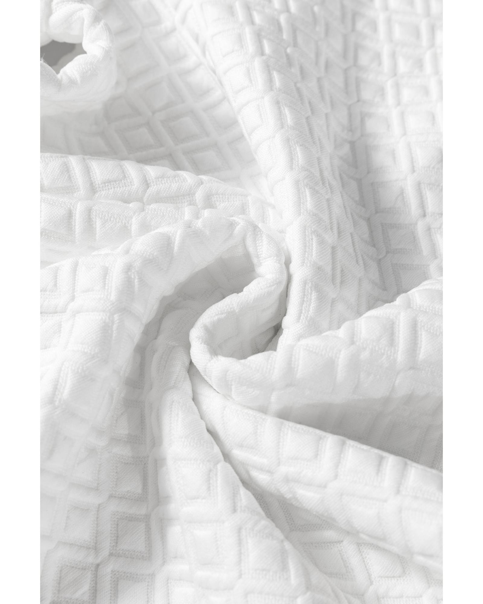 This white textured puff long sleeve top features a stylish design with a comfortable fit, making it suitable for various occasions. Its unique textured fabric and puff sleeves add a fashionable touch, while the versatile style ensures it can be paired easily with different outfits.