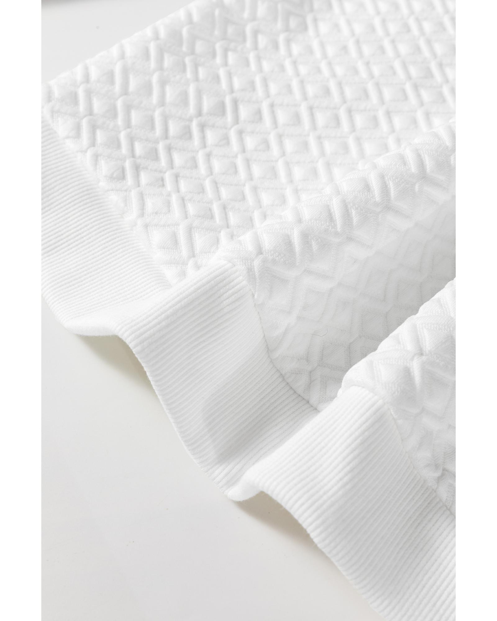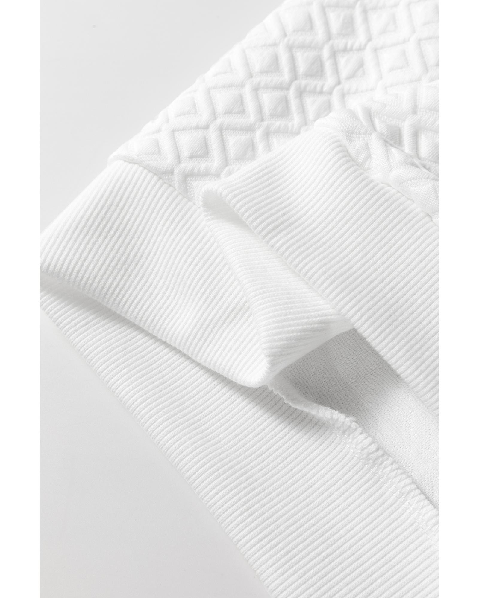 Package Content: 1 x White Textured Puff Long Sleeve Round Neck Top
