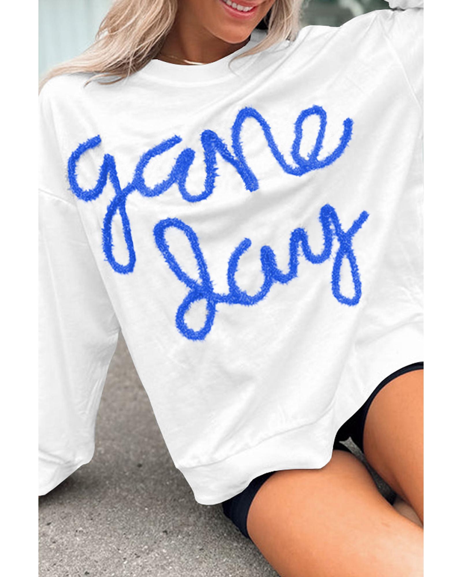 White Tinsel Game Day Drop Shoulder Graphic Sweatshirt – M