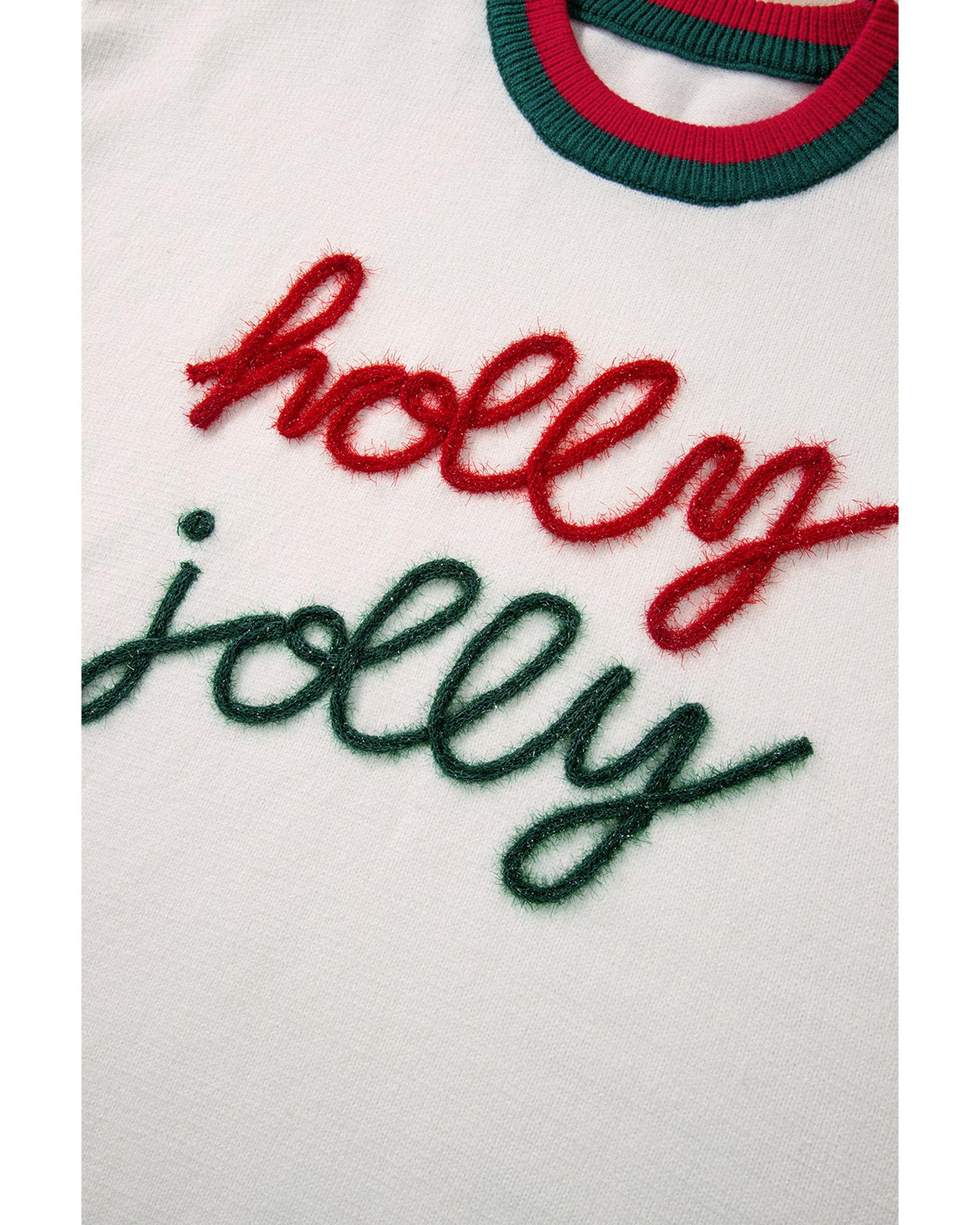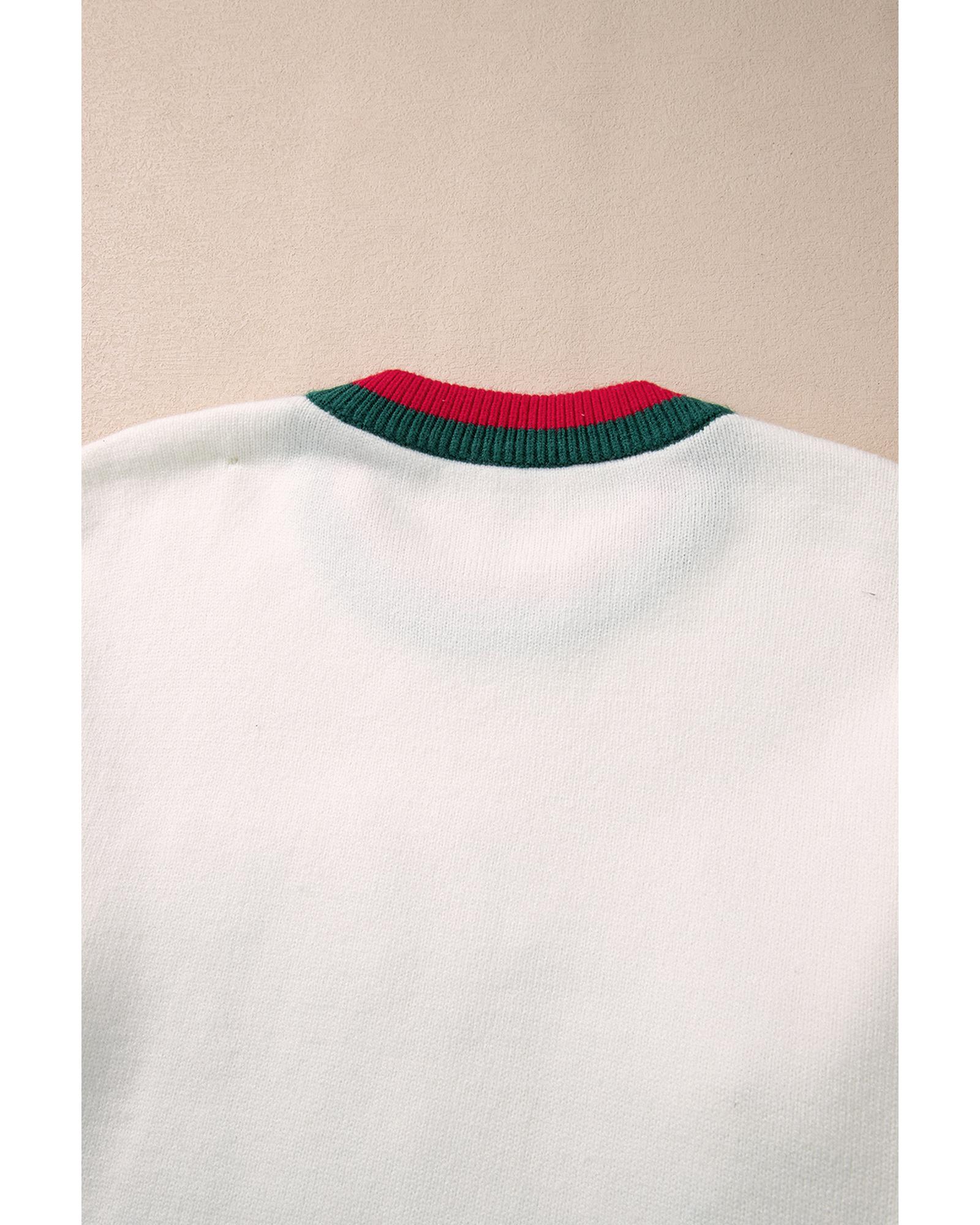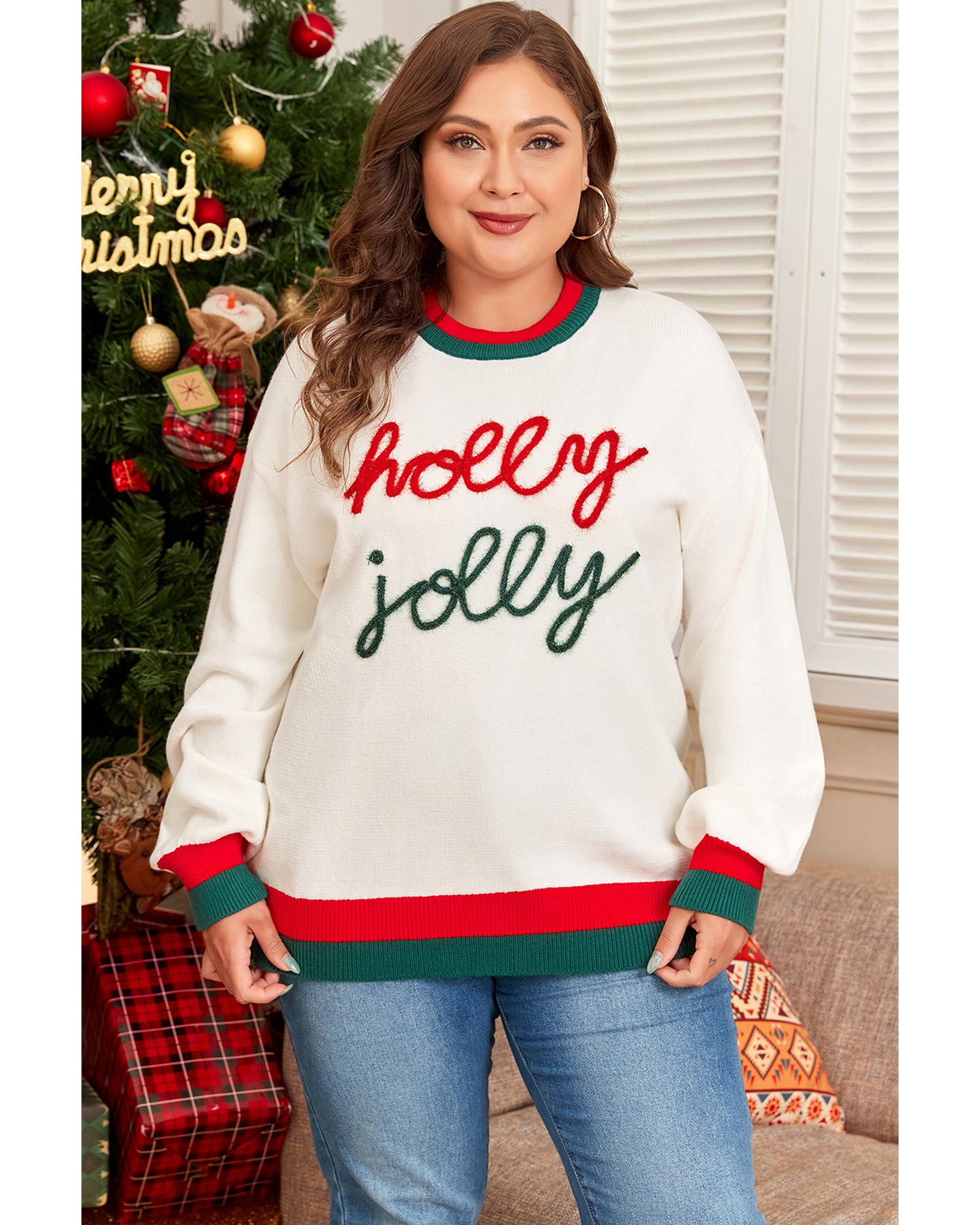 White Tinsel holly jolly Pattern Colorblock Edge Drop Shoulder Plus Size Sweater – 4X