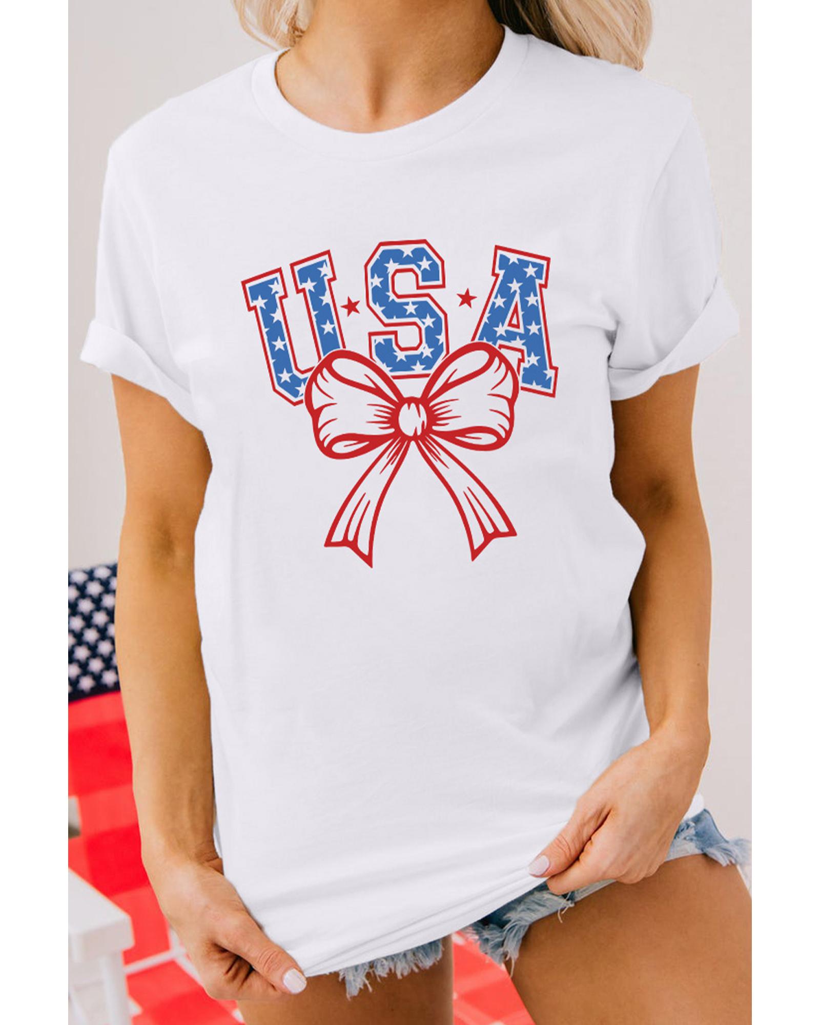 White USA Bow Letter Graphic Short Sleeve Top – 3XL