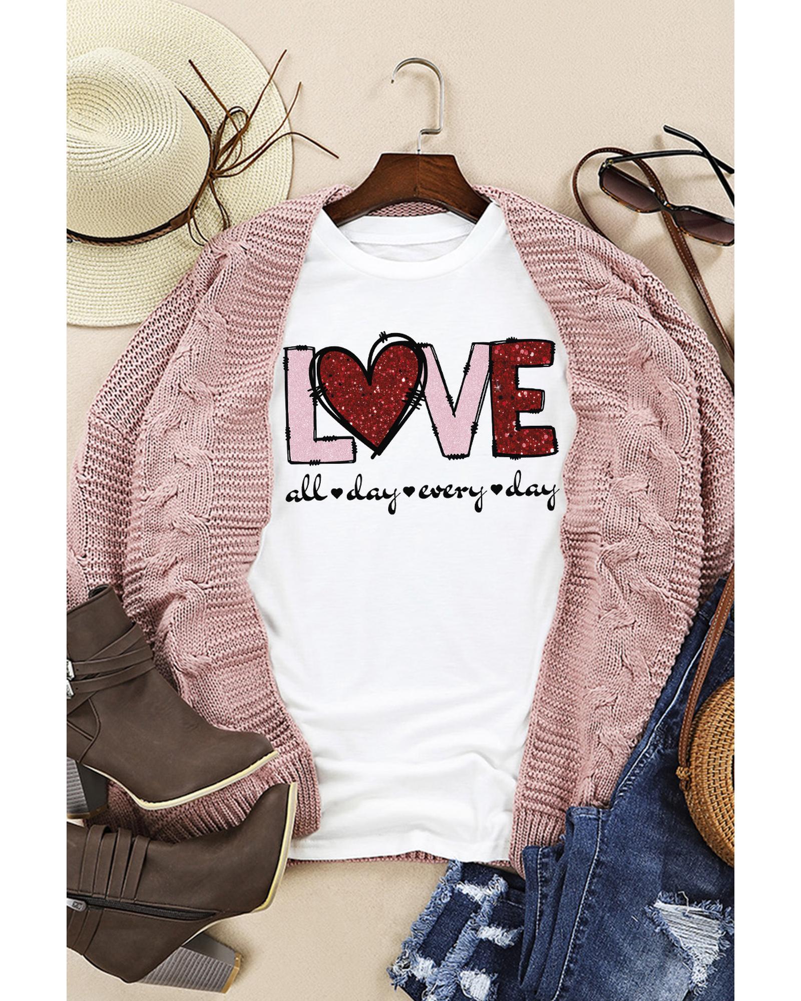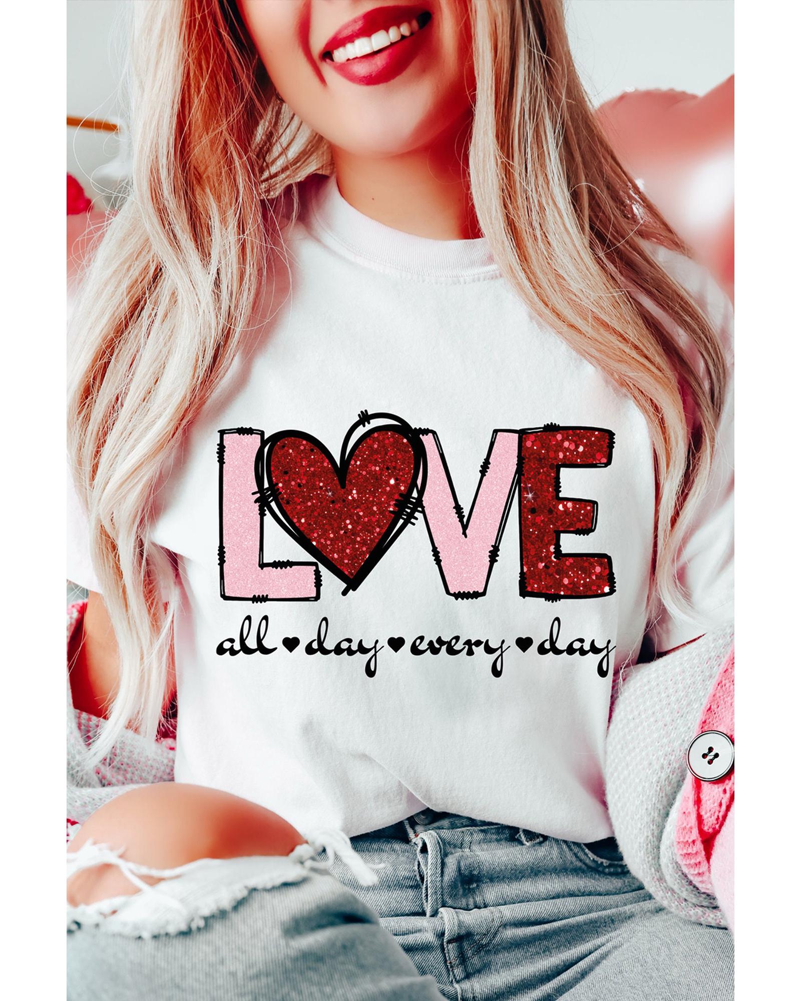 White Valentine LOVE Heart Shape Crew Neck Graphic Tee – XL