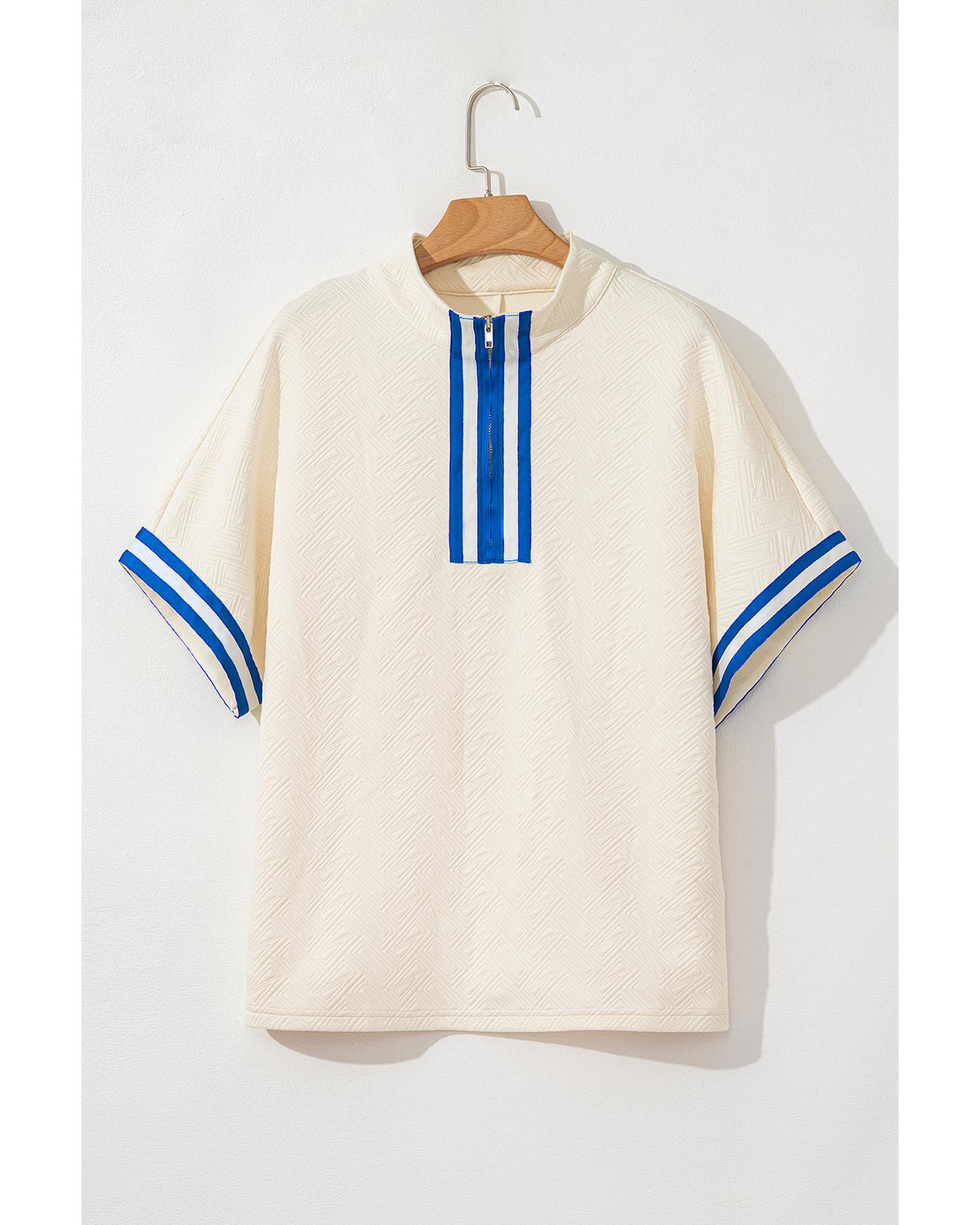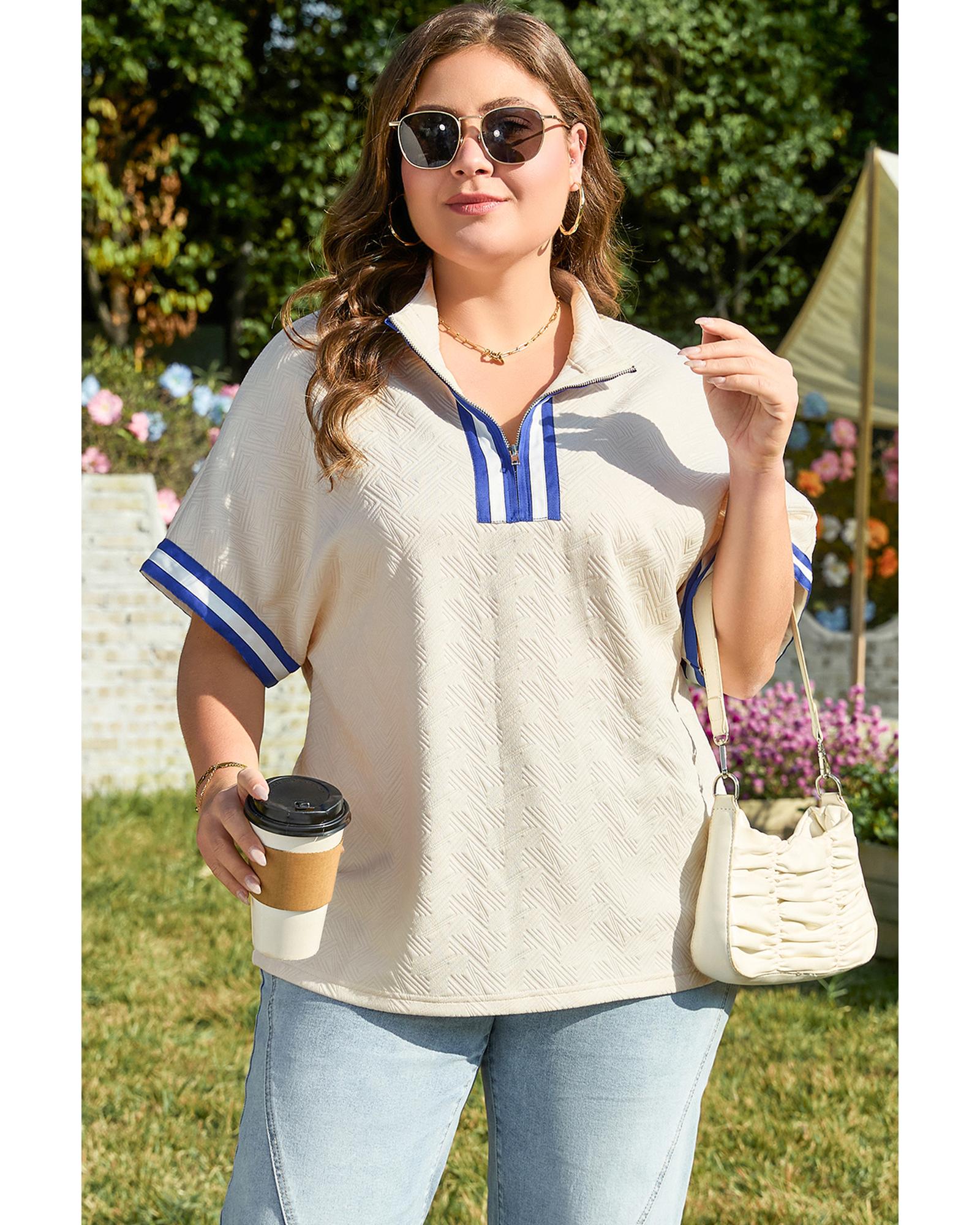 White Varsity Half Zip Textured Plus Size Top – 2X
